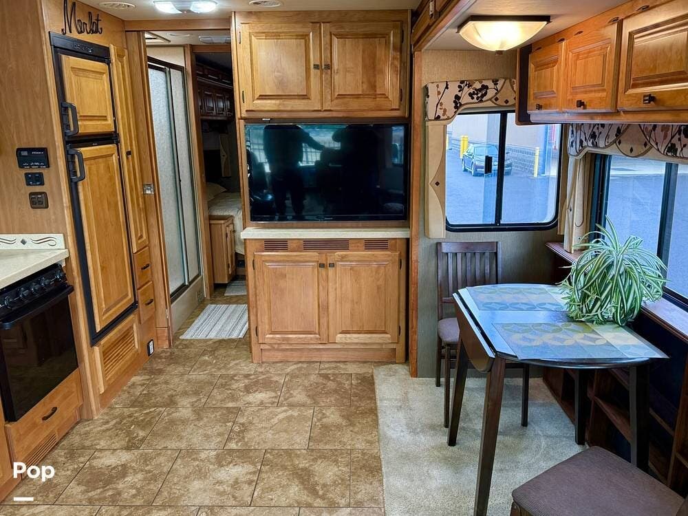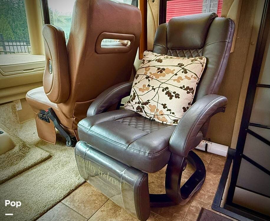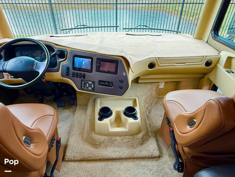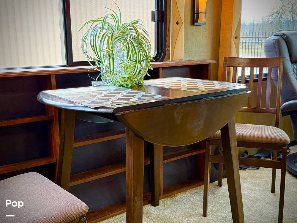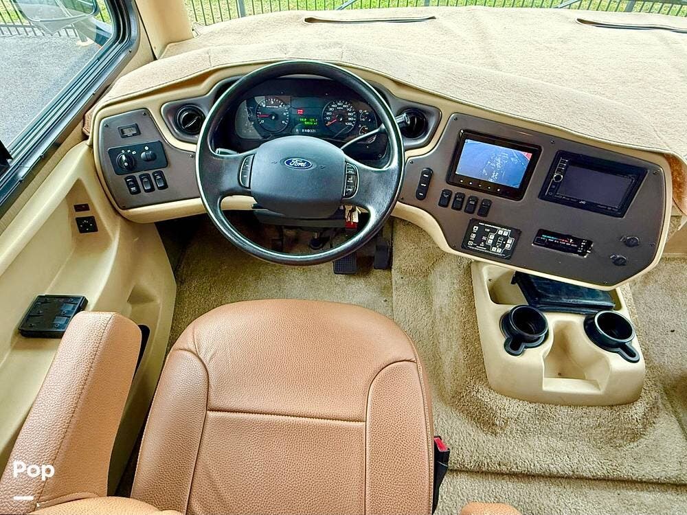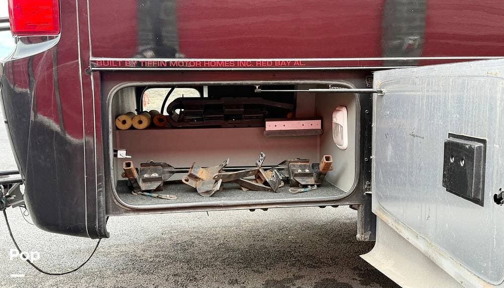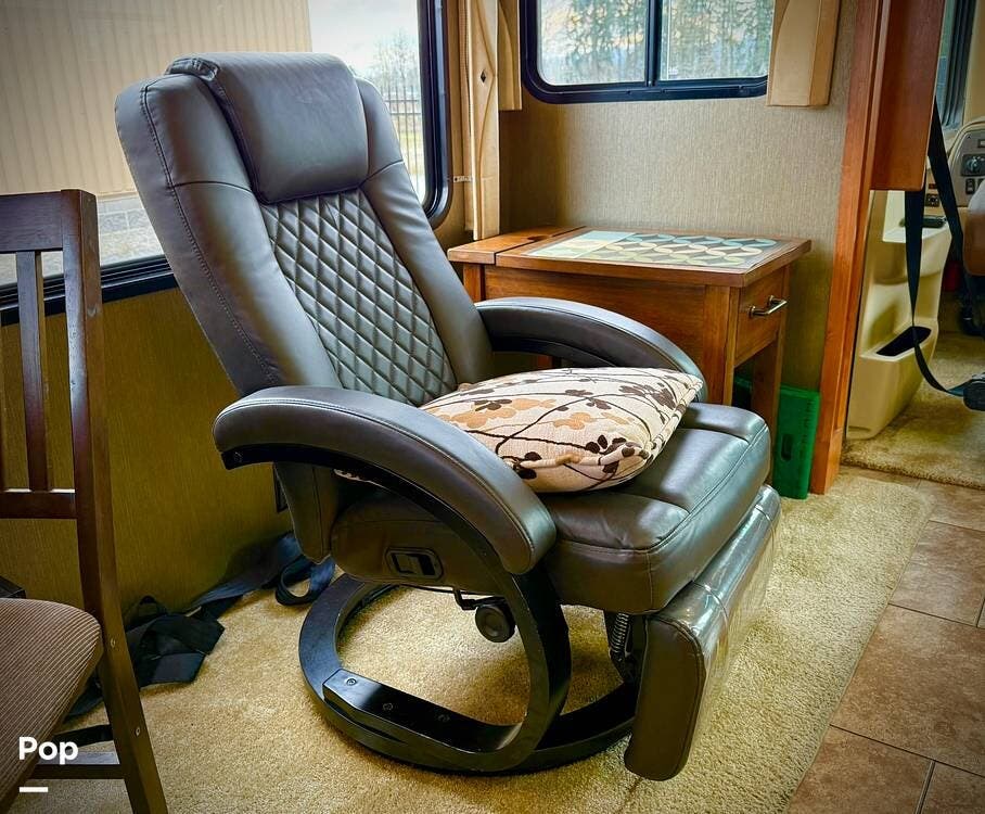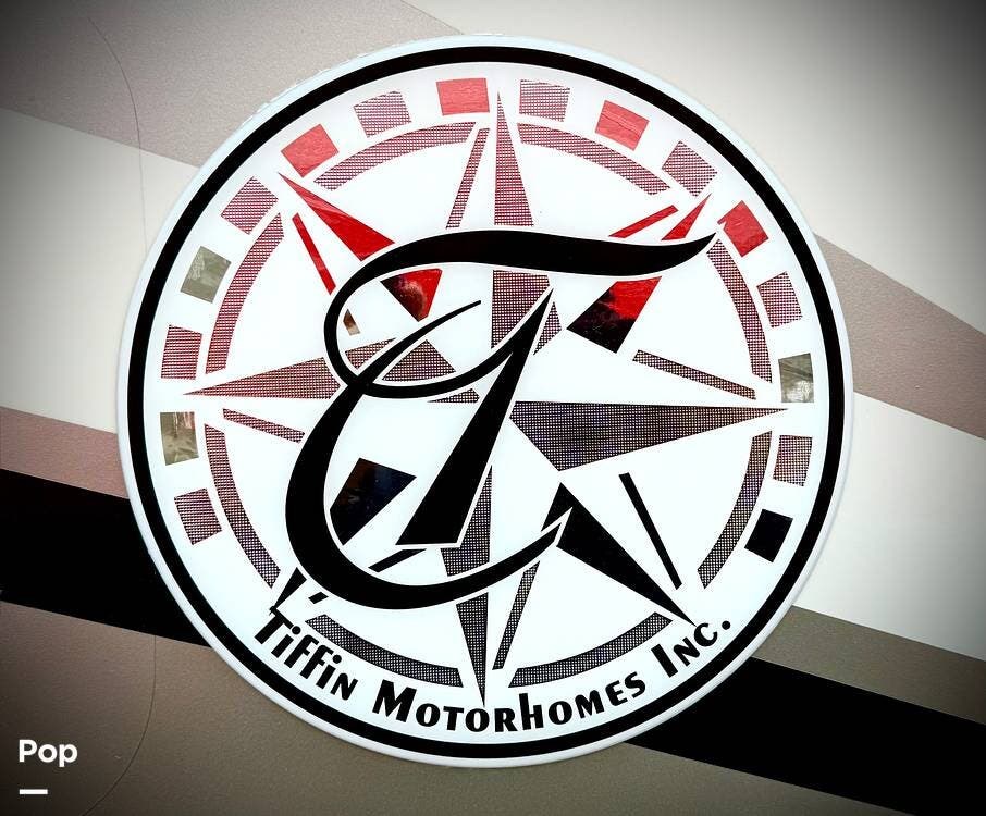 Built on the Ford F-Series Super Duty chassis and powered by the proven Ford Triton 6.8L V10 engine with 362 horsepower, this ~33.5-foot Class A strikes the perfect balance between comfortable living space and easy drivability. With two spacious slideouts, the interior opens wide to reveal a warm, inviting living area featuring Tiffin's signature handcrafted cabinetry, abundant storage, and a layout designed for true residential comfort. The Seller re-configured the living space with a free-standing dinette and two matching 'Kathy Ireland' reclining lounge chairs. The original sofa is also available.