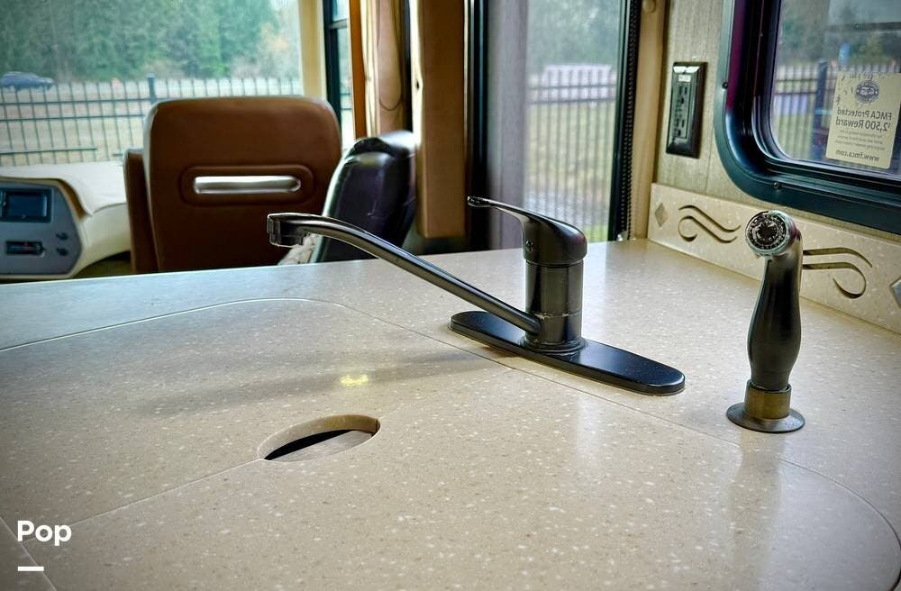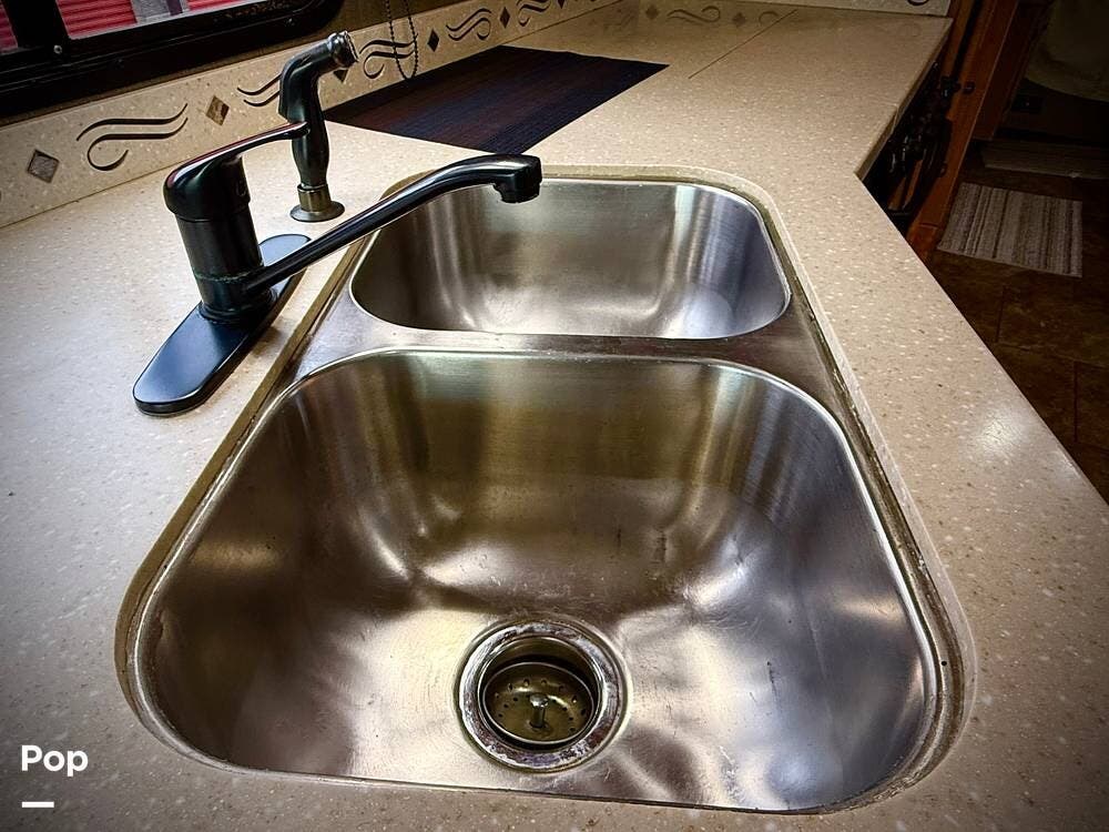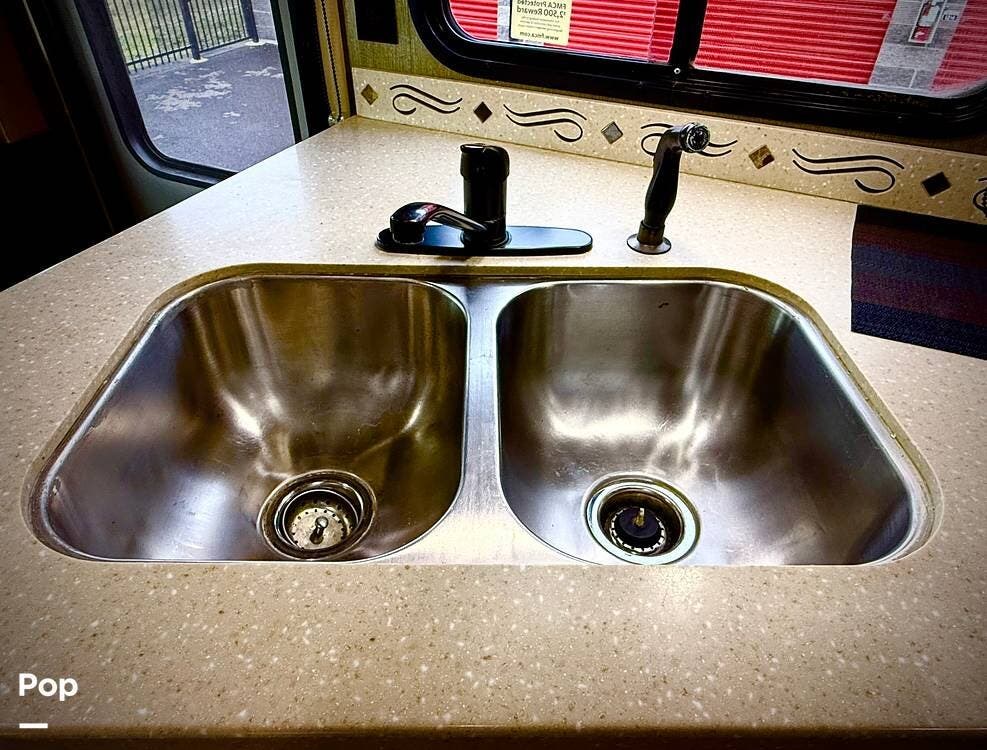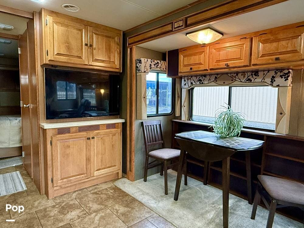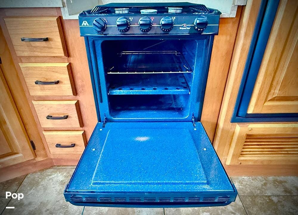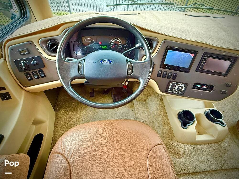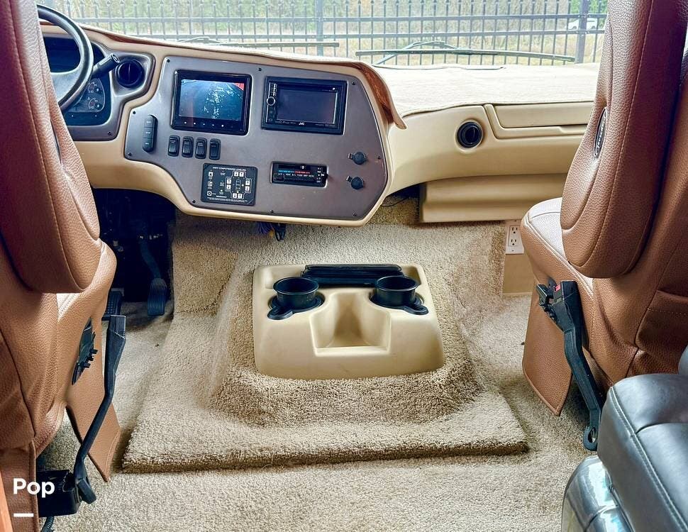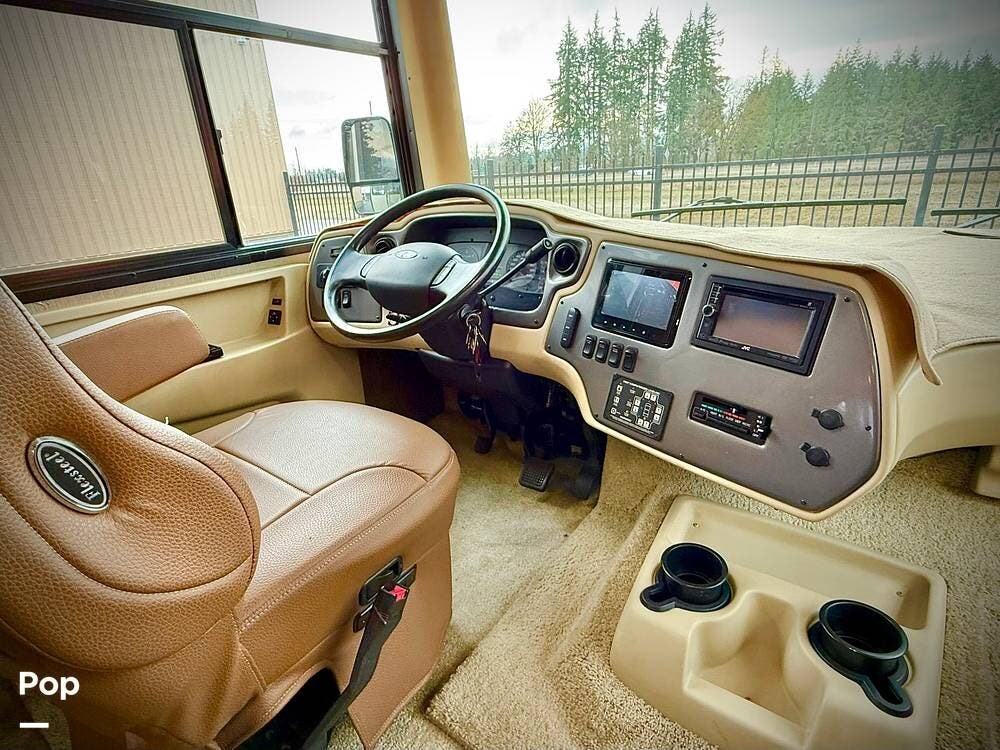 Built on the Ford F-Series Super Duty chassis and powered by the proven Ford Triton 6.8L V10 engine with 362 horsepower, this ~33.5-foot Class A strikes the perfect balance between comfortable living space and easy drivability. With two spacious slideouts, the interior opens wide to reveal a warm, inviting living area featuring Tiffin's signature handcrafted cabinetry, abundant storage, and a layout designed for true residential comfort. The Seller re-configured the living space with a free-standing dinette and two matching 'Kathy Ireland' reclining lounge chairs. The original sofa is also available.