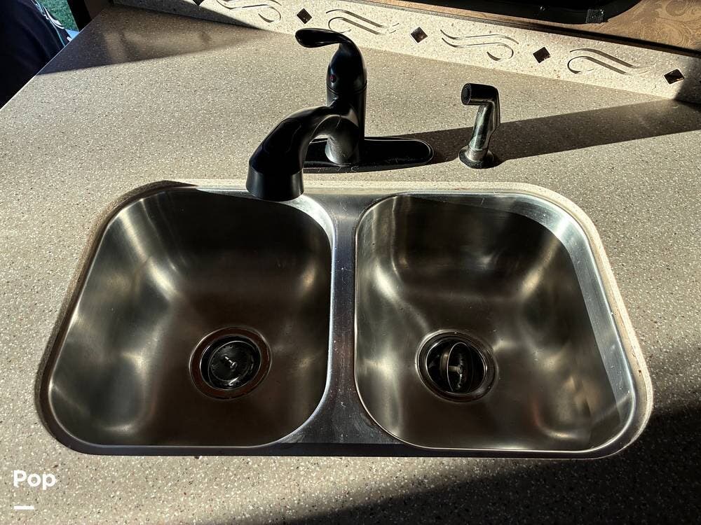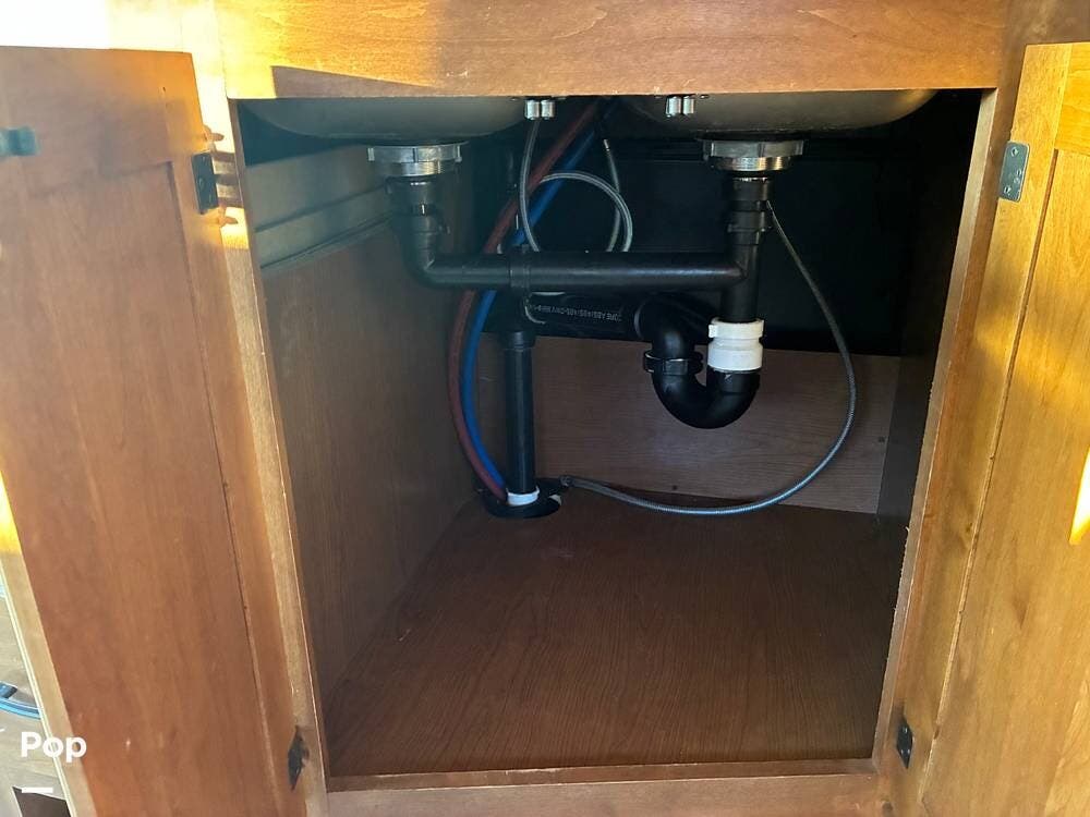 The rear Queen bed master bedroom offers a wonderful retreat. The bath-and-a-half layout offers excellent convenience, with a mid-coach half bath for guests and a private rear bath for the bedroom. The rear bath includes a washer/dryer combo, a highly sought-after option that adds true residential functionality for longer trips.