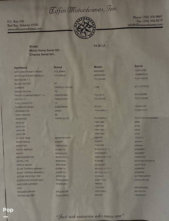 - ManufacturerTiffin Motor Homes