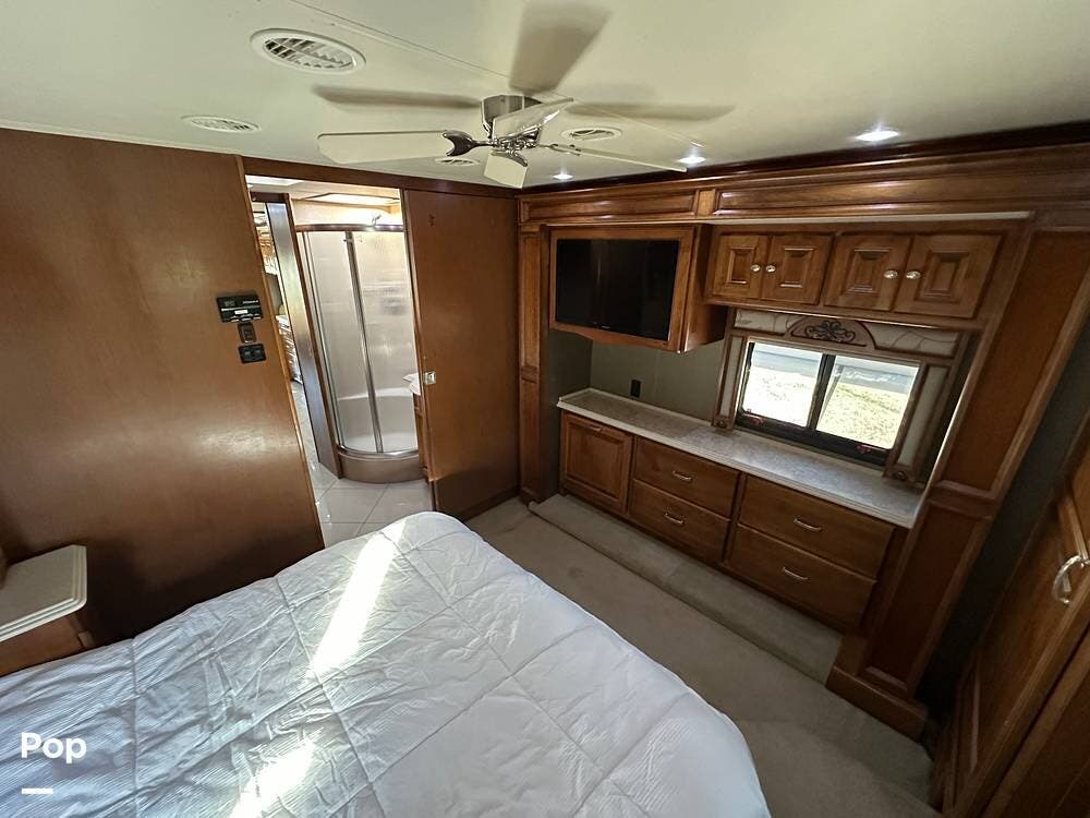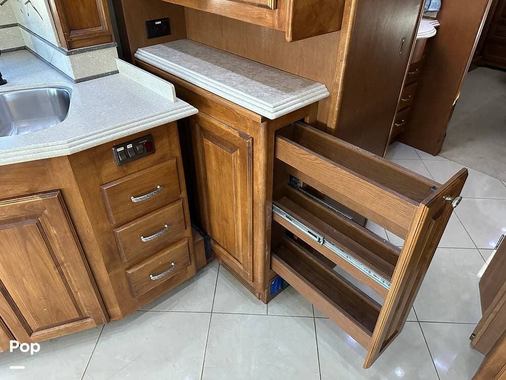 The kitchen is thoughtfully laid out with solid surfaces, quality cabinetry, and plenty of storage for extended travel. It's perfect for everything from quick breakfasts to full home-cooked meals on the road. The bedroom offers a peaceful retreat with a comfortable bed, generous closet space, and a private atmosphere that makes it easy to unwind at the end of the day.