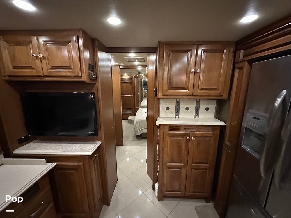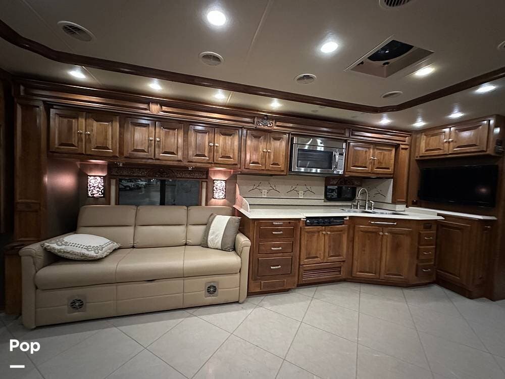 This 2013 Tiffin Phaeton 40QTH is one of the most well-appointed and capable diesel pushers you will find on the used market today. The Phaeton has long been regarded as one of the finest Class A motorhomes ever built, and this 40-foot, three-slide floorplan is a perfect example of why. From the moment you step through the entry door, you are surrounded by high-gloss raised-panel hardwood cabinet doors, solid surface countertops, porcelain tile flooring in the kitchen, living area, and bath, and plush carpet in the bedroom and cockpit. The soft-touch vinyl ceiling with a tray ceiling in the living area gives the interior a custom, residential feel that is hard to match at any price point.