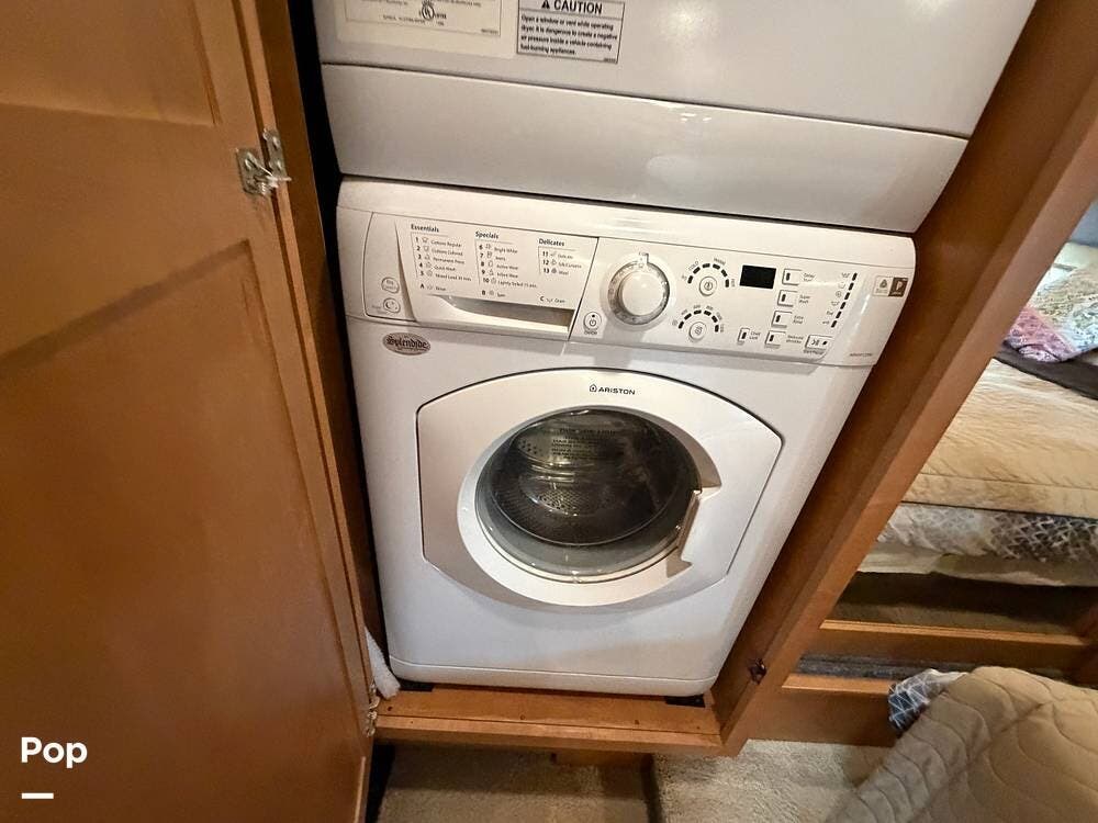 Creature comforts like a king-sized mattress in the master bedroom and a stacked washer and dryer make this a very family-friendly coach.