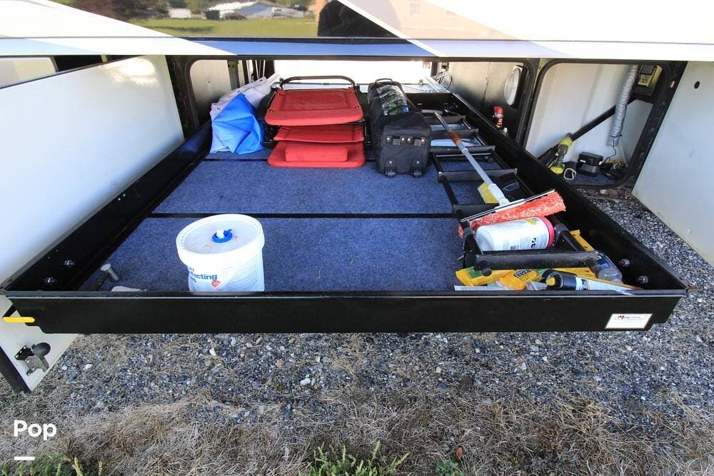 At walk-up you'll notice the large outdoor space under the powered awning that features an outdoor entertainment center! It's perfect for lounging campside!
