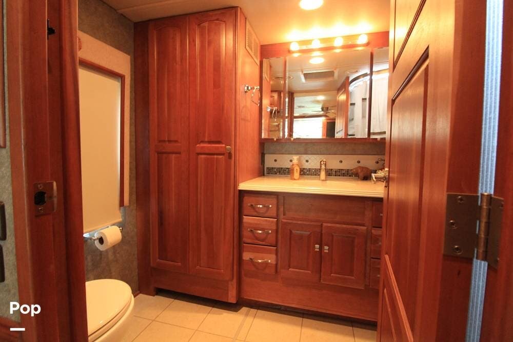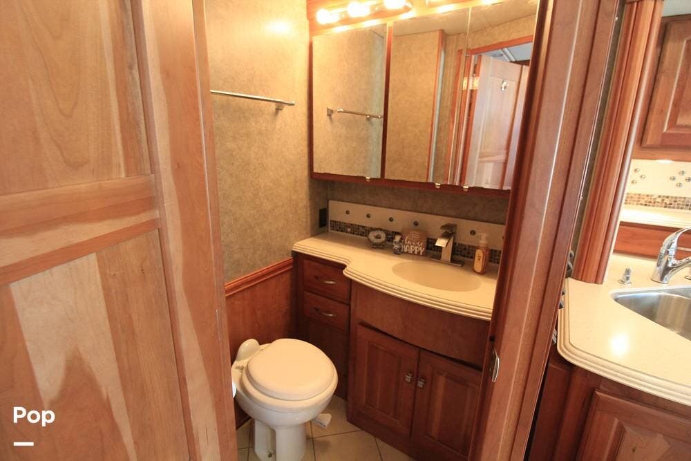 The half bath is located towards the rear of the living space, before entering the full main suite at the back of the coach.