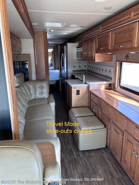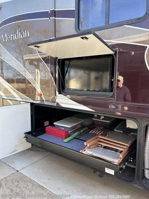 2013 Itasca-Winnebago Meridian 34B Model 34B with a full wall slide-out plus 2 additional slide-outs. A nice diesel pusher, loaded with equipment, in a practical size and offered for sale by the original owners Built on a Freightliner Maxum Chassis, full air ride-air brakes and powered by a Cummins.ISB 6.7L 340-hp turbo diesel engine, Allison 6-speed auto transmission, with 66,100 well maintained miles, 8 KW diesel generator with low hours, 2800 watt inverter, energy management system, auto leveling, power patio awning with wind sensor, slide topper awnings, fiberglass roof, dual pane windows, dual heat pump A/C units, dual furnaces, 10,000 lb hitch, rear ladder, beautful full body paint, new tires on alloy wheels, new batteries, anti-theft system, exterior entertainment center and generous basement storage with a sliding cargo tray. The spacios interior is enhanced with 2 opposing slide-outs in the living-dining areas, LED lighting, MCD black-out roller shades, upgraded flooring throughout, a Rest Easy extendable sectional sofa with 2 ottomans, a large telvator HDTV, Blu-Ray and, auto satellite system for your entertainment. The equipped L-shaped galley has beautiful maple cabinetry, Corian countertops, water filtration, db. sinks, a 3 burner cooktop, convection microwave, a slide-out pantry and a residential French door refrigerator with botton freezer and ice maker. The 34B layout has a fully enclosed side bath configuration with a large shower, vanity sink, medicine cabinet and toilet. The master bedroom has an island King Bed, large chest of drawers, HDTV, a large rear wall wardrobe, ceiling fan and a 2-piece stacked washer and dryer. The drivers area has full instrumentation including new rear/side view monitoring, R/H chrome mirrors, SiriusXM radio, MCD shades, power seating and so much more. This coach is clean with no smokers, many new parts & camping accessories included, has a clean CarFax report, no disappointments and absolutely ready for your traveling adventures. Located in Murfreesboro, TN for $90,000. Photos, factory specs, build sheet and CarFax available by email or by calling The MotorHome Brokers 888-294-9669. We invite you to arrange a personal visit soon. This is a NICE ONE !