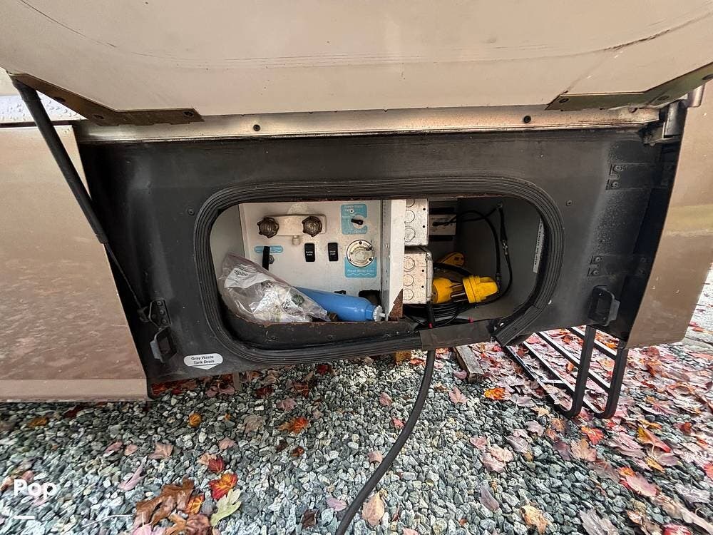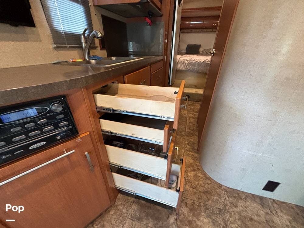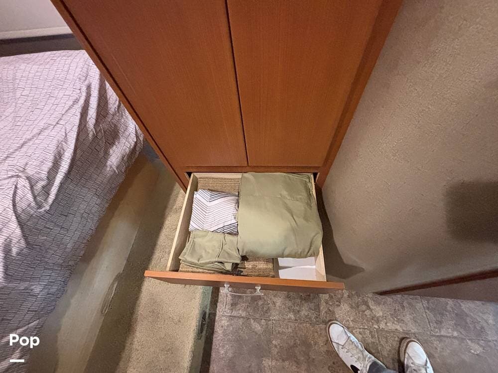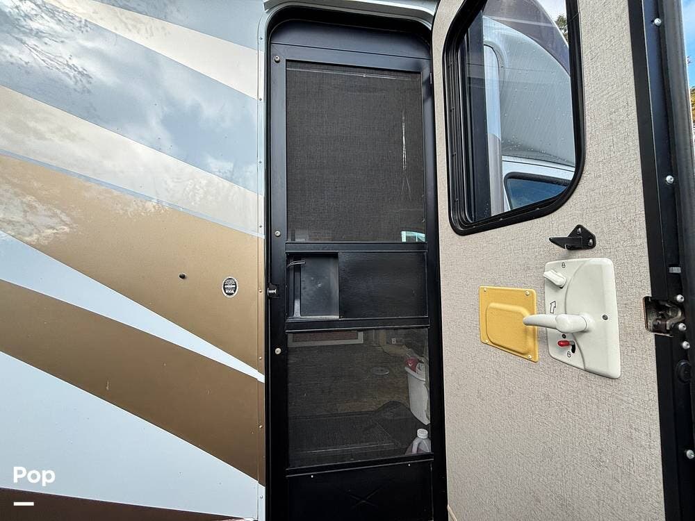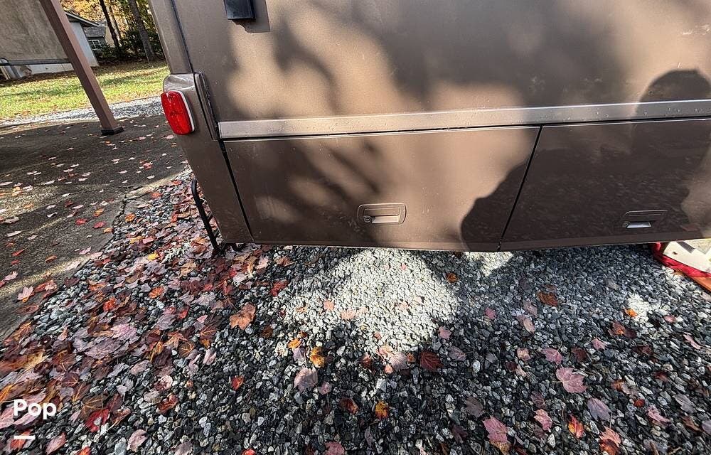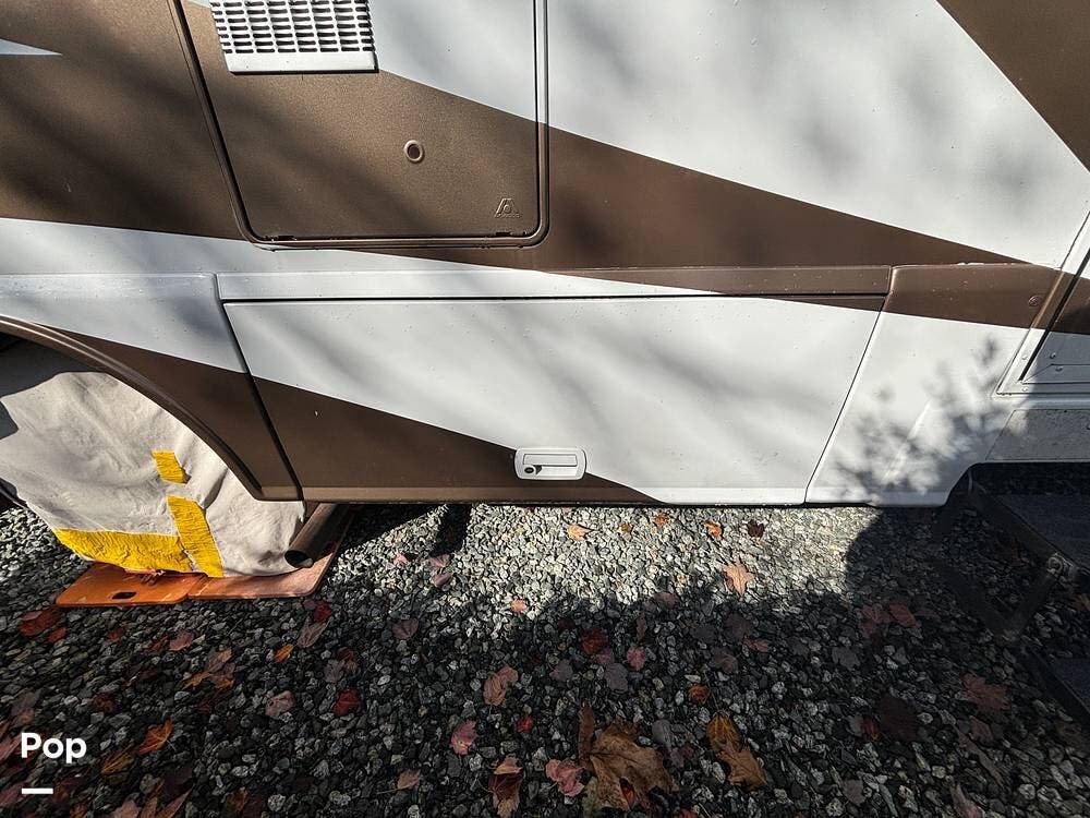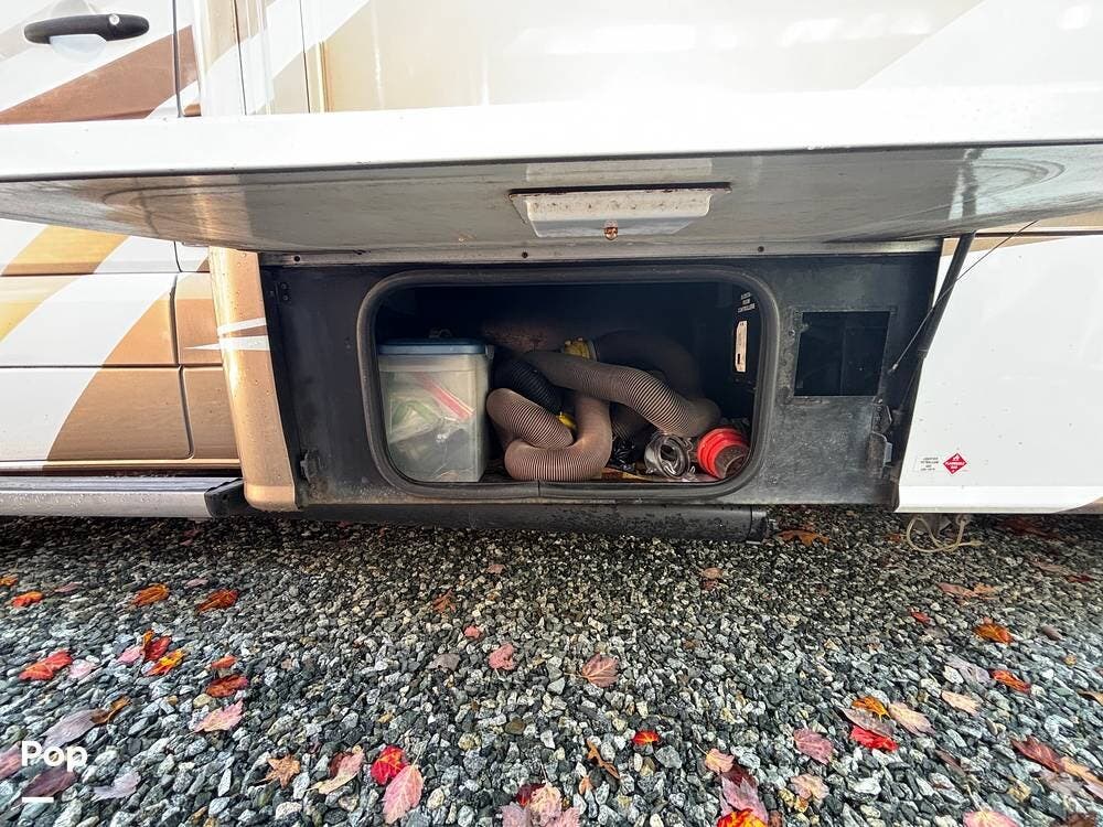 The full-body paint exterior provides a sleek, upscale look, complemented by aluminum wheels, large basement storage compartments, and a power patio awning. With a built-in generator and efficient diesel powertrain, this coach is equally ready for weekend trips or extended travel.