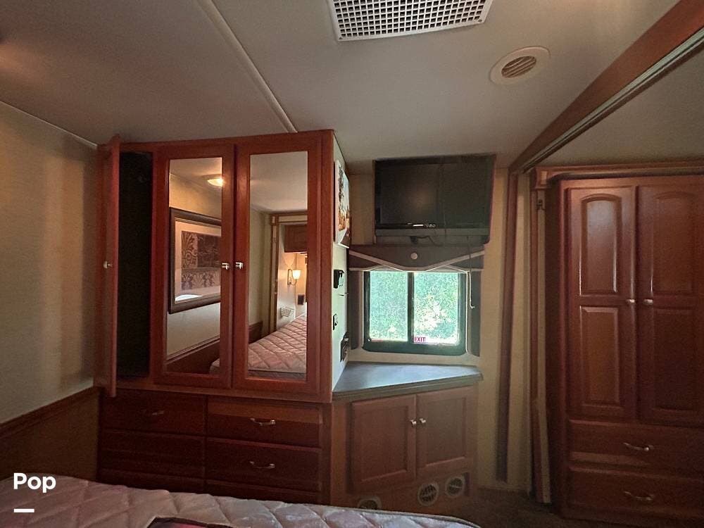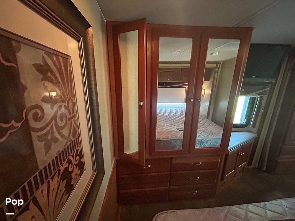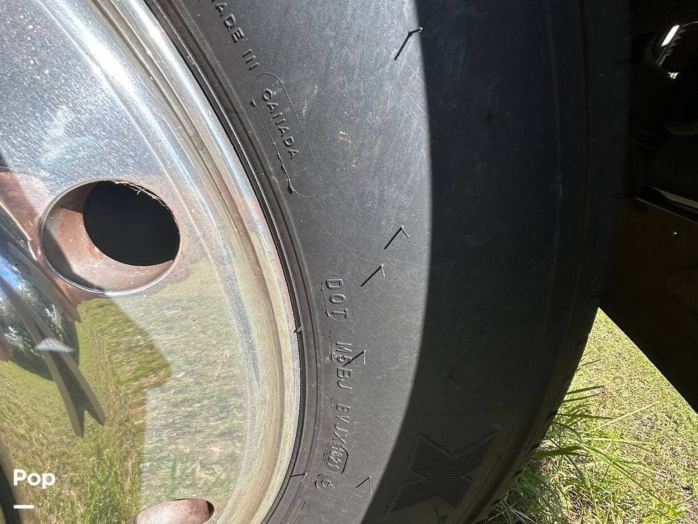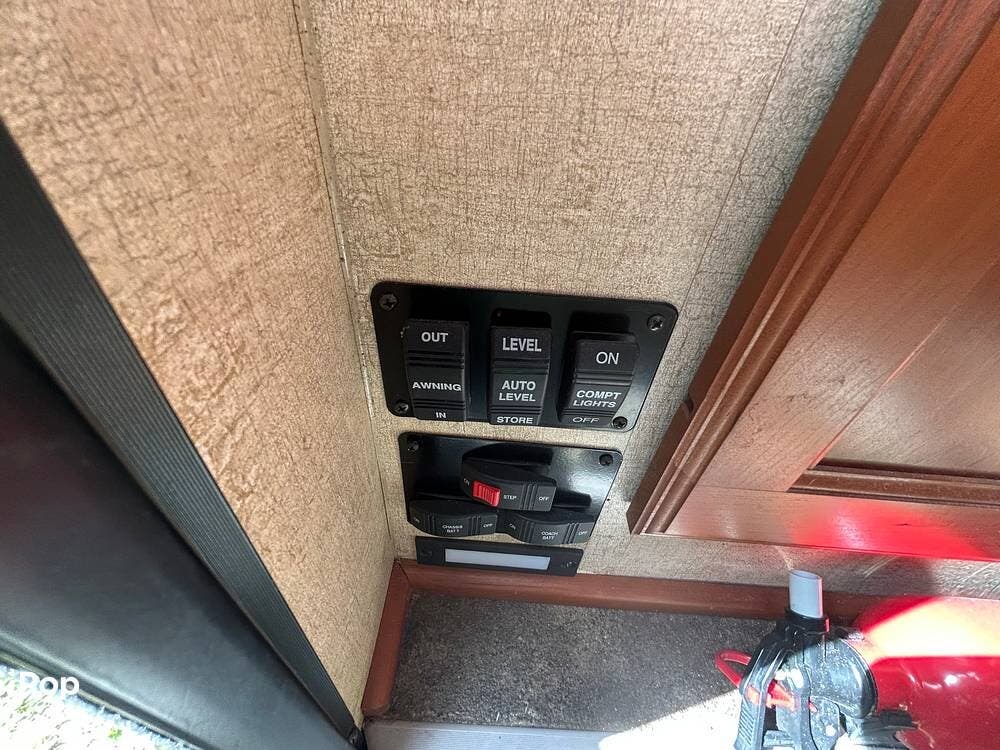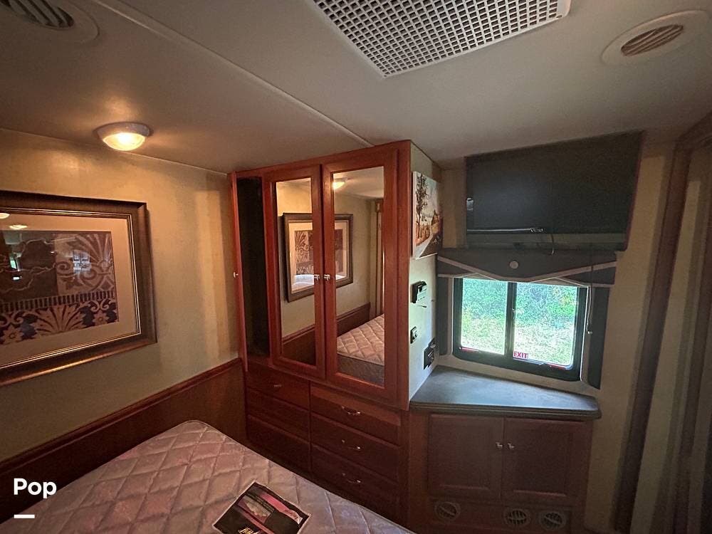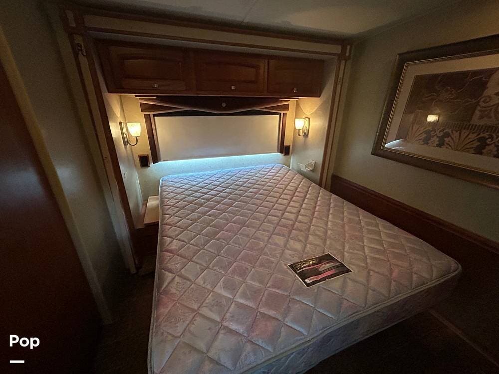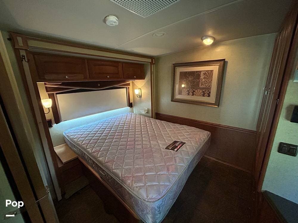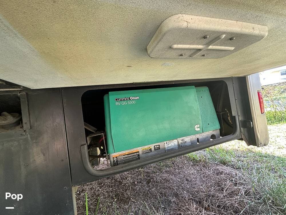 This unit has ample storage inside and outside, and equipped with a 5,500-watt Cummins Onan generator, dual 13,500 BTU air conditioners, a 40,000 BTU furnace, and a 6-gallon water heater.