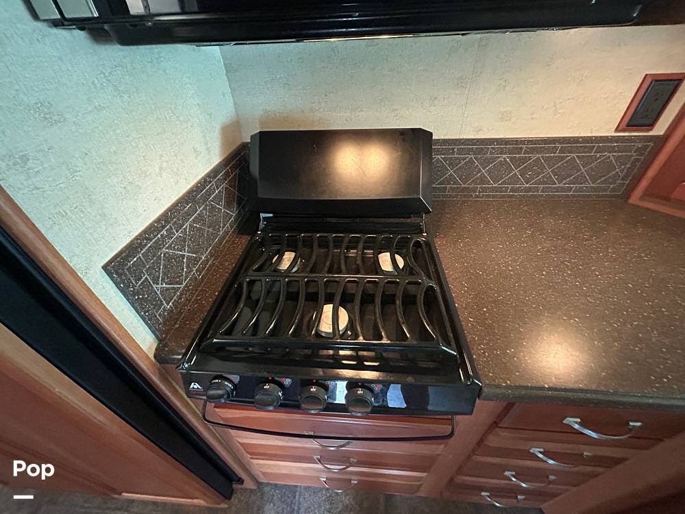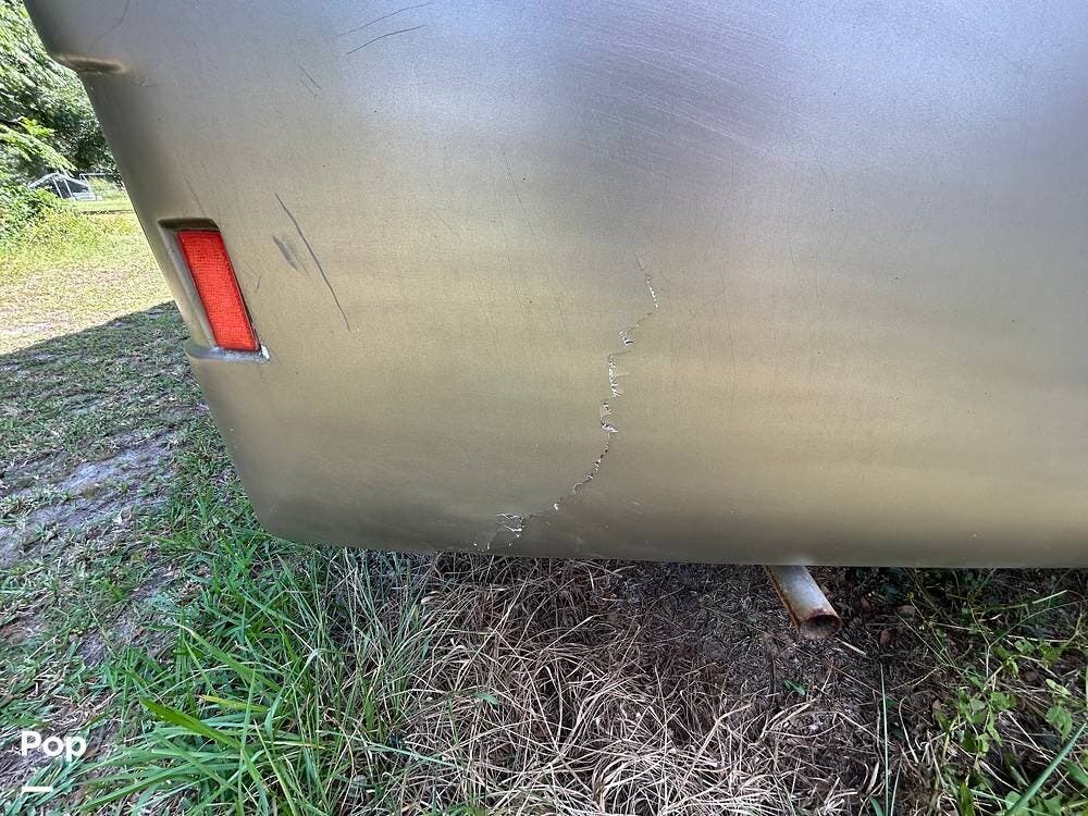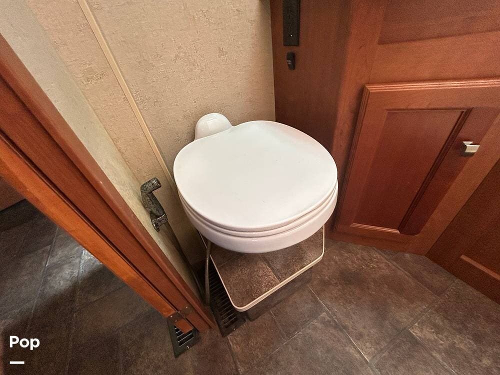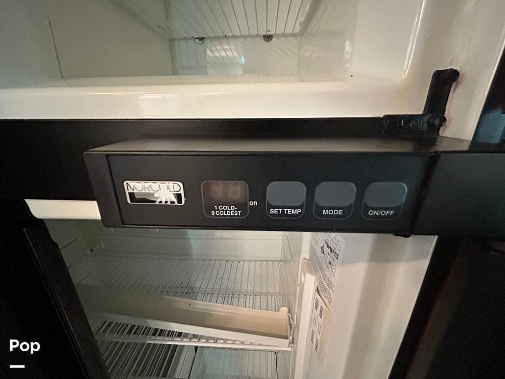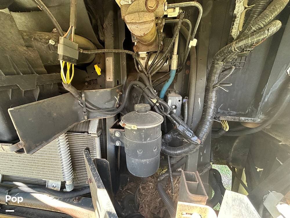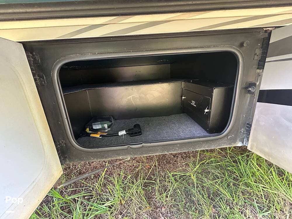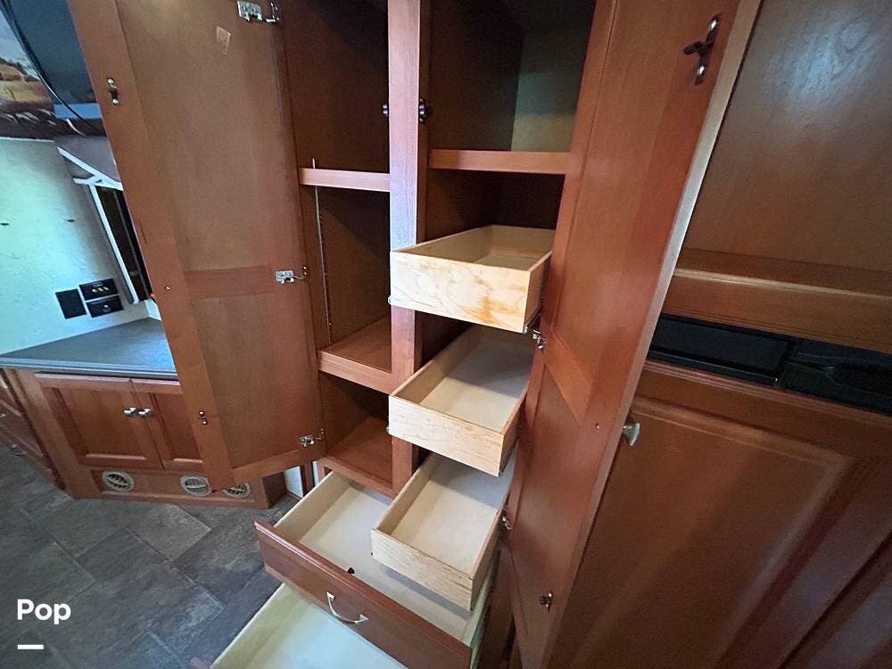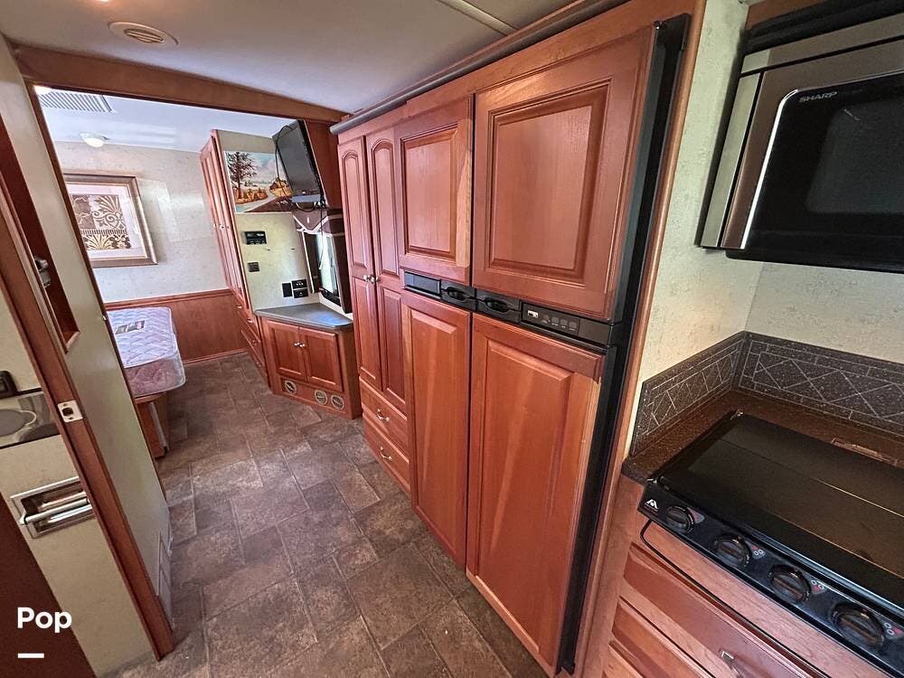 This unit has ample storage inside and outside, and equipped with a 5,500-watt Cummins Onan generator, dual 13,500 BTU air conditioners, a 40,000 BTU furnace, and a 6-gallon water heater.