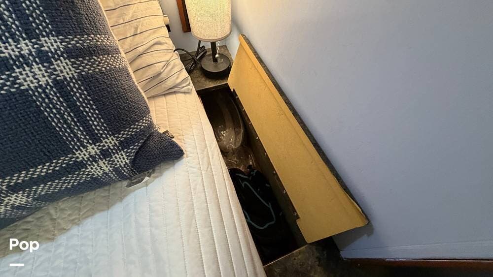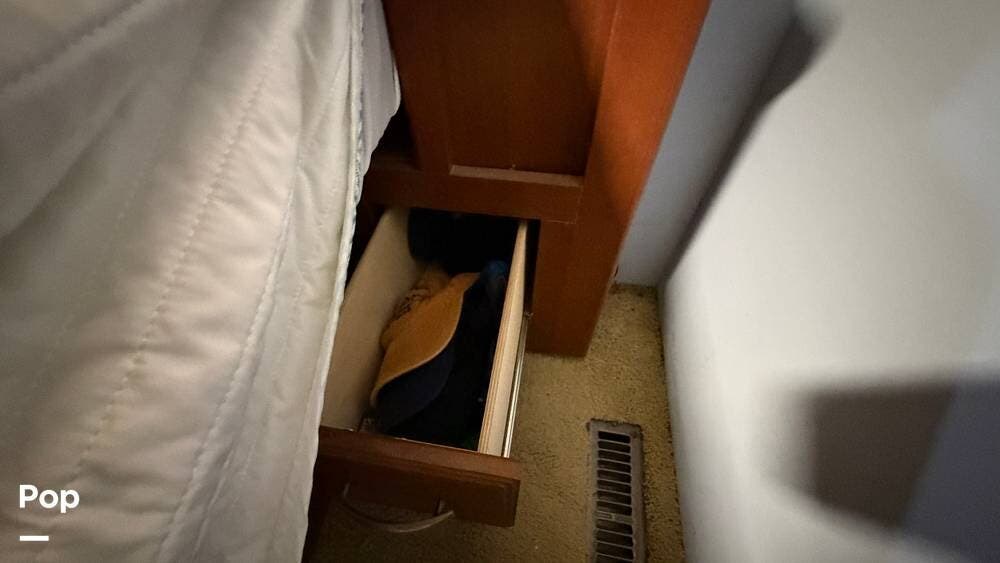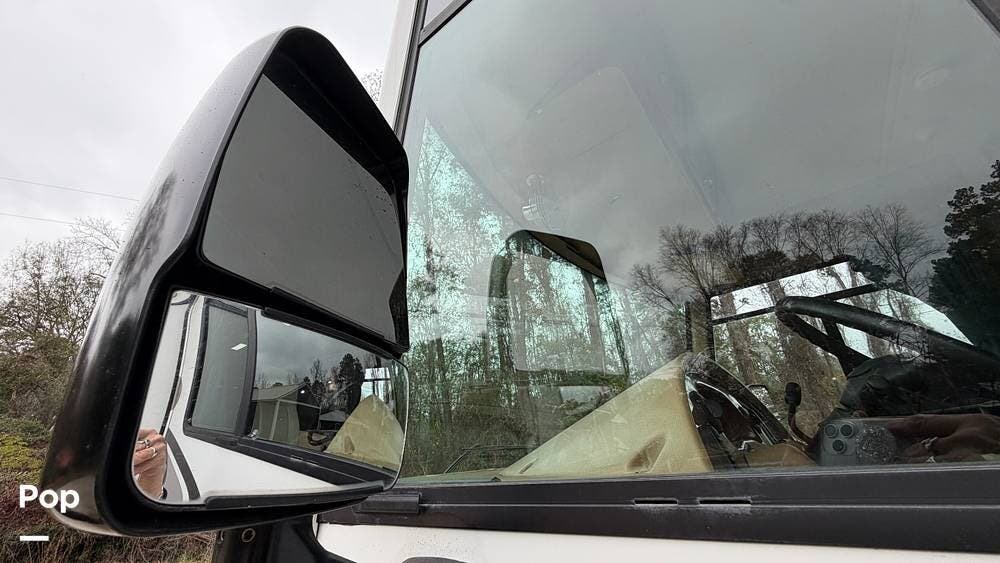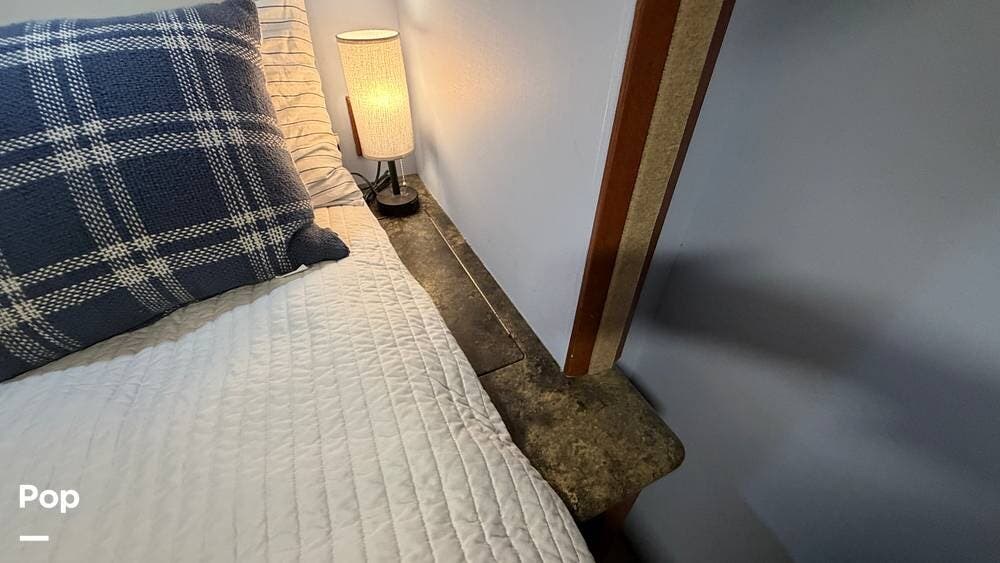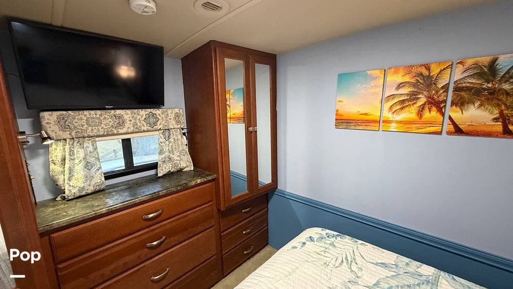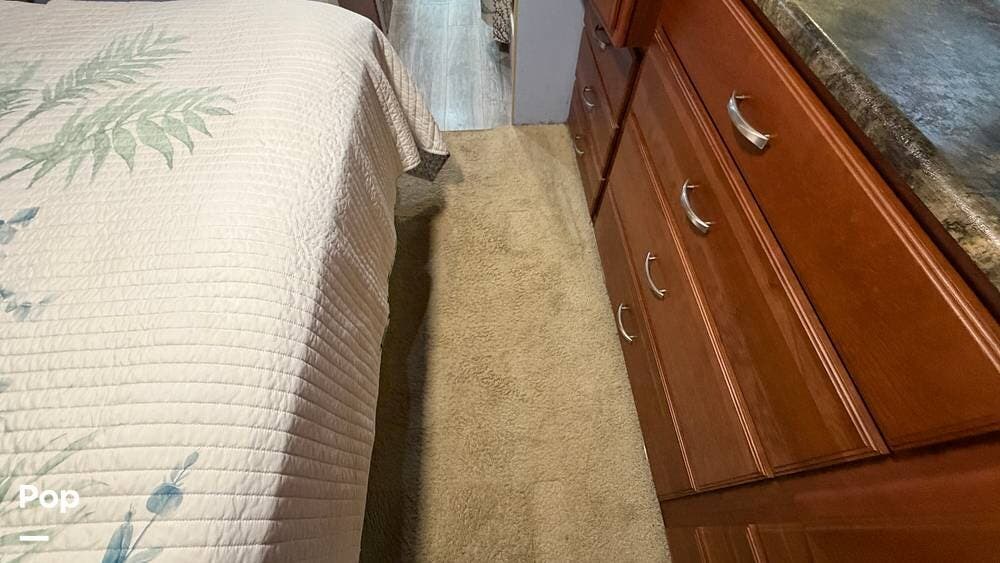 The private bedroom provides a restful retreat with abundant closet storage, while the well-appointed bathroom offers convenience and functionality for extended trips. Large windows bring in plenty of natural light, creating an inviting atmosphere throughout the coach.