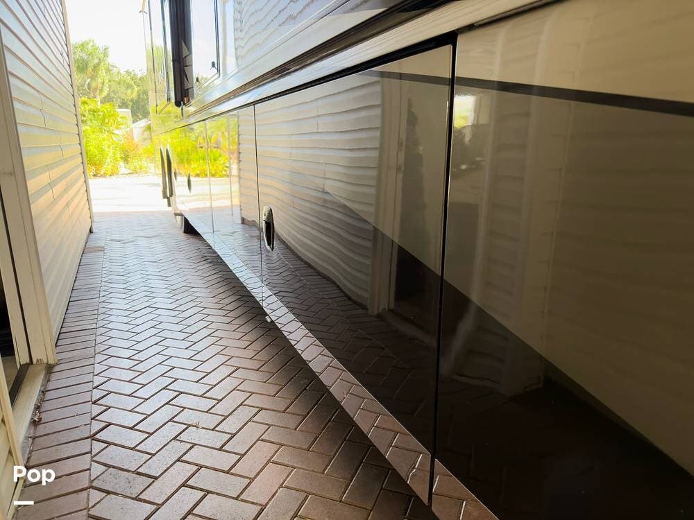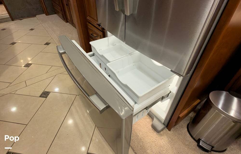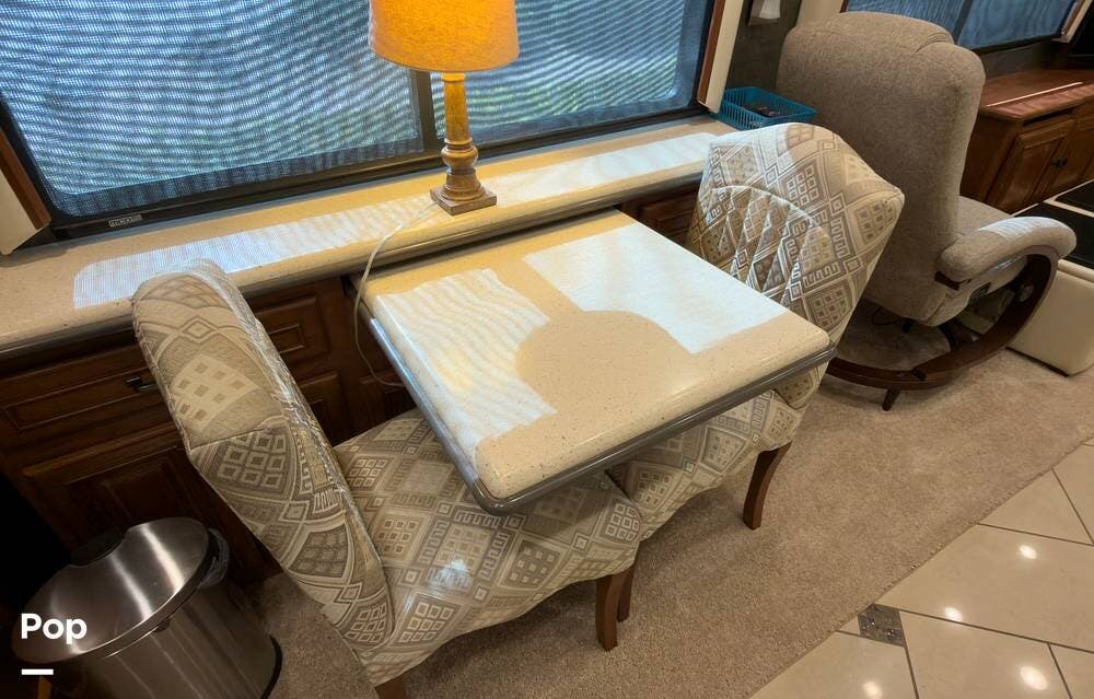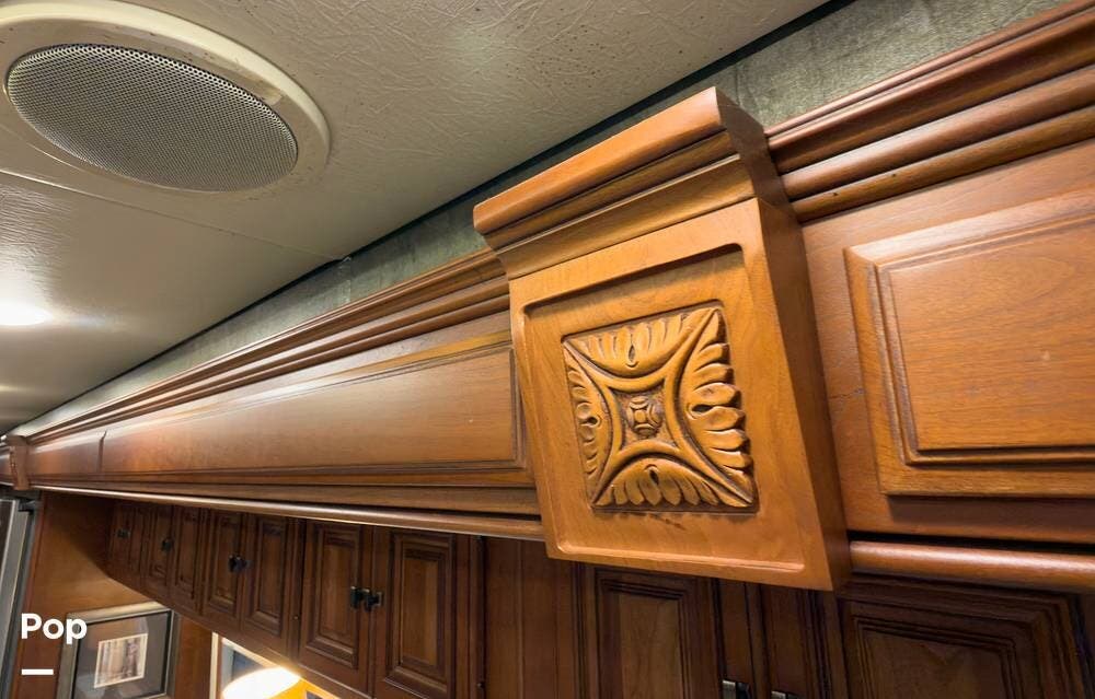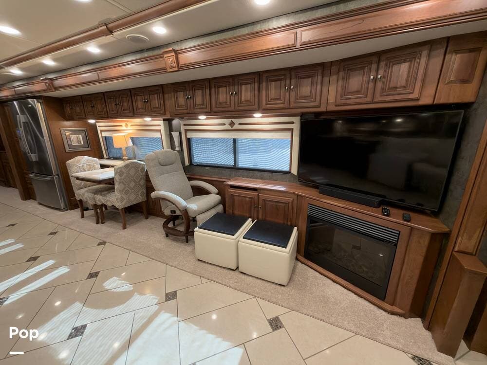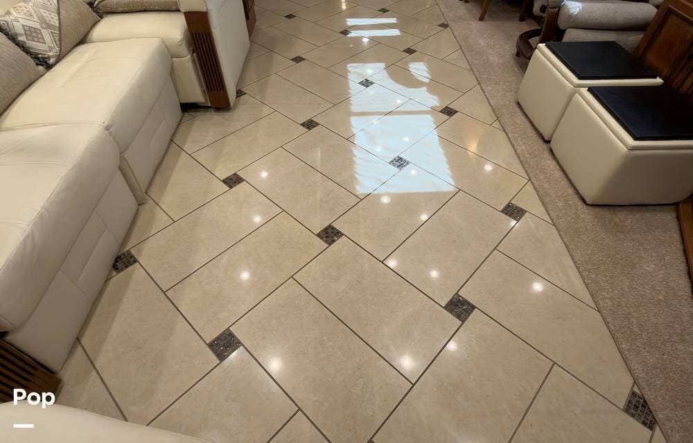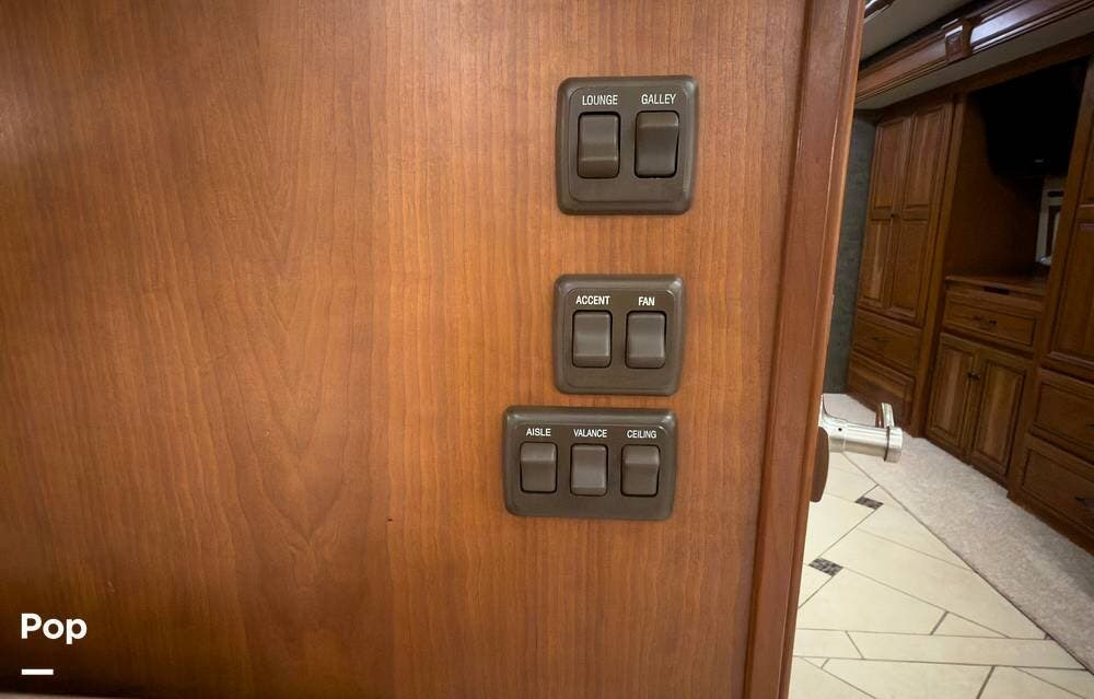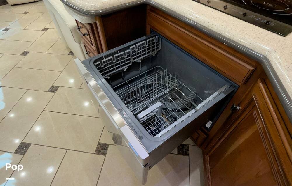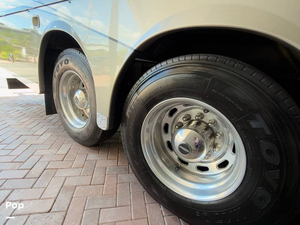 The ride is exceptionally smooth thanks to air suspension, air brakes, a tag axle, and independent front suspension. Inside, you'll find a spacious layout with premium tile flooring, rich hardwood cabinetry, and upscale residential-style furnishings.