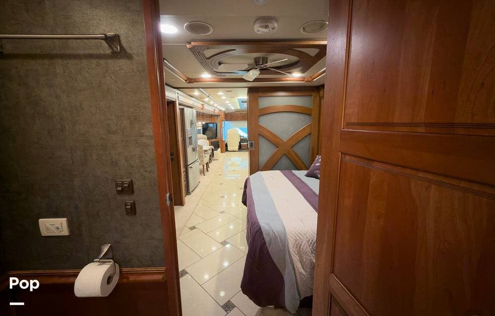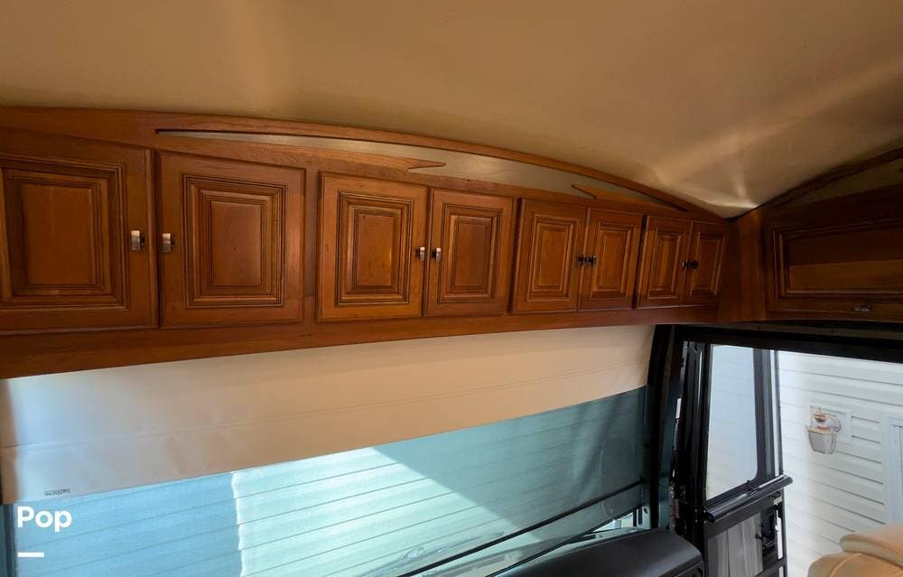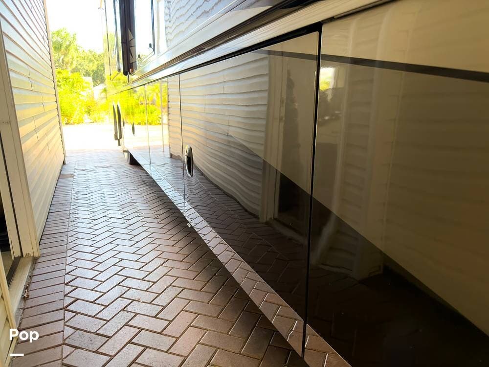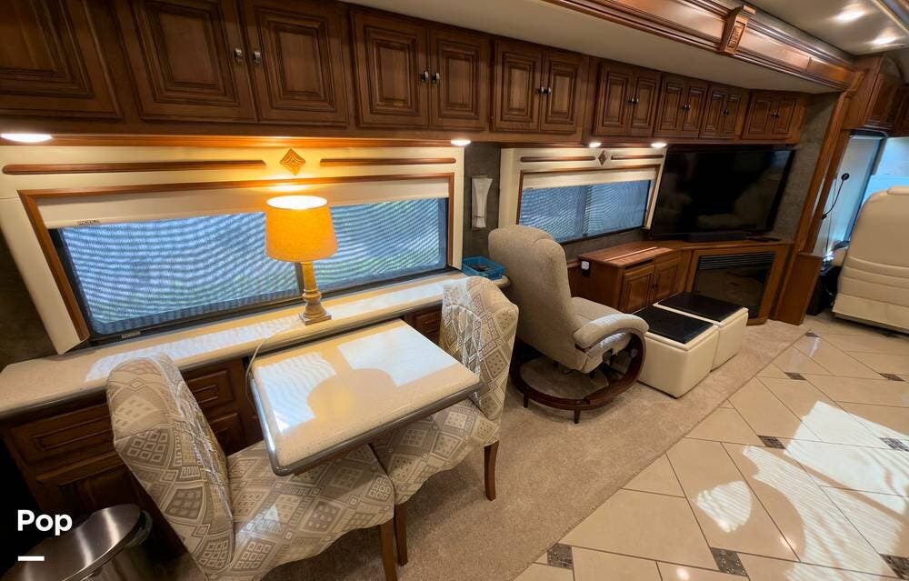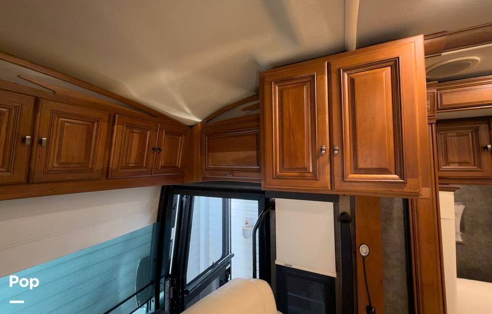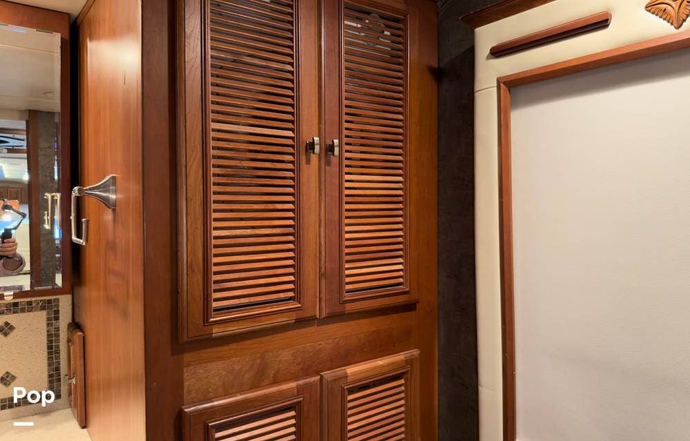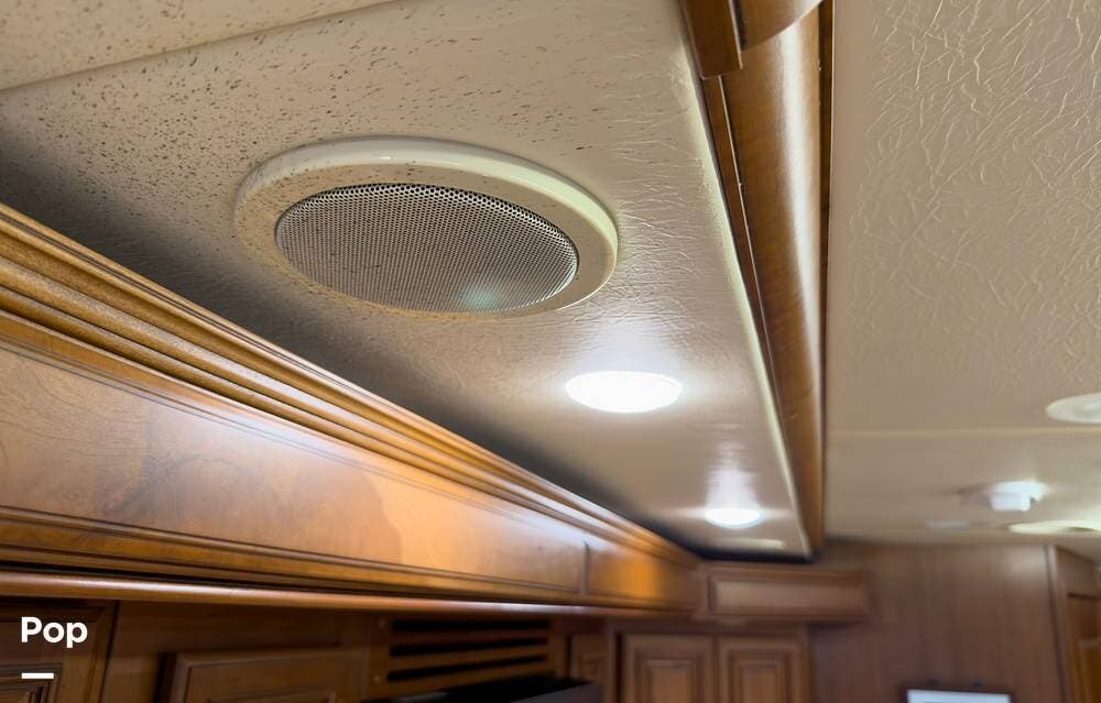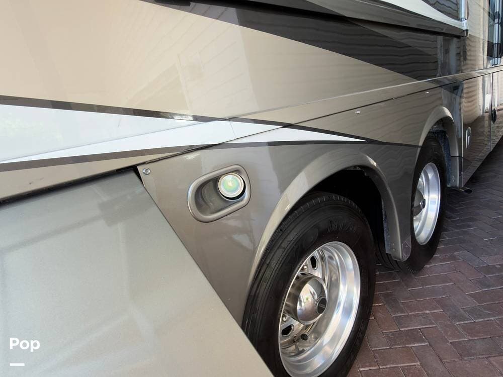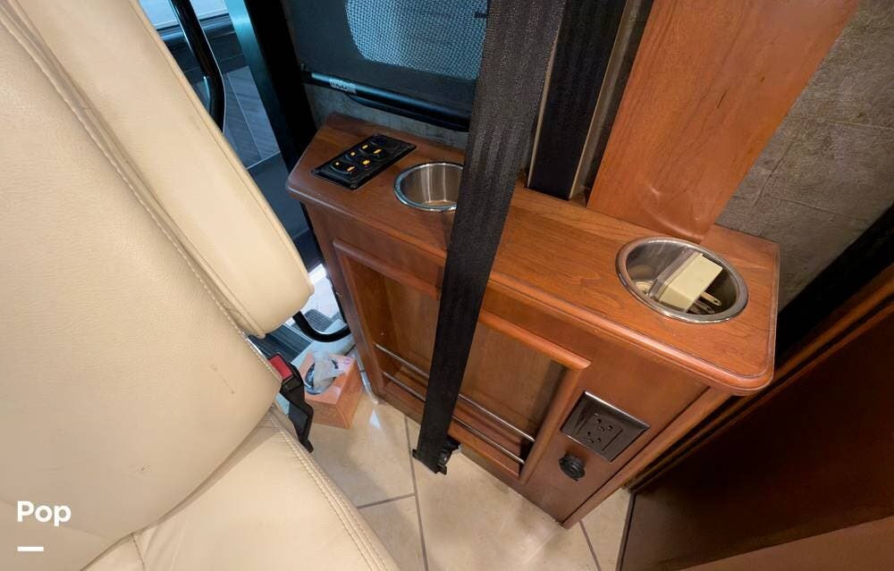 The ride is exceptionally smooth thanks to air suspension, air brakes, a tag axle, and independent front suspension. Inside, you'll find a spacious layout with premium tile flooring, rich hardwood cabinetry, and upscale residential-style furnishings.