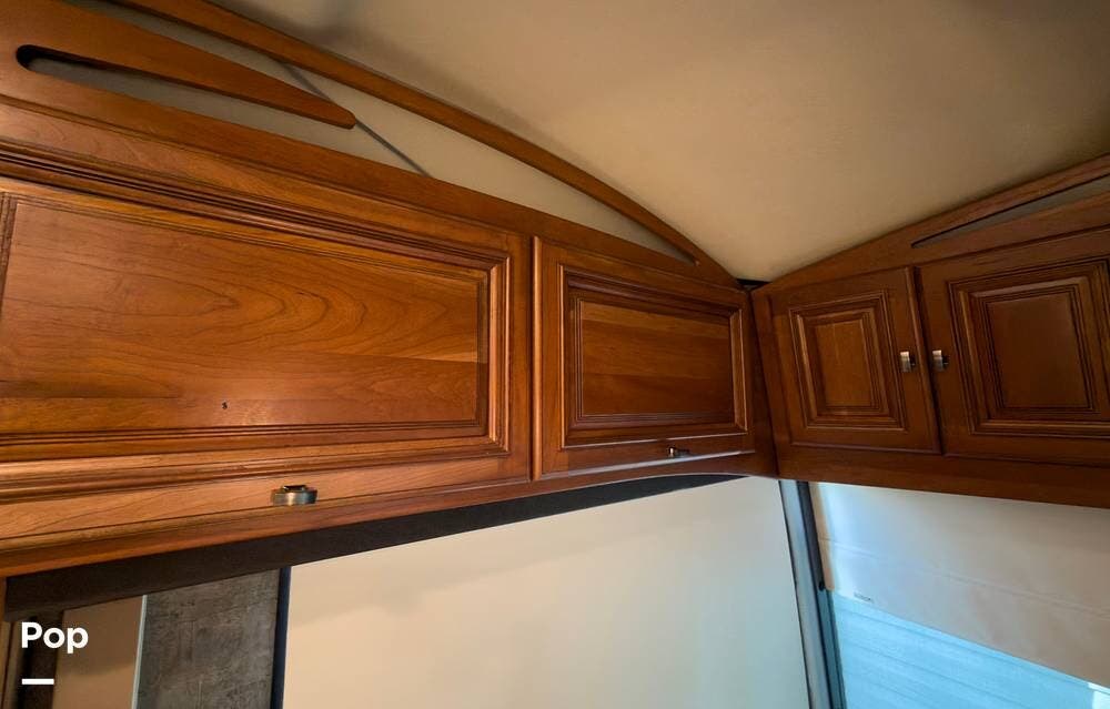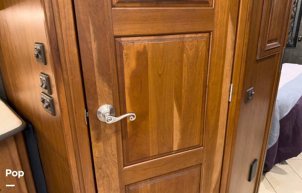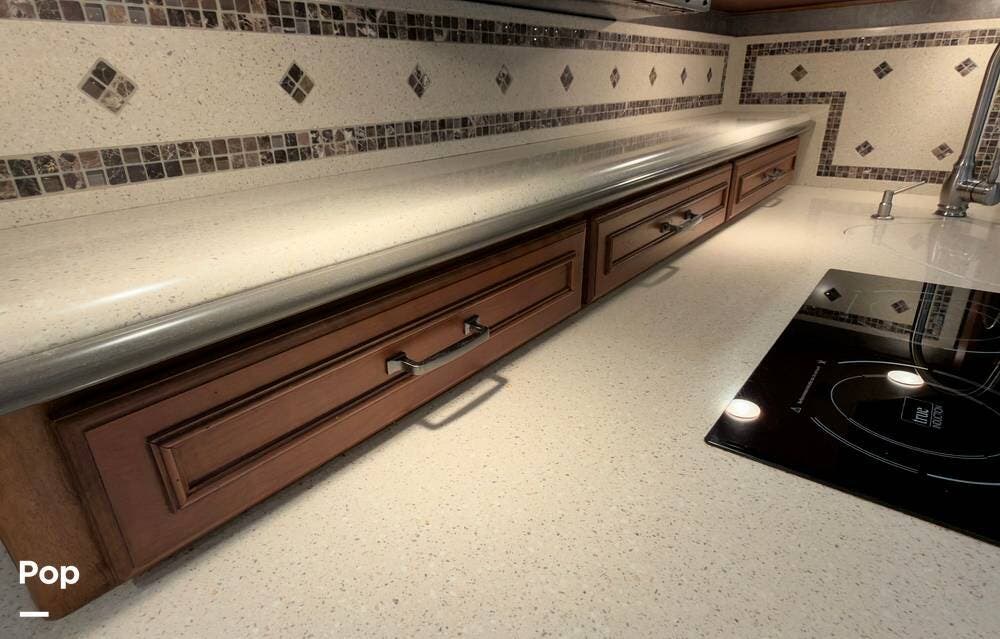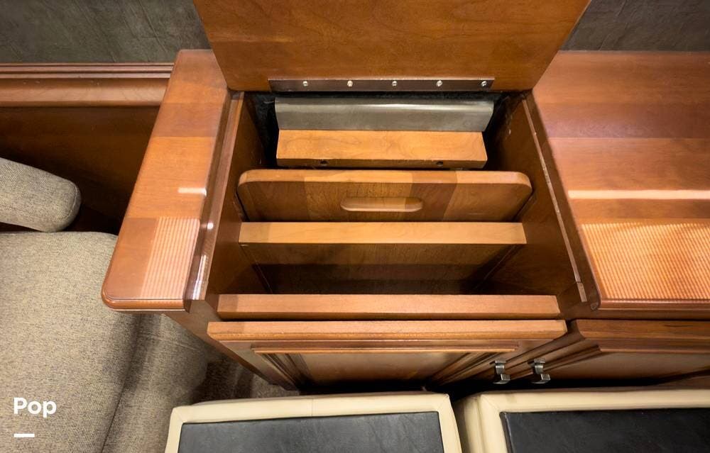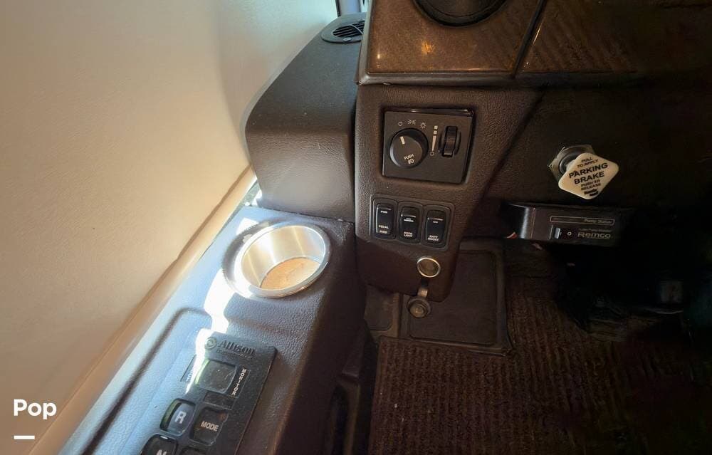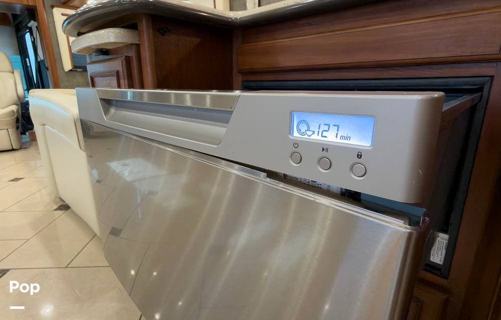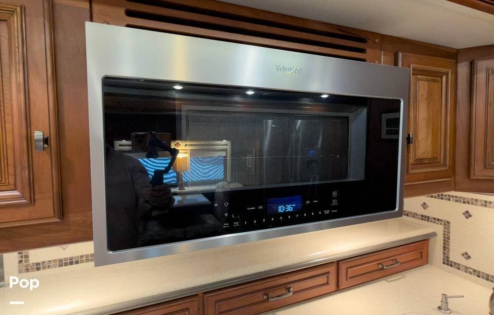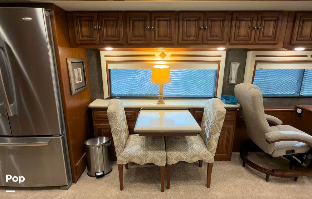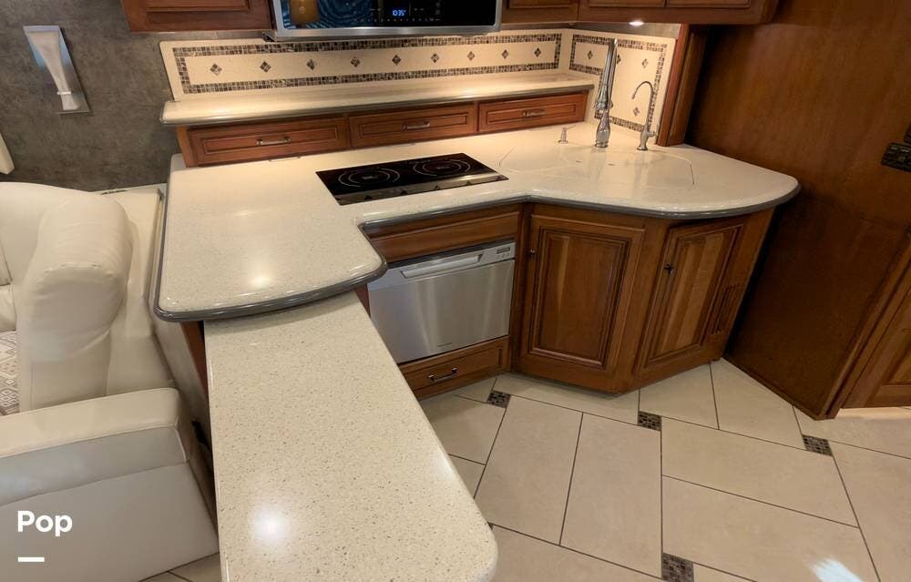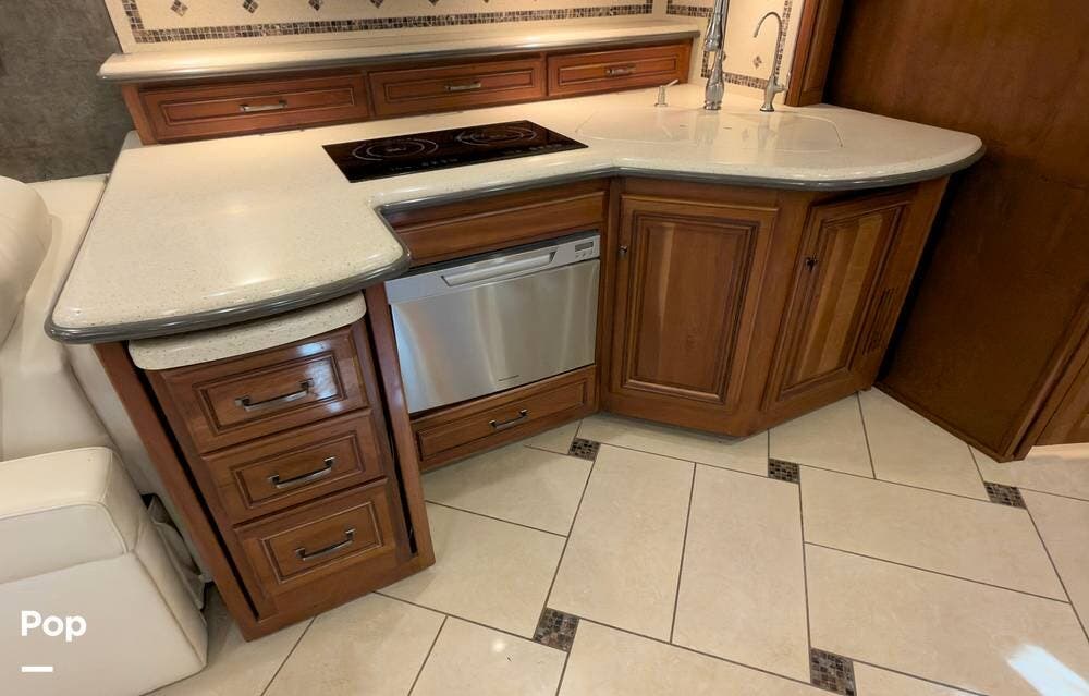 The ride is exceptionally smooth thanks to air suspension, air brakes, a tag axle, and independent front suspension. Inside, you'll find a spacious layout with premium tile flooring, rich hardwood cabinetry, and upscale residential-style furnishings.