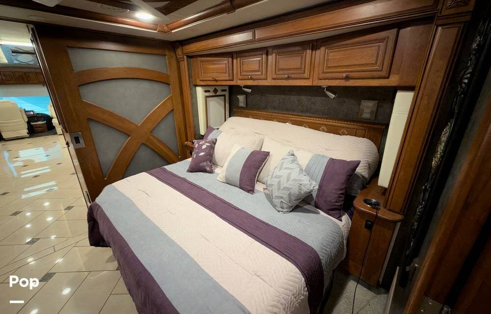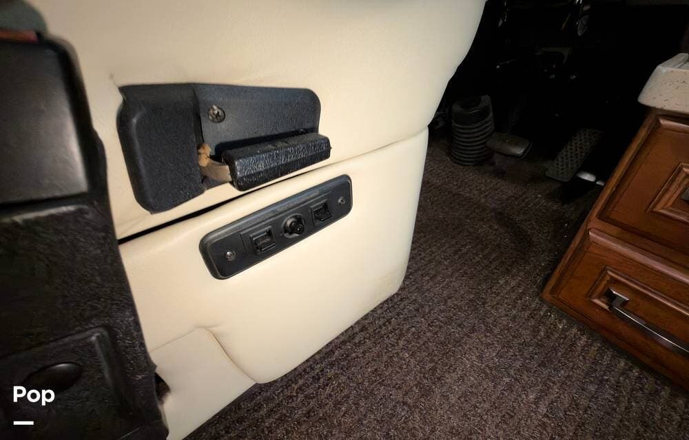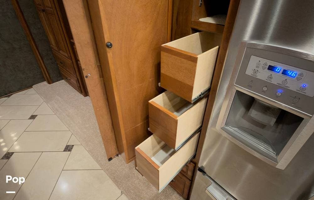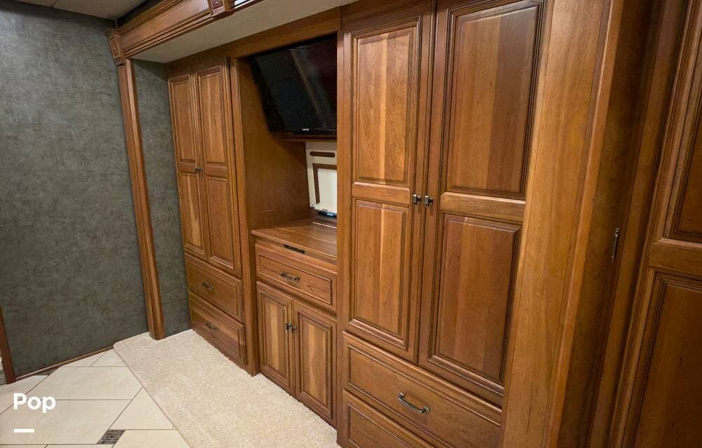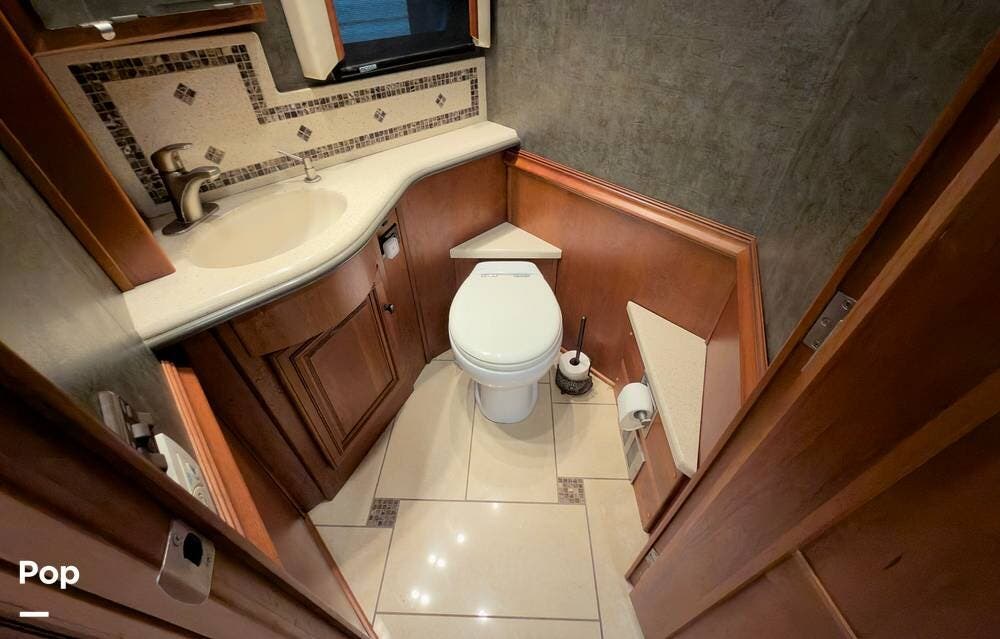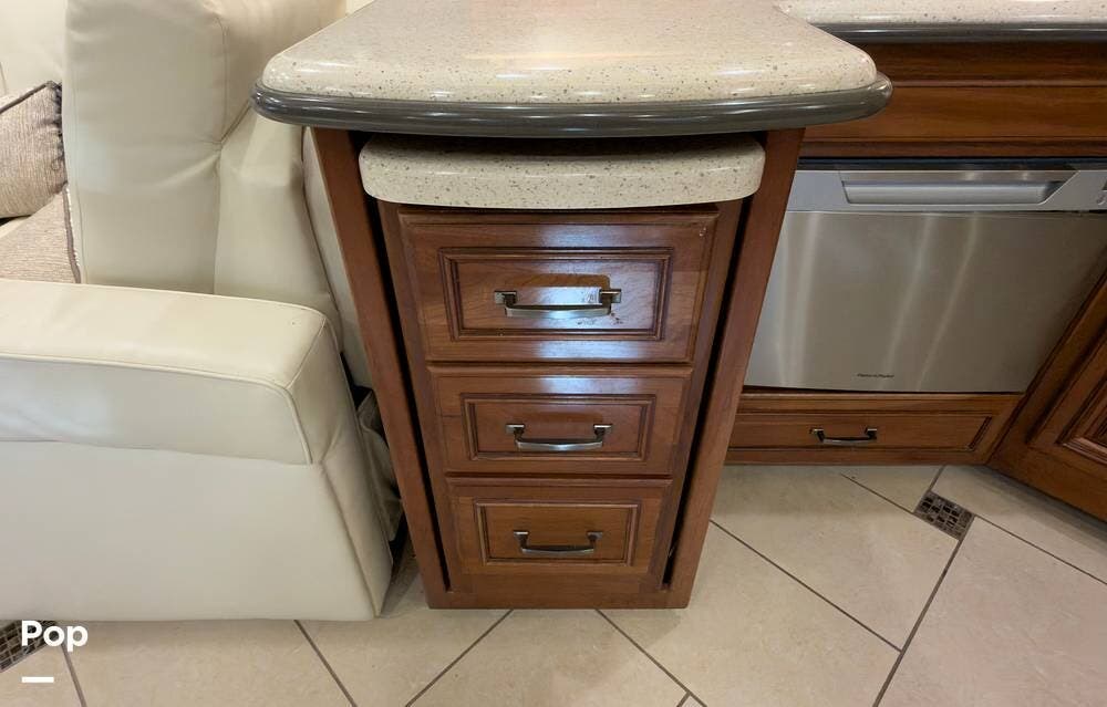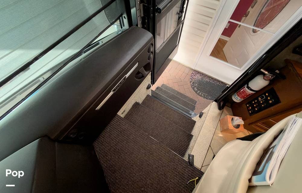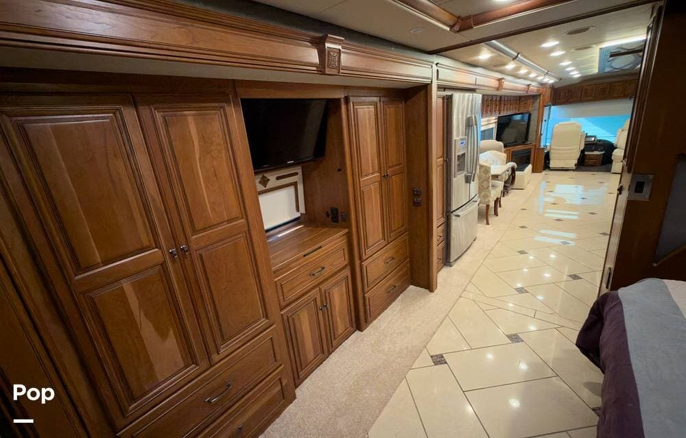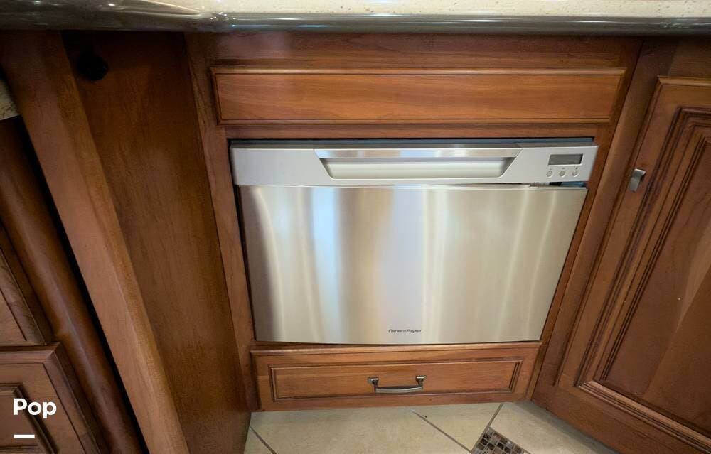 The ride is exceptionally smooth thanks to air suspension, air brakes, a tag axle, and independent front suspension. Inside, you'll find a spacious layout with premium tile flooring, rich hardwood cabinetry, and upscale residential-style furnishings.
