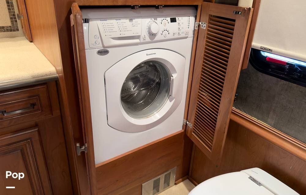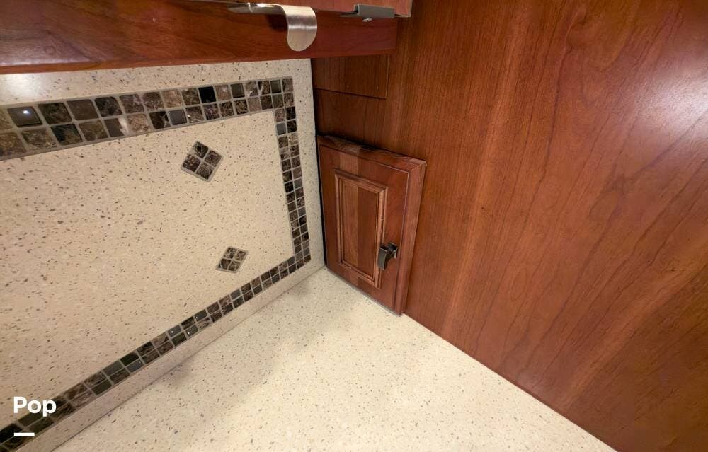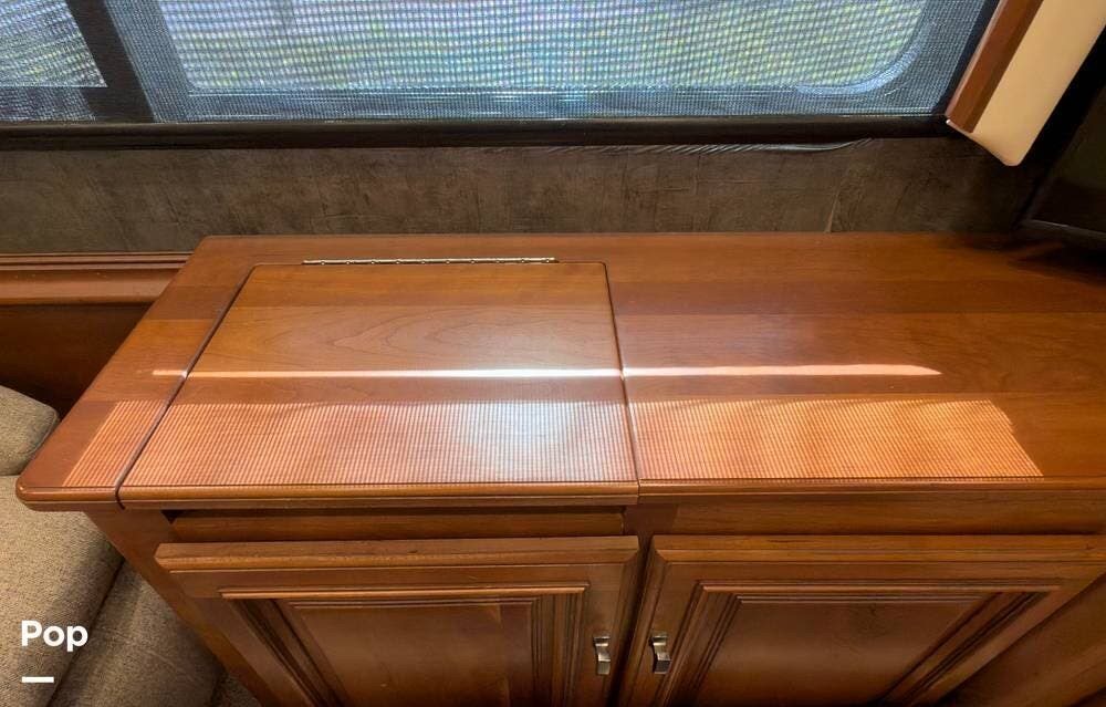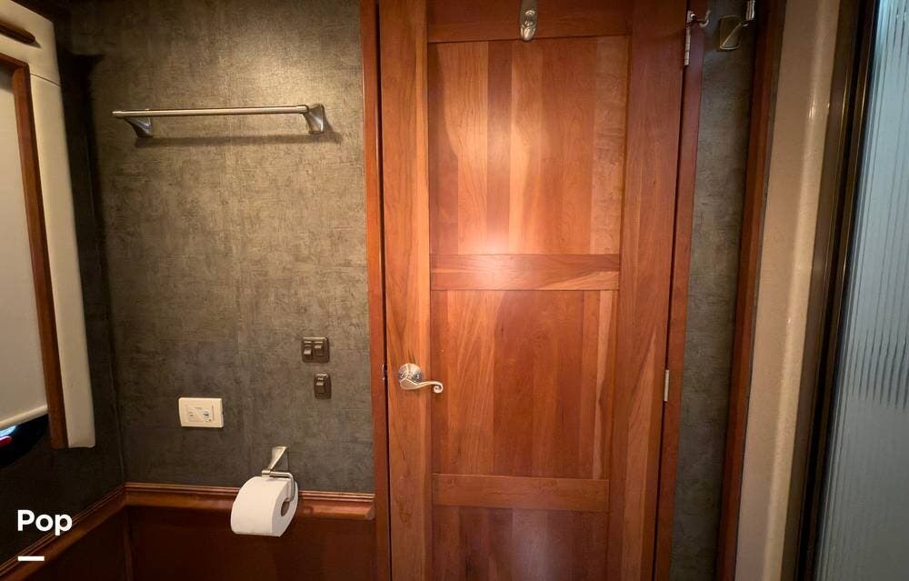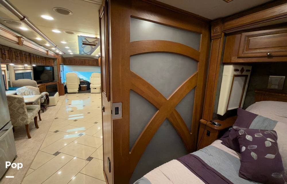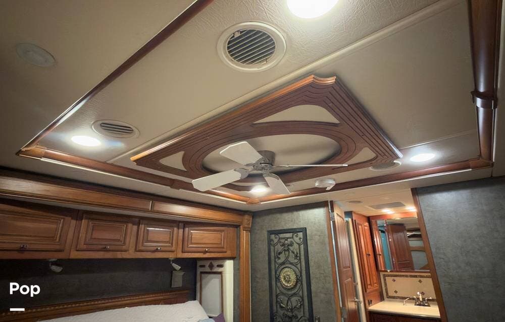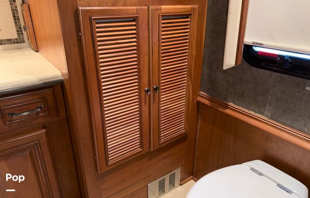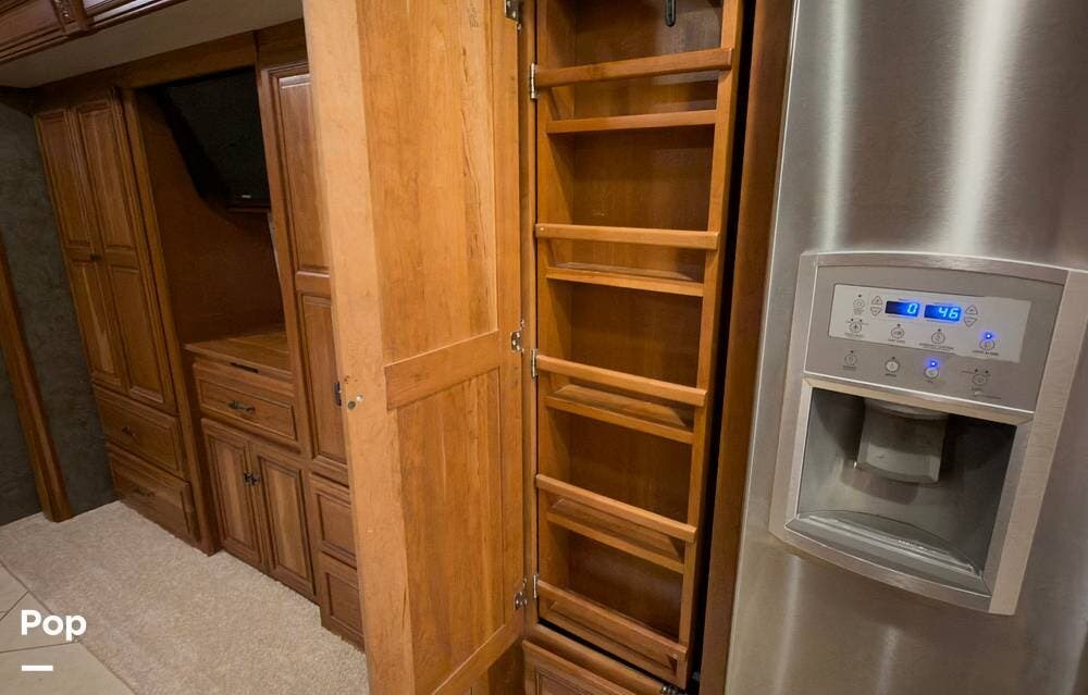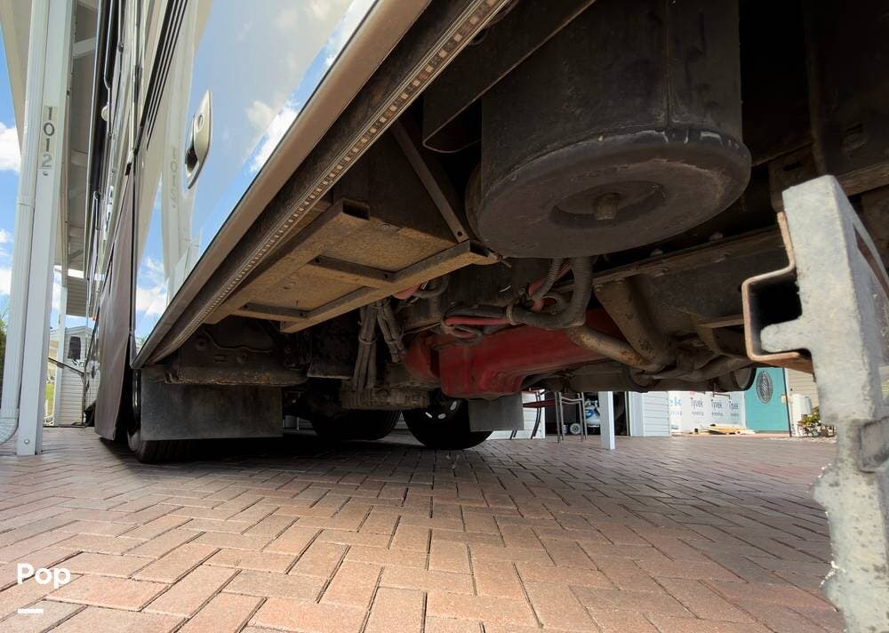 The ride is exceptionally smooth thanks to air suspension, air brakes, a tag axle, and independent front suspension. Inside, you'll find a spacious layout with premium tile flooring, rich hardwood cabinetry, and upscale residential-style furnishings.
