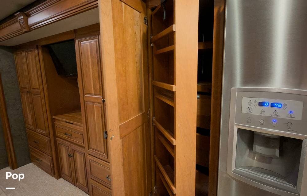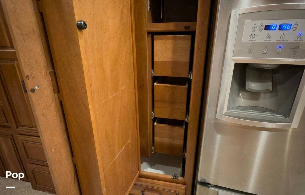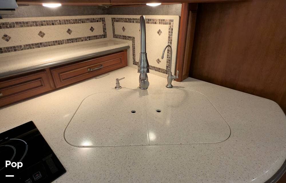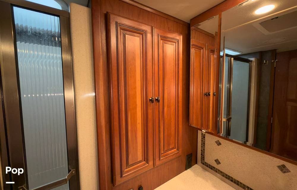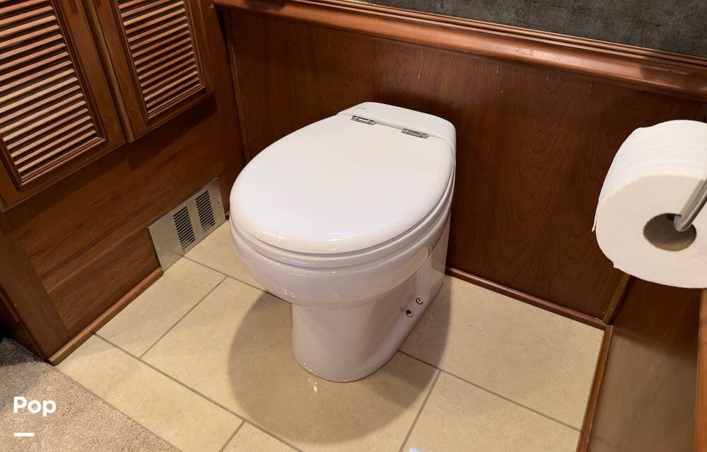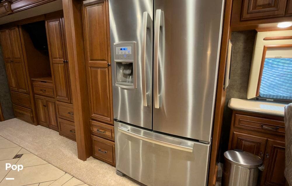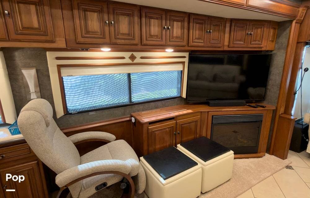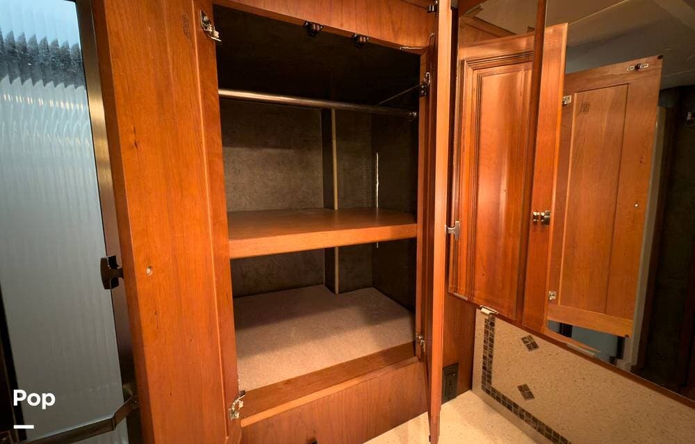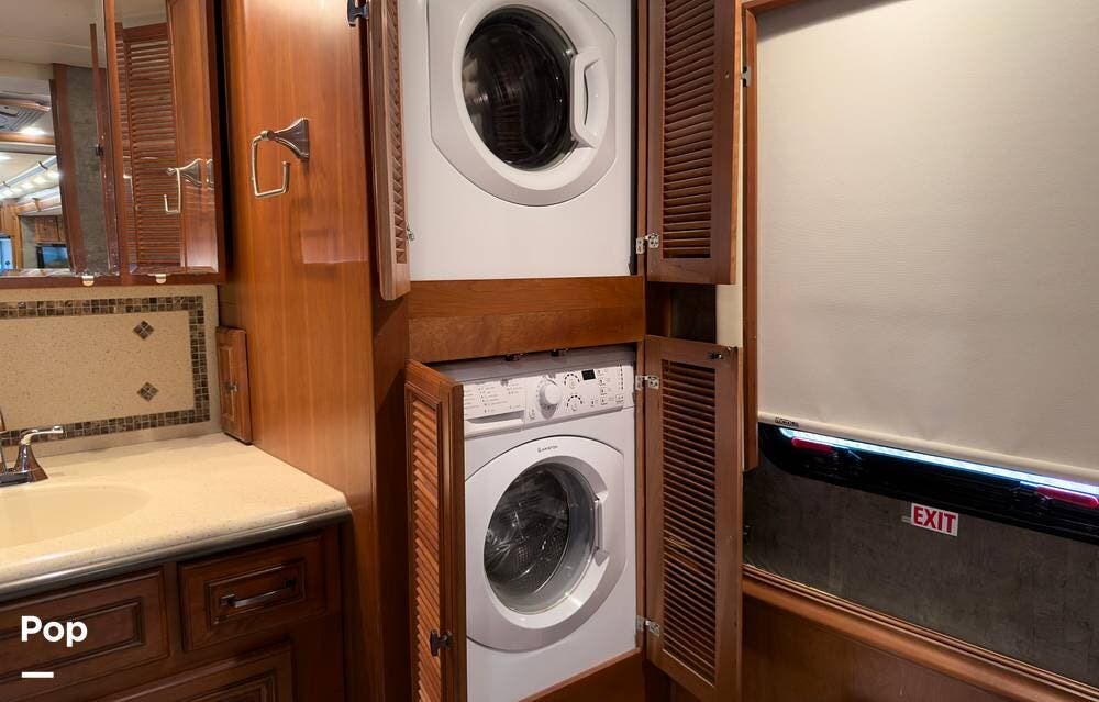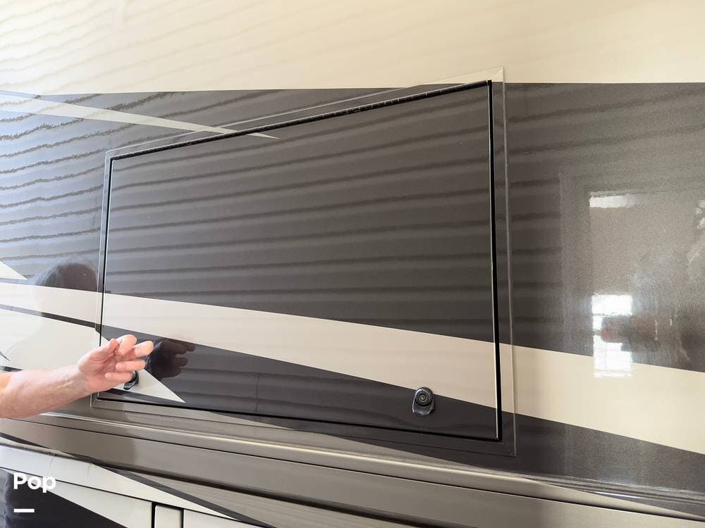 The ride is exceptionally smooth thanks to air suspension, air brakes, a tag axle, and independent front suspension. Inside, you'll find a spacious layout with premium tile flooring, rich hardwood cabinetry, and upscale residential-style furnishings.