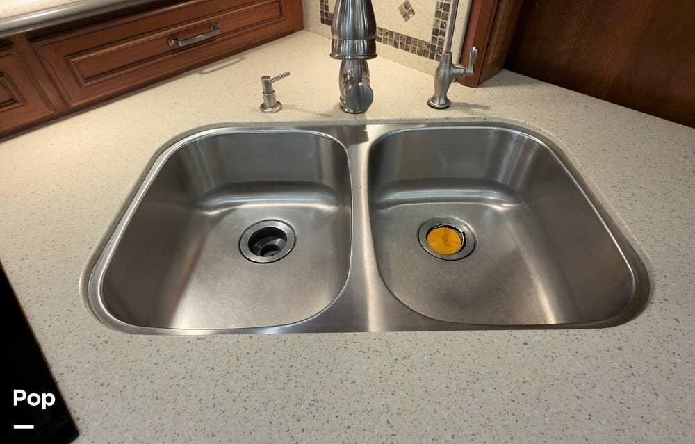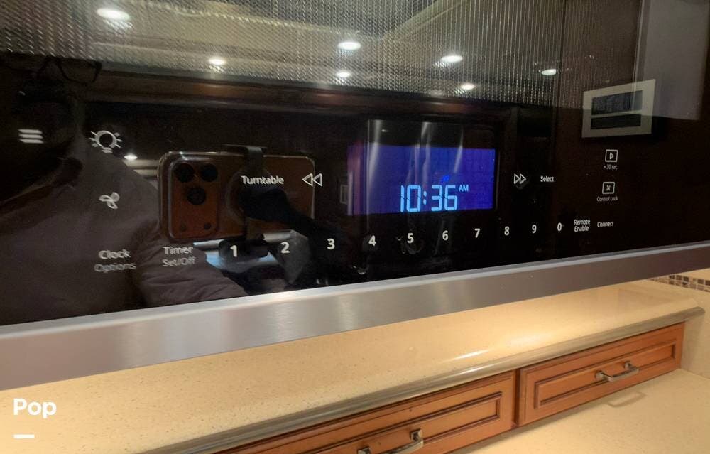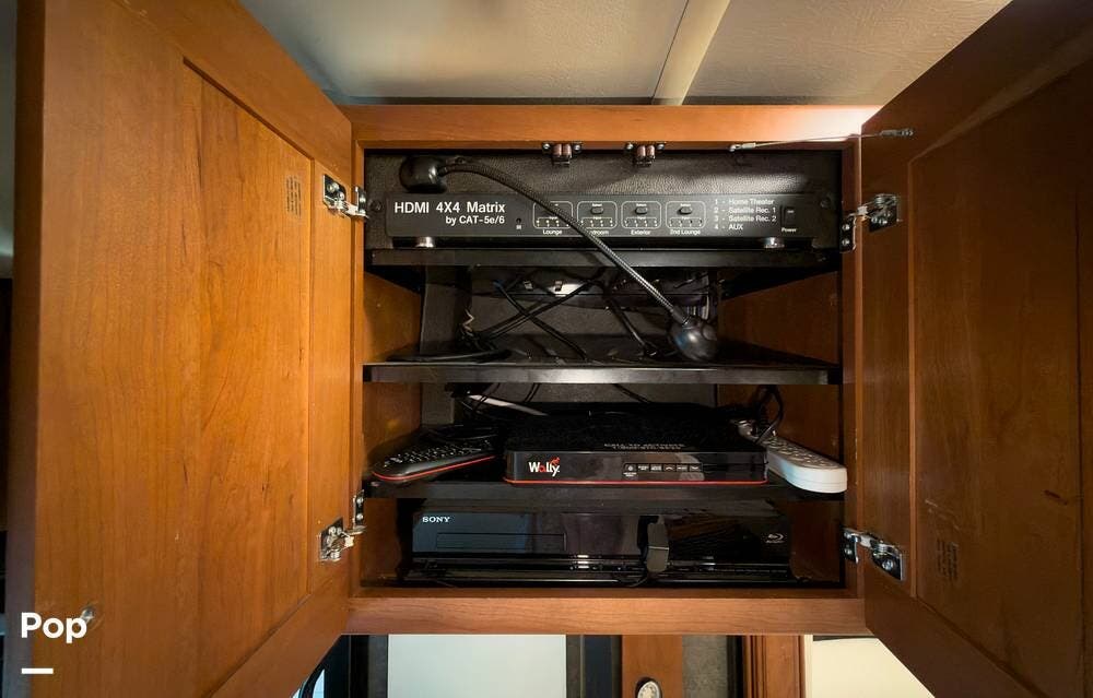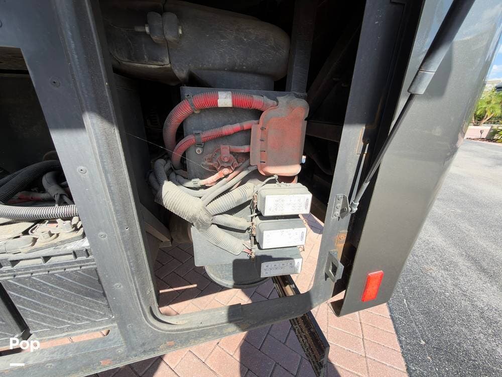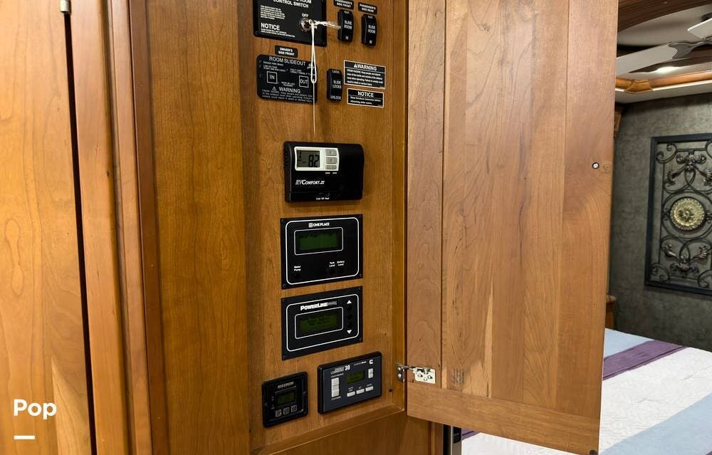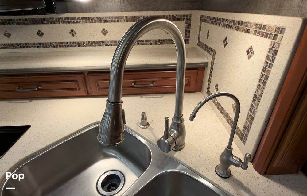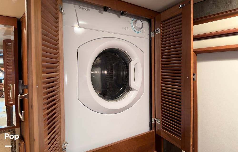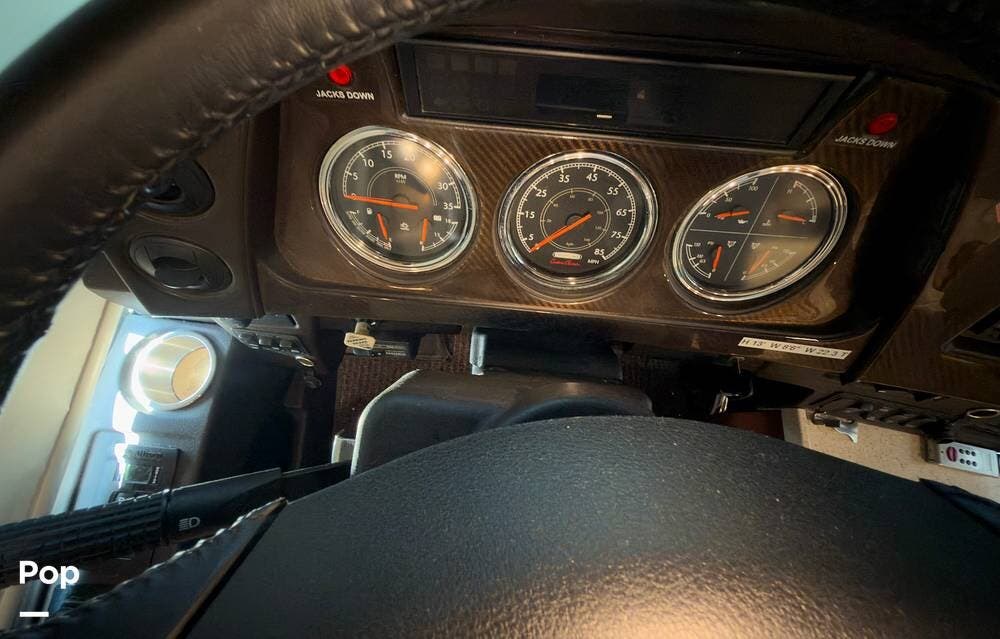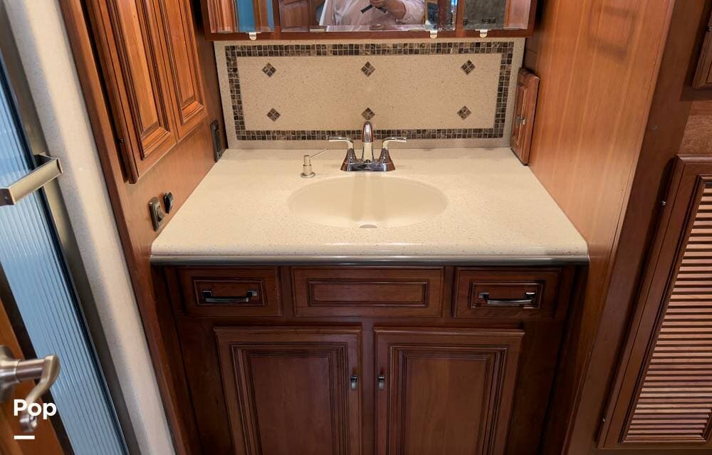 The ride is exceptionally smooth thanks to air suspension, air brakes, a tag axle, and independent front suspension. Inside, you'll find a spacious layout with premium tile flooring, rich hardwood cabinetry, and upscale residential-style furnishings.
