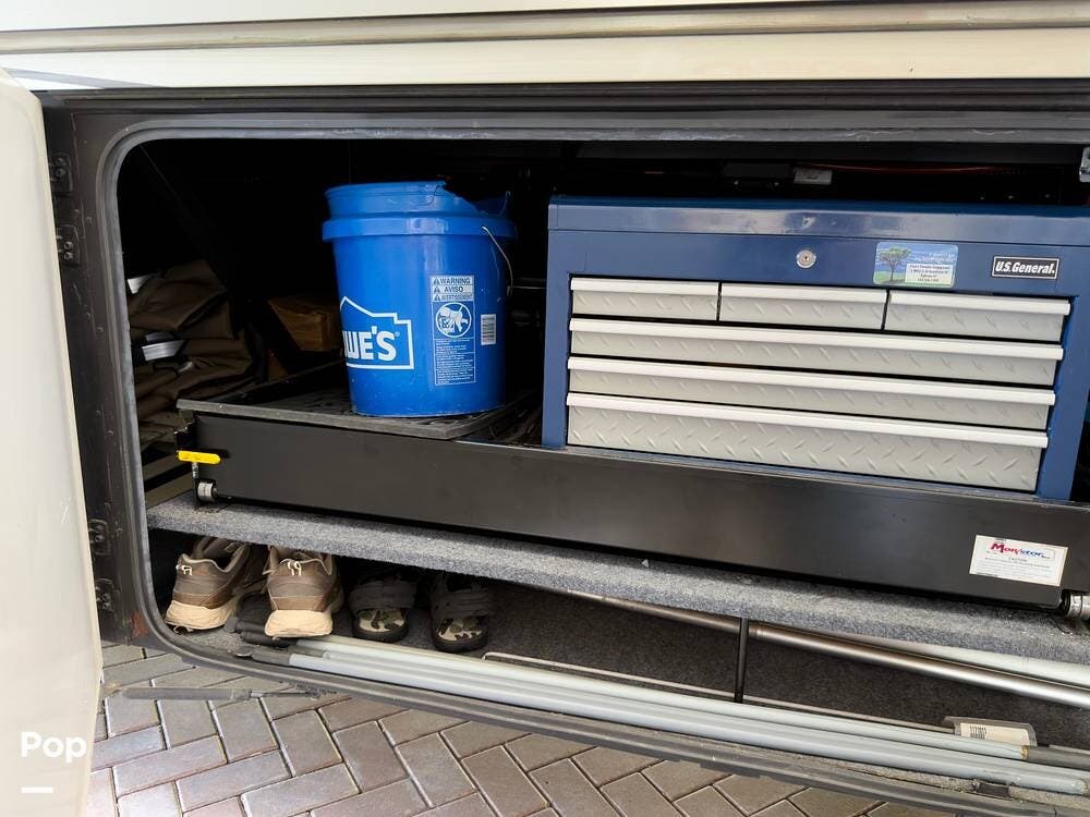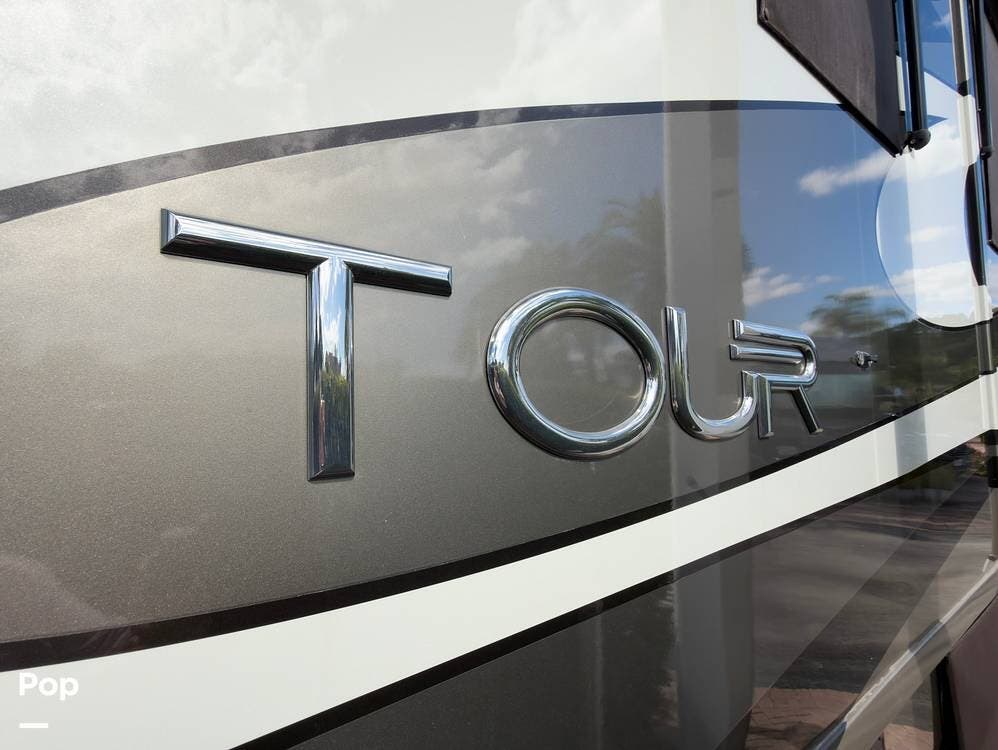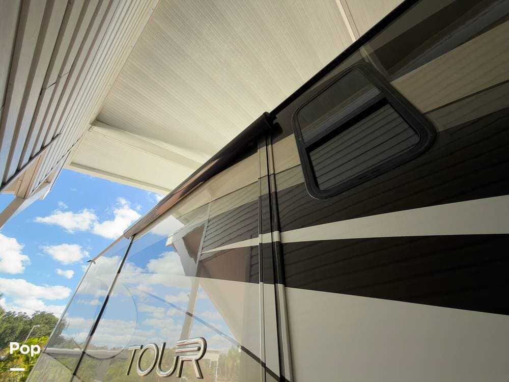 Full-body paint, powered awnings, and massive basement storage with slide-out trays round out the exterior features. For RVers looking for a serious coach with luxury touches and practical upgrades, this Tour 42QD is ready to hit the road.