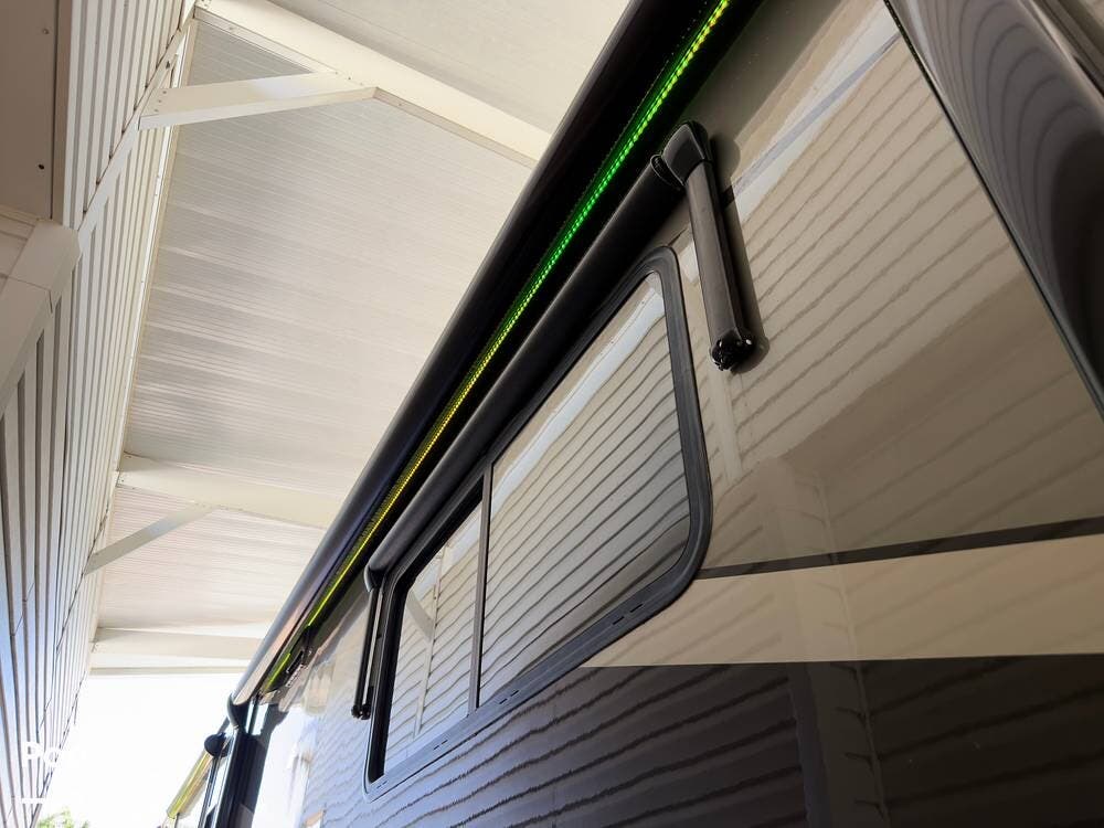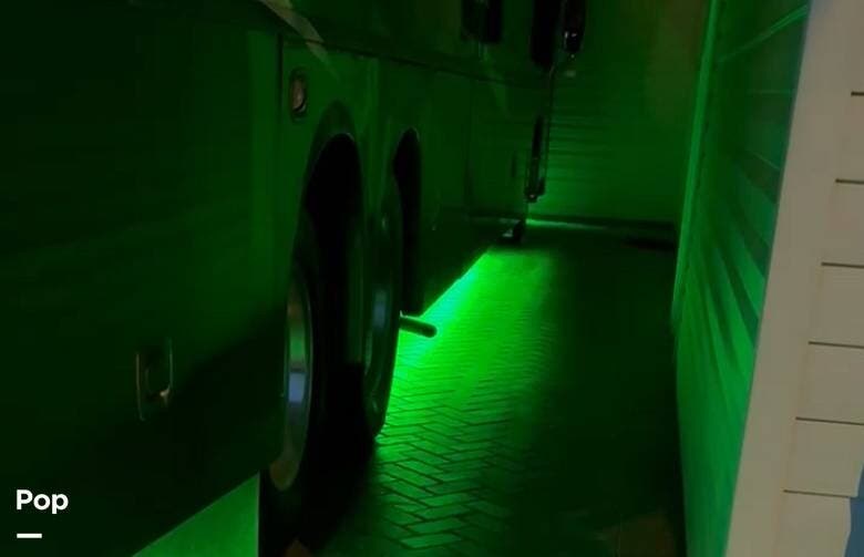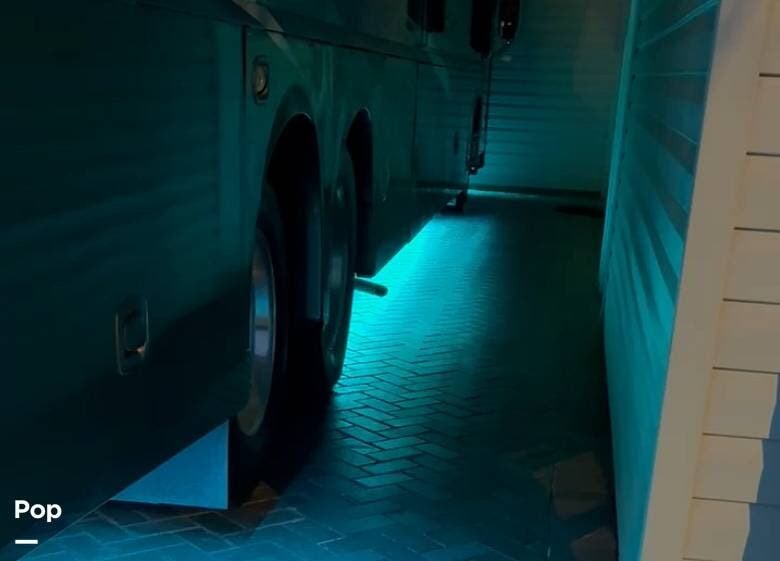 A standout upgrade on this coach is the custom underglow LED lighting system with multiple color options, adding both visual appeal and practical illumination around the exterior. Also included is a Blue Ox tow hitch already set up and ready to go. A tow vehicle that's already rigged for this system is available separately for buyers interested in a complete turn-key setup.