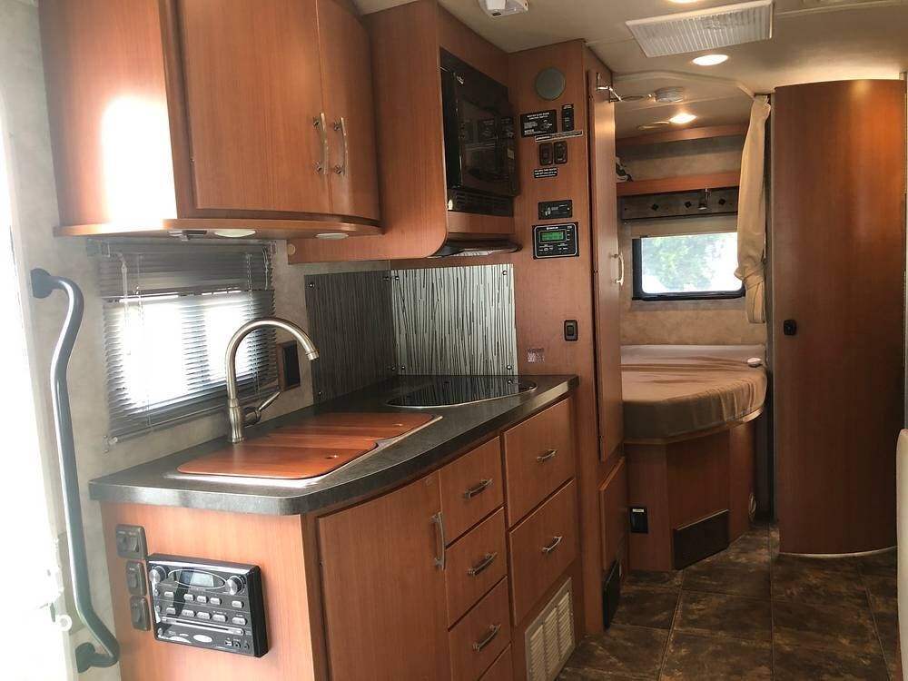 2013 Winnebago View 24J. 24 ft Mercedes Sprinter chassis w/ one slide. Full cab privacy shades. Sleeps 6 with rear bedroom and has a split bathroom.