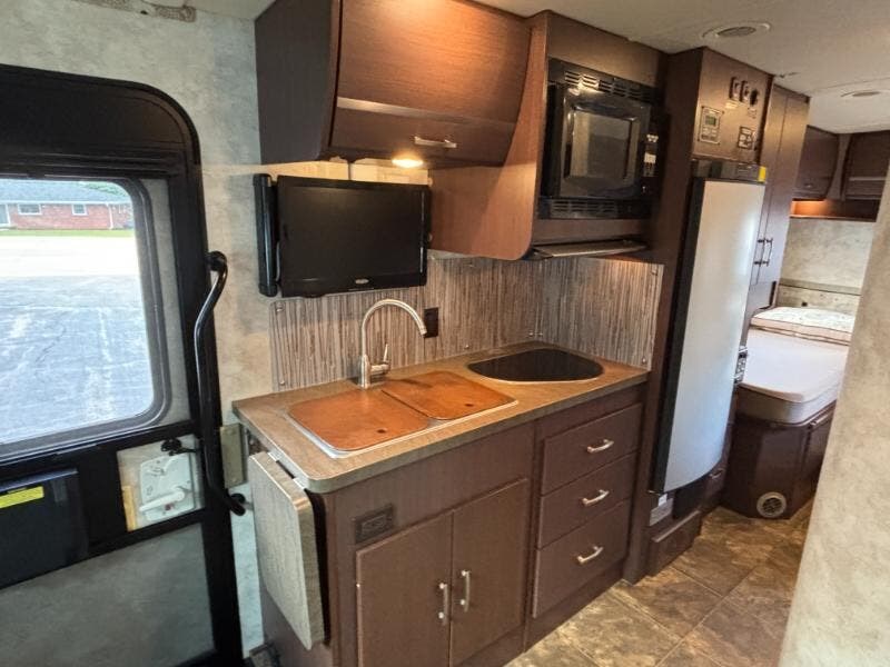 The 2013 Winnebago View Profile 24V is a versatile and well-equipped Class C RV, perfect for those who enjoy the freedom of the open road. Built on the reliable Mercedes-Benz Sprinter chassis, this vehicle combines the durability and performance of a diesel engine with the comfort and convenience of a home on wheels. Exterior features of the Winnebago View Profile include: - Adaptive ESP Technology for enhanced stability and control - 5-speed automatic transmission with Tip Shift for smooth driving - 4-wheel ABS for improved safety - Stainless steel wheel liners for a sleek look - Electric awning with integrated LED lights for easy outdoor relaxation - 30-amp service and a 45-amp converter to power your adventures - Auto entry steps for easy access Inside, the RV is designed with comfort and functionality in mind. The soft vinyl ceiling and tinted windows create a cozy atmosphere, while the skylight with shade allows natural light to fill the space. The interior also features: - Pleated cab blinds for privacy - LED lights for energy-efficient illumination - An entertainment system to keep you entertained on the road - A range with hood and light for cooking meals - Laminate countertops for a modern touch - A 2-door fridge to store your groceries - A privacy curtain for added seclusion - A surround shower with a bath skylight for a refreshing experience The 2013 Winnebago View Profile 24V is an excellent choice for those seeking a reliable and comfortable RV experience. With its thoughtful design and array of features, it offers everything you need for memorable road trips and adventures. ??