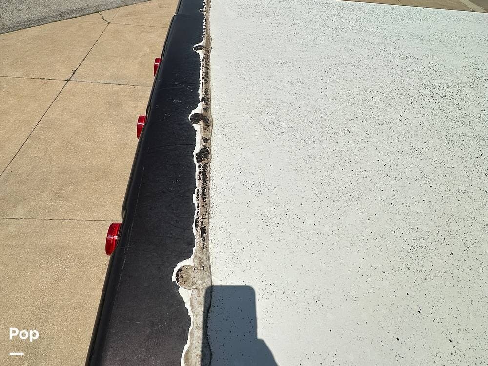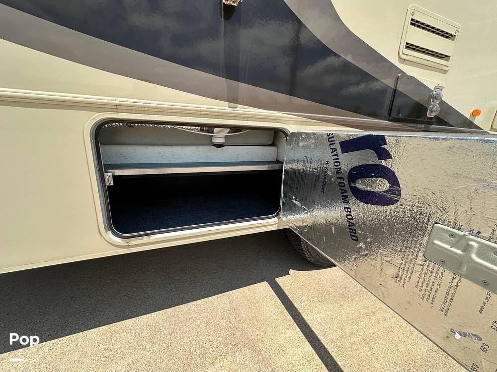 Owners rave about its livability and build quality, citing the padded ceiling, fiberglass roof, wood‑finished cabinets, and even outdoor entertainment systems.