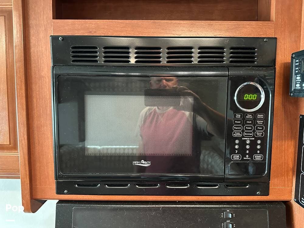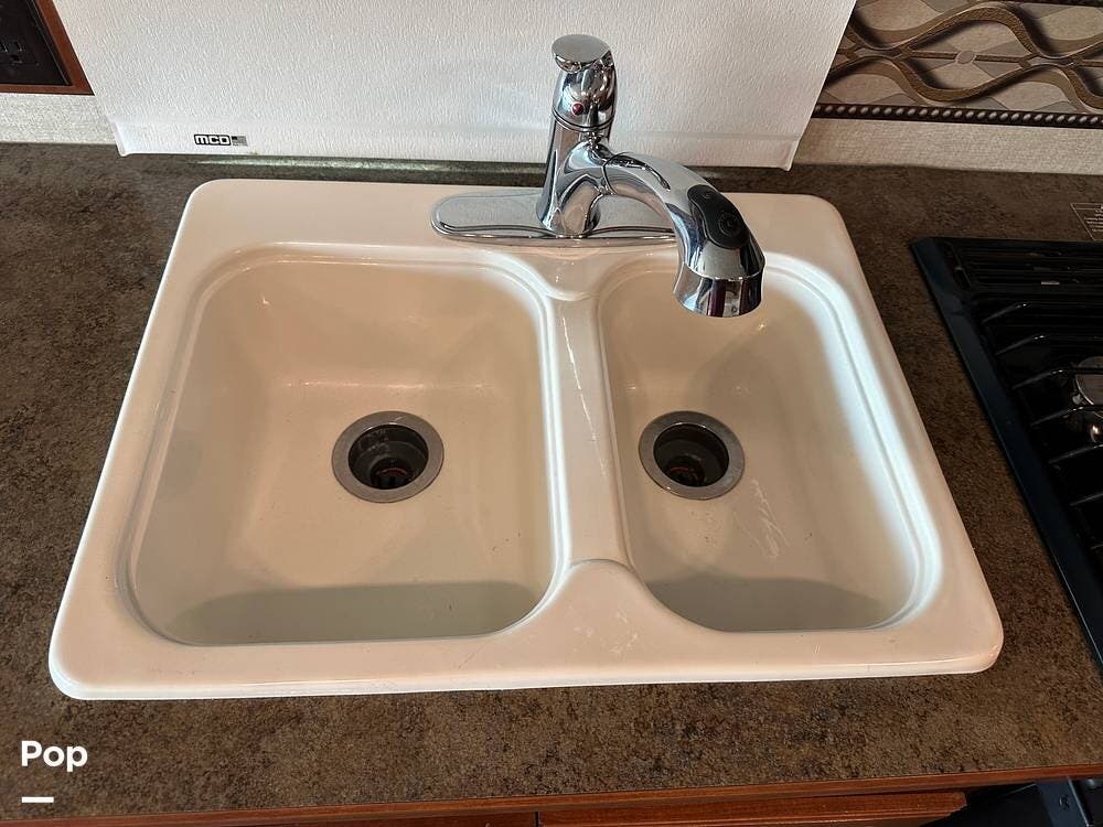 Slide open the driver‑side wall and discover a living area that truly lives. With a rich taupe fiberglass exterior, stainless steel wheel covers, and well‑designed graphics, this coach turns heads--even at rest . Inside, you'll find a full kitchen equipped with a real double sink, refrigerator, microwave, and stove, making it easy to whip up family meals on the road.