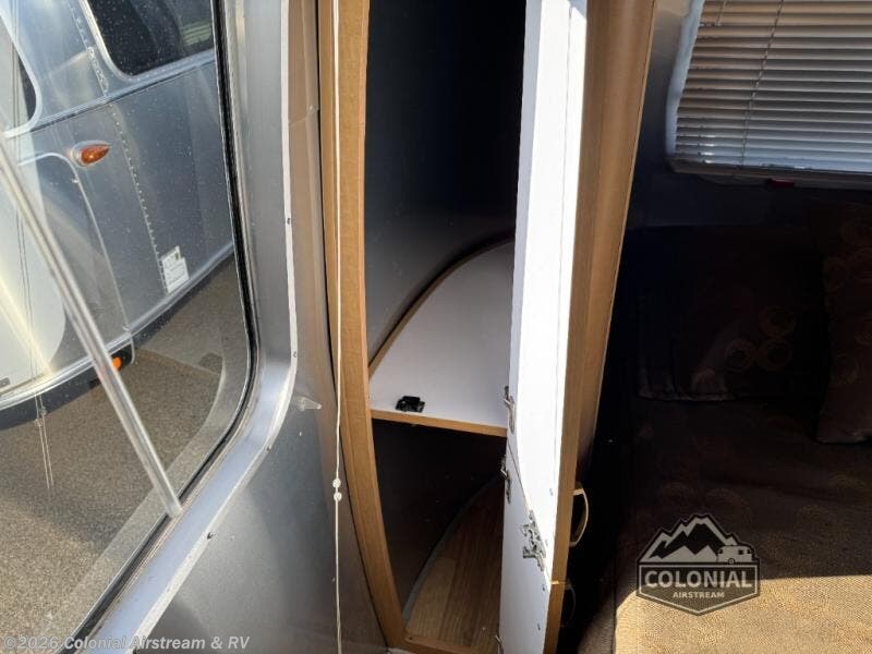 S.P. Solar Gray Front Panoramic Windows • Opaque Entry Door Window • Keyed Deadbolt at Entry Door • Refrigerator Vent Door(s) • Upper & Lower Screen Door Guards. INTERIOR DECOR Brushed Aluminum Mini Blinds on All Windows Except Drapes on Front Panoramic Windows • Bright Aluminum Finish Interior Skin • Wood/Steel Drawer Boxes • Overhead Rooflocker With Radius Doors • Entrance Mat w/Airstream Logo • Laminate Furniture & Countertops • Interior Grab Handle • Seamless Vinyl Flooring Throughout • Satin Finish Hardware • 5 Hook Key Holder • LED Ceiling Lights • Magazine Rack (N/A 27').