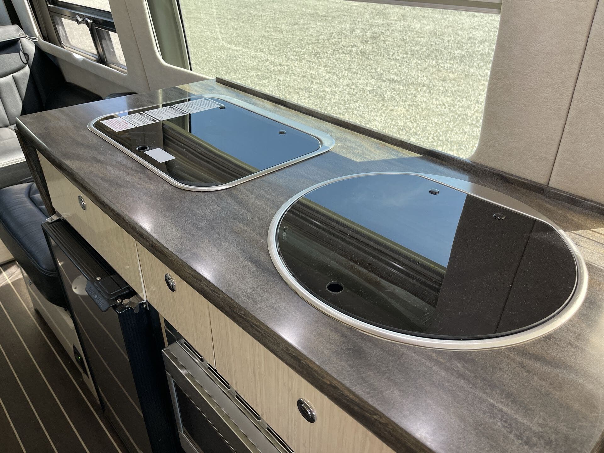 Inside, the Interstate 170WB features Airstream’s signature craftsmanship with high-end finishes, modern styling, and smart use of space. The versatile lounge area easily converts into a comfortable sleeping space, while the well-equipped galley kitchen and compact bathroom provide the convenience needed for life on the road. Thoughtful storage solutions and premium materials throughout create a refined, functional living environment.