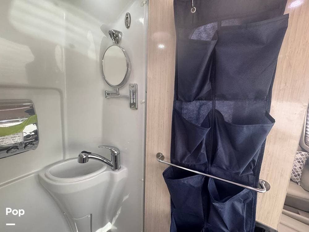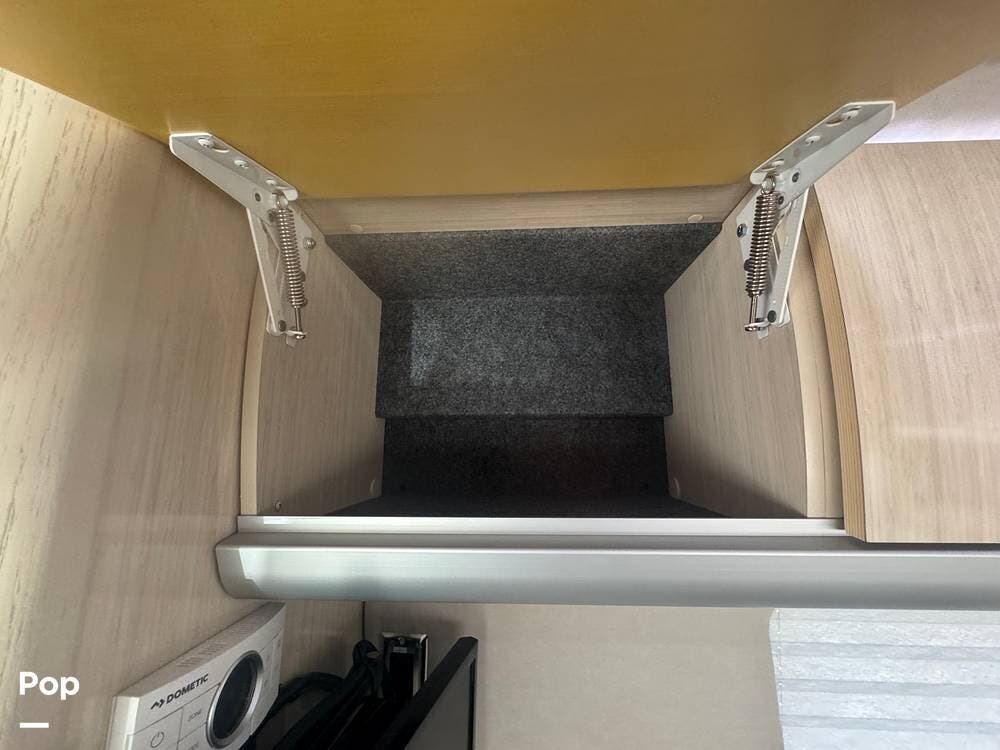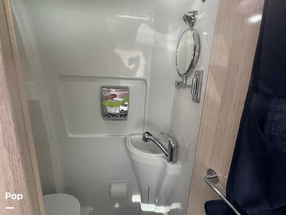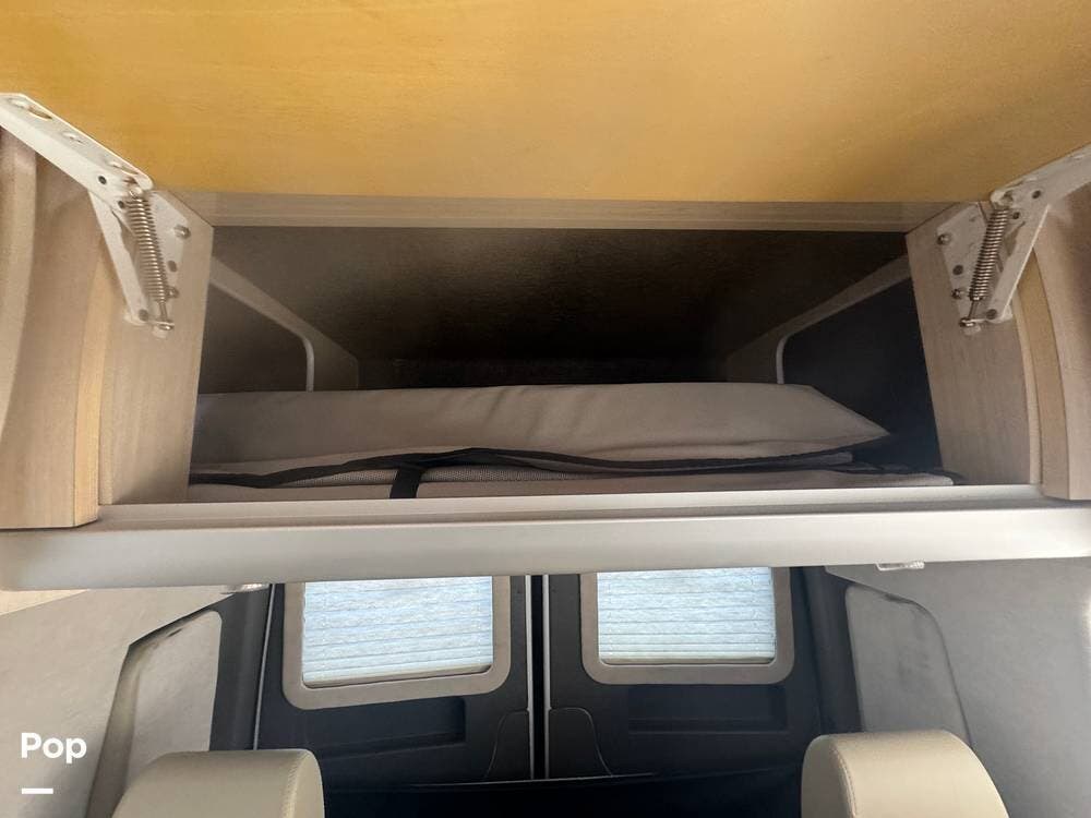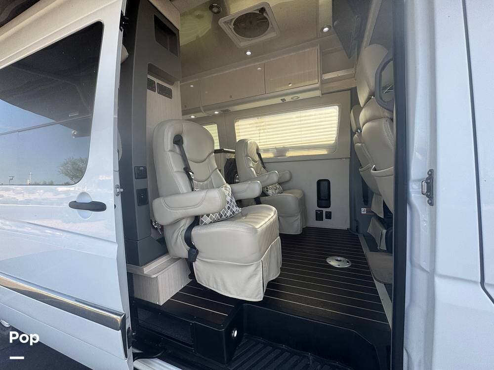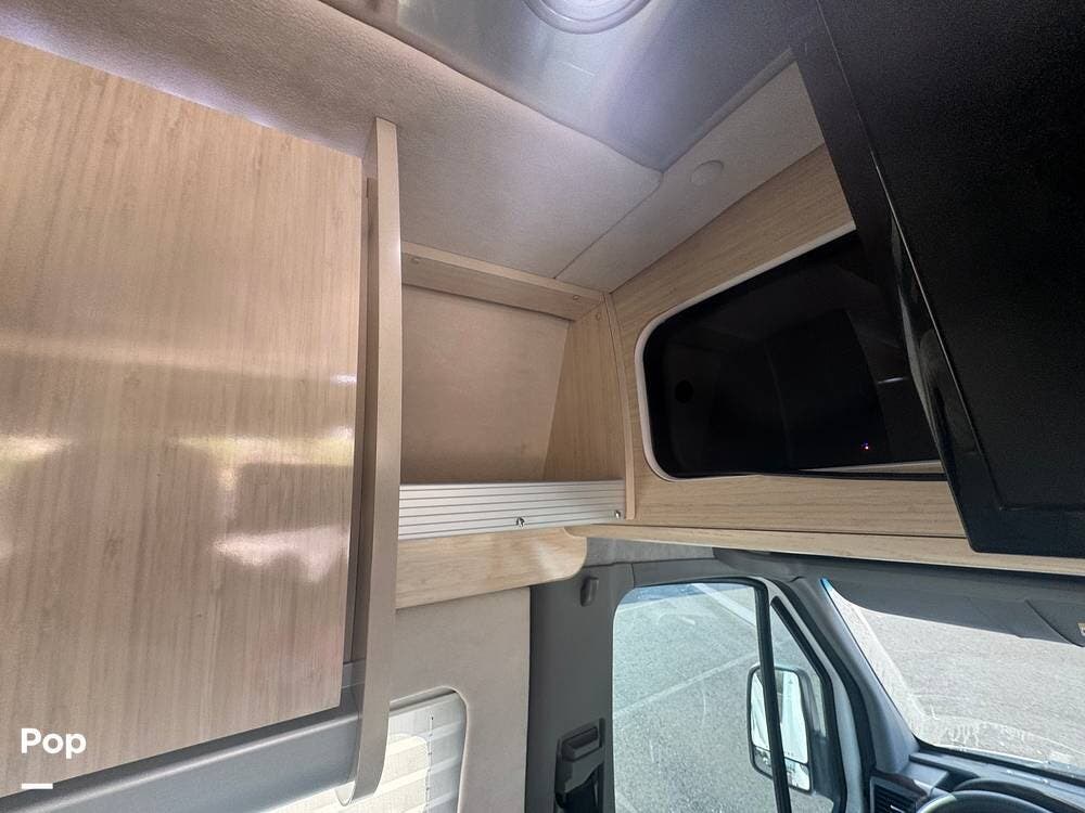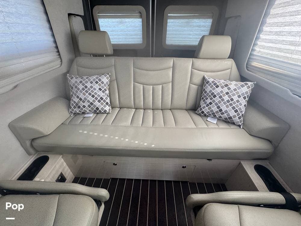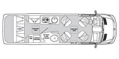 This coach also boasts a wet bath with a shower, toilet, and vanity. Ample overhead and under-cabinet storage keep everything organized for extended trips or full-time van life.