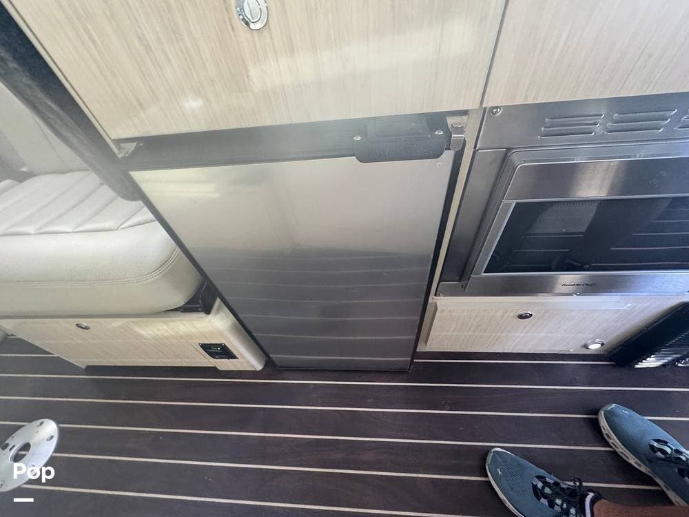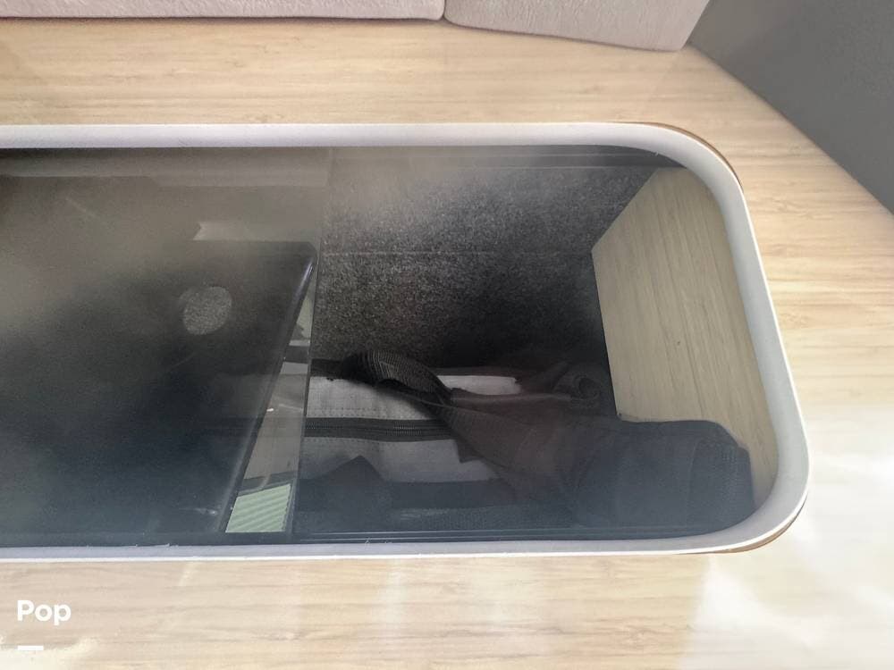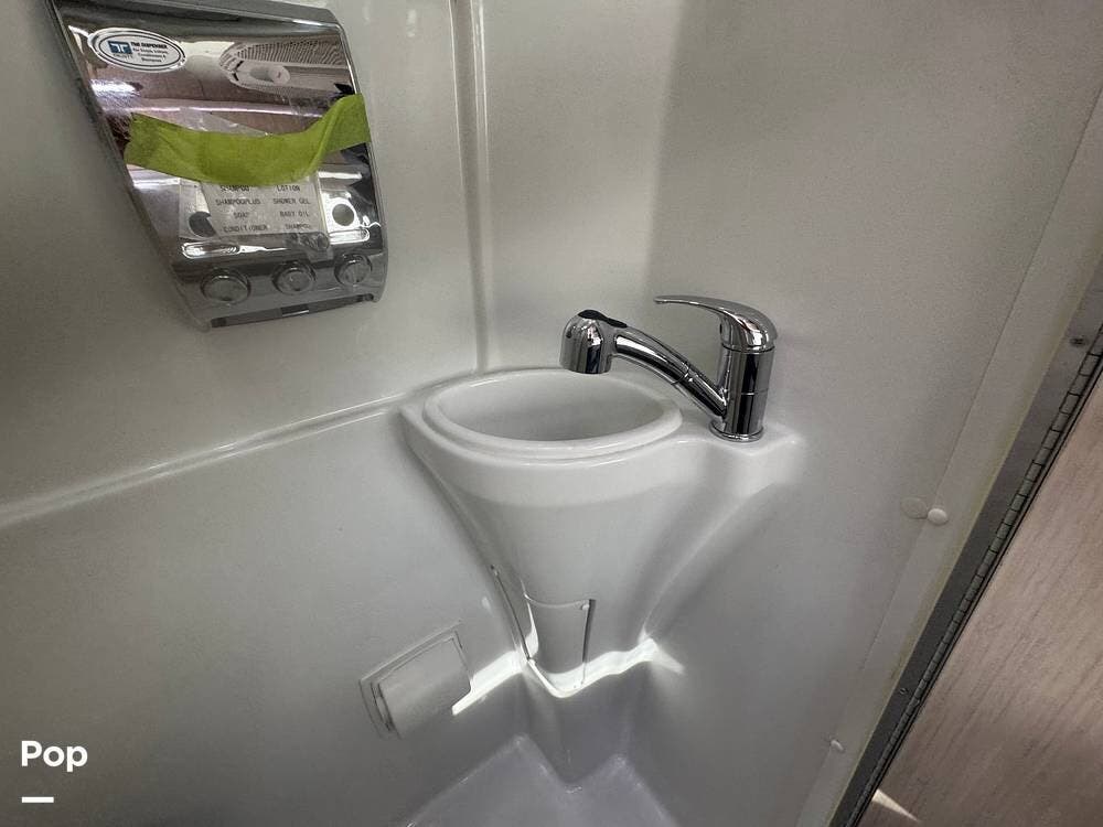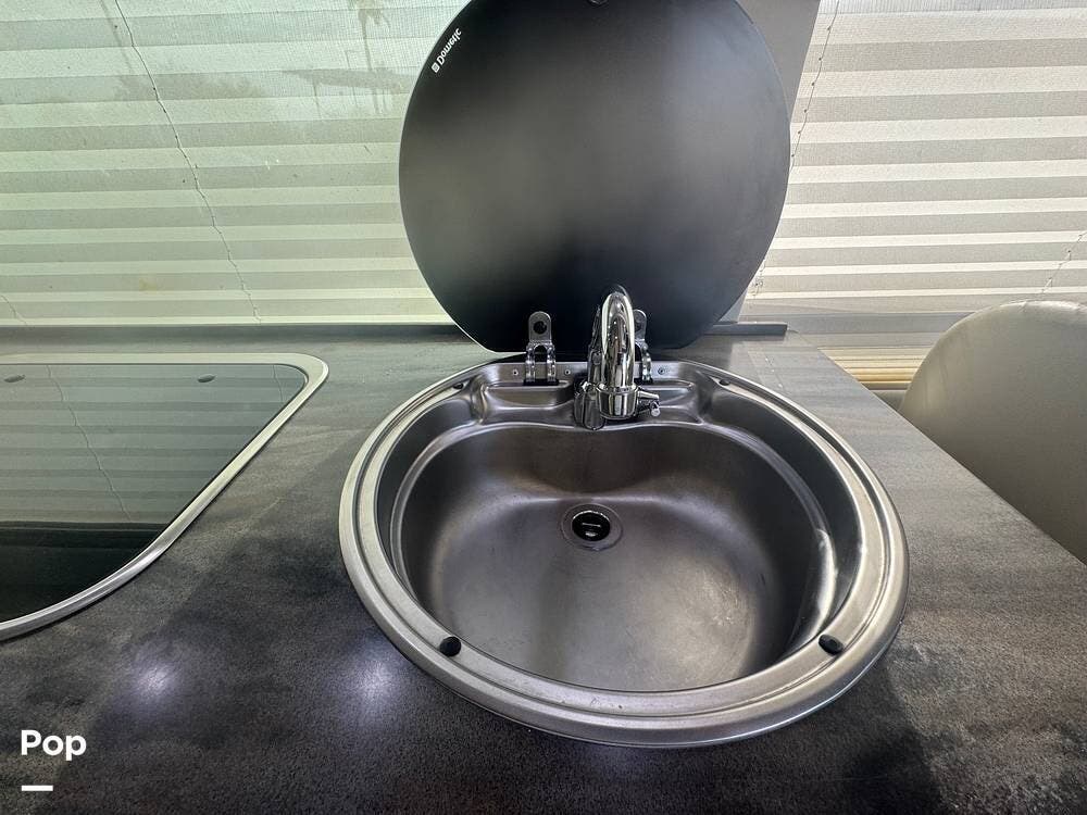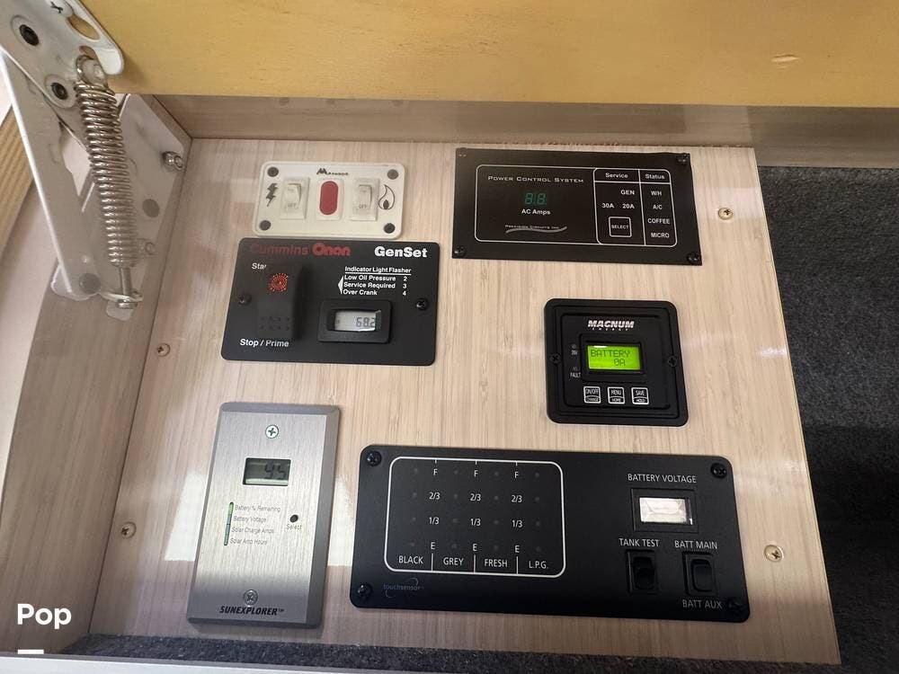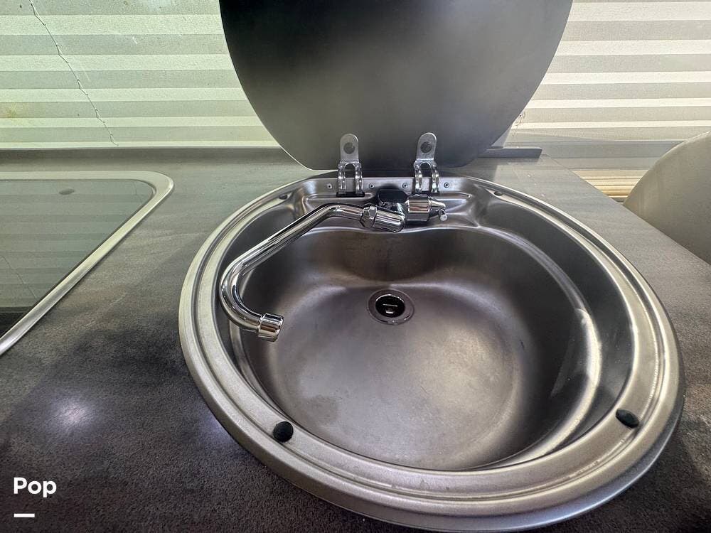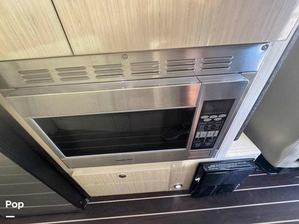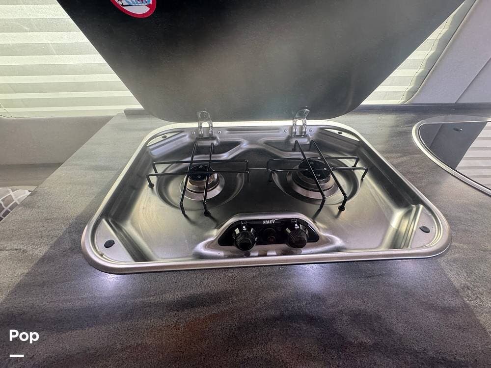 The power sofa converts into a plush sleeping area, while the well-equipped galley includes a two-burner cooktop, convection microwave, deep sink, and a spacious refrigerator/freezer combo--perfect for gourmet meals on the go.