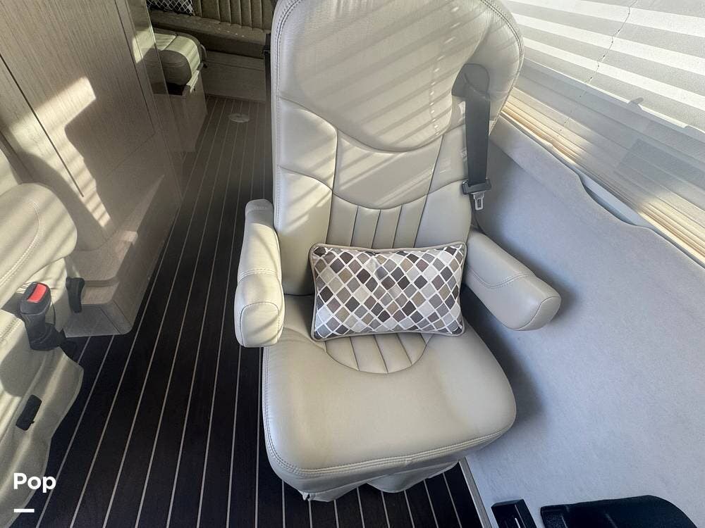 Step inside and experience a spacious, thoughtfully designed interior tailored for extended travel. The layout maximizes living and storage space, featuring upscale finishes such as rich Ultraleather seating, high-gloss cabinetry, solid-surface countertops, and LED lighting throughout.