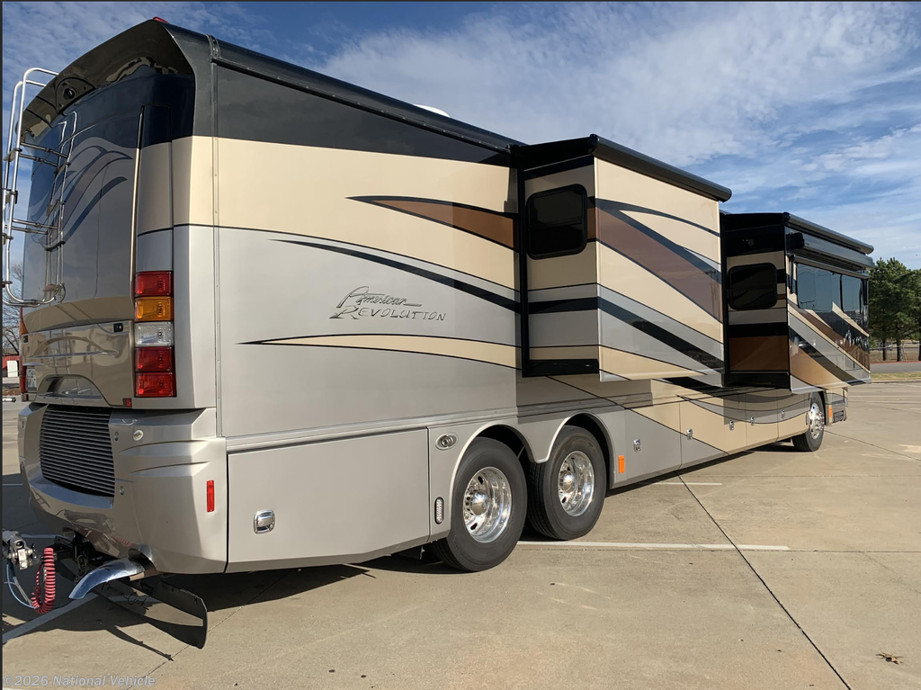 2014 American Coach American Revolution 42T 42' 11" Class A Motorhome. Cummins 8.9L 450HP Turbo Diesel Engine. 3 Slide Outs, Awning, Sleeps 6, 3 A/C Units.