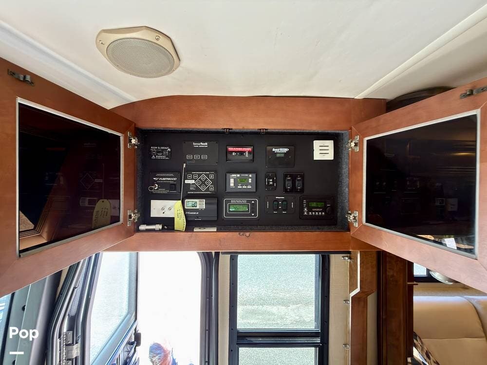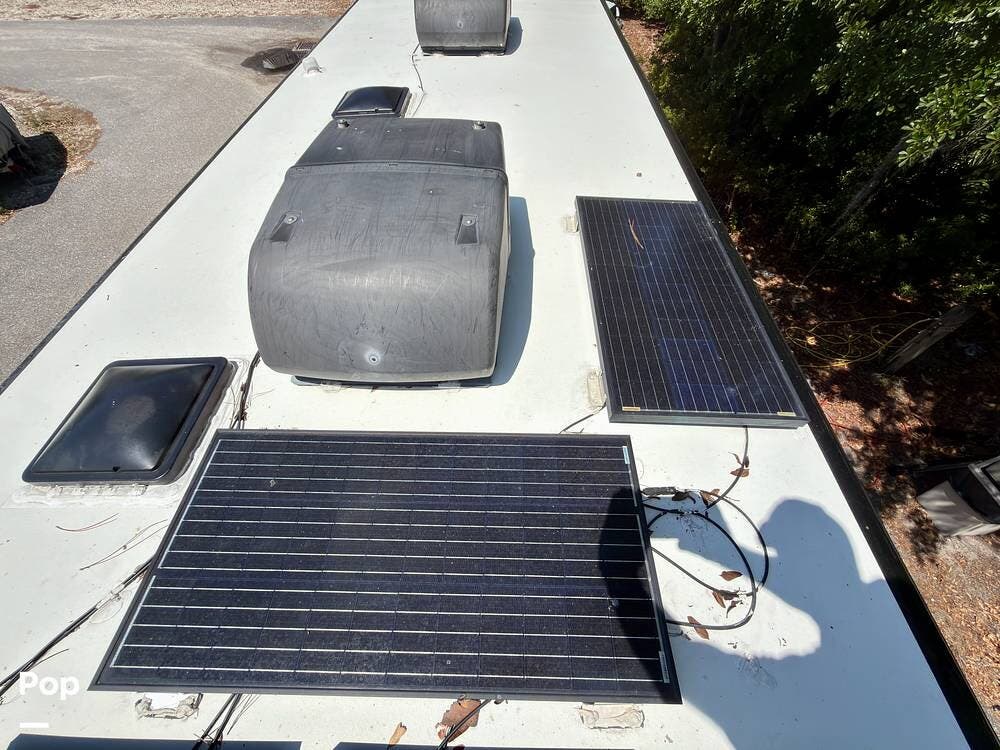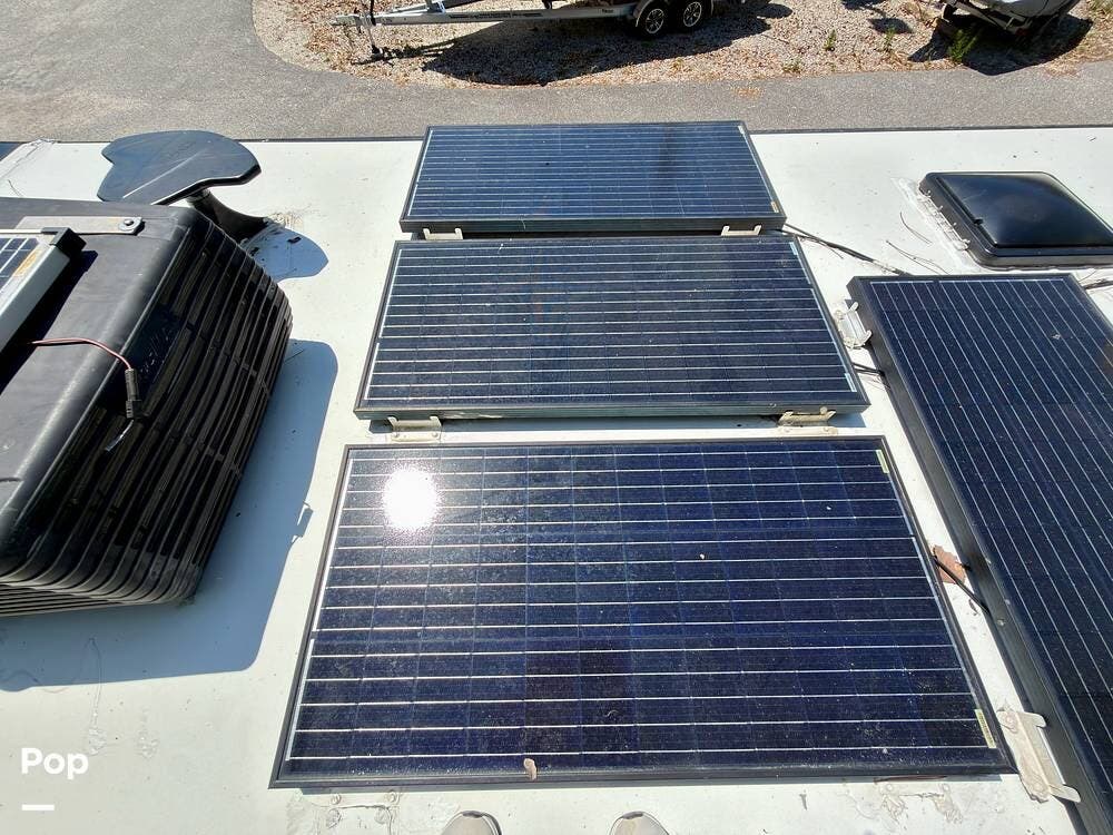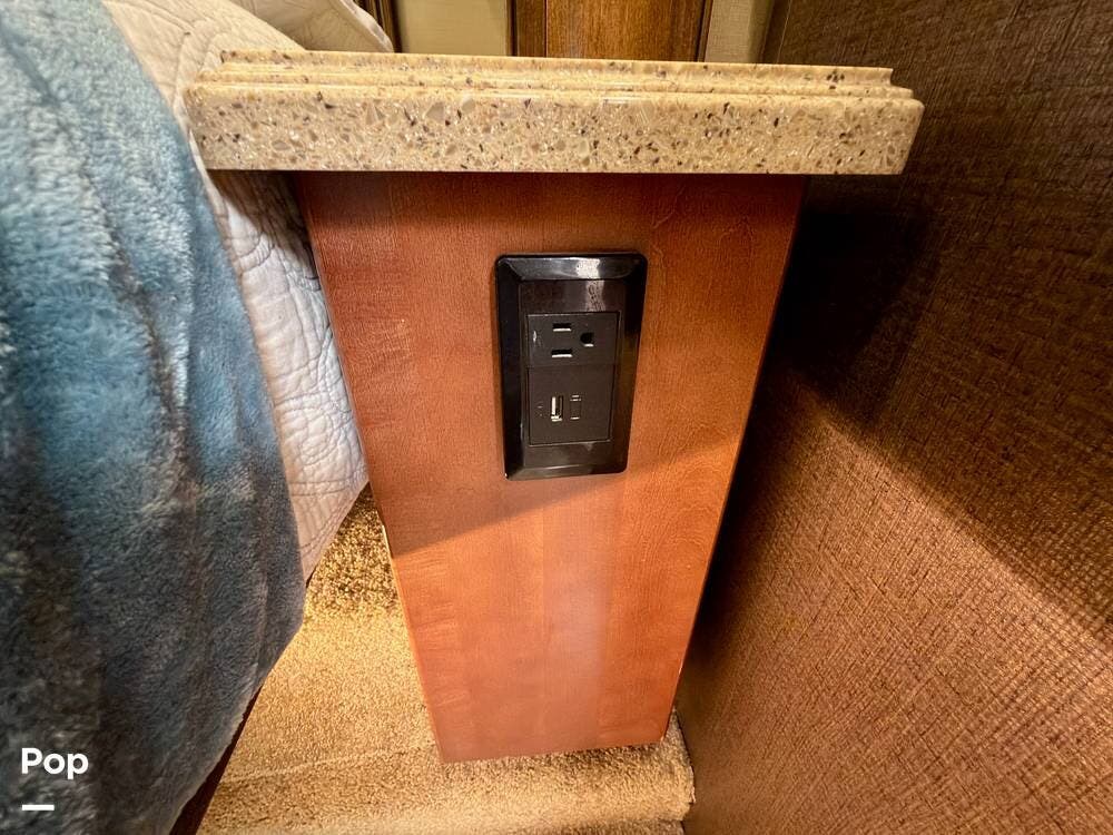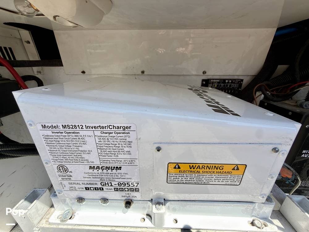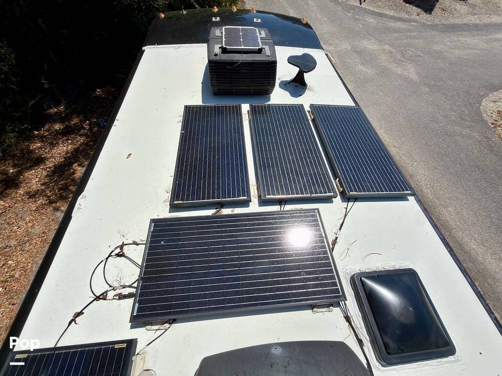 One of the standout aspects of this coach is the upgraded all-electric power system. It is equipped with a solar array, lithium (LiFePO4) battery bank, and a Magnum inverter/charger replaced in 2024, along with a Surge Guard automatic transfer switch for added protection. This setup provides strong off-grid capability and modern energy efficiency. A WeBoost cell signal booster system is also installed and fully functional, improving connectivity while traveling or working remotely.