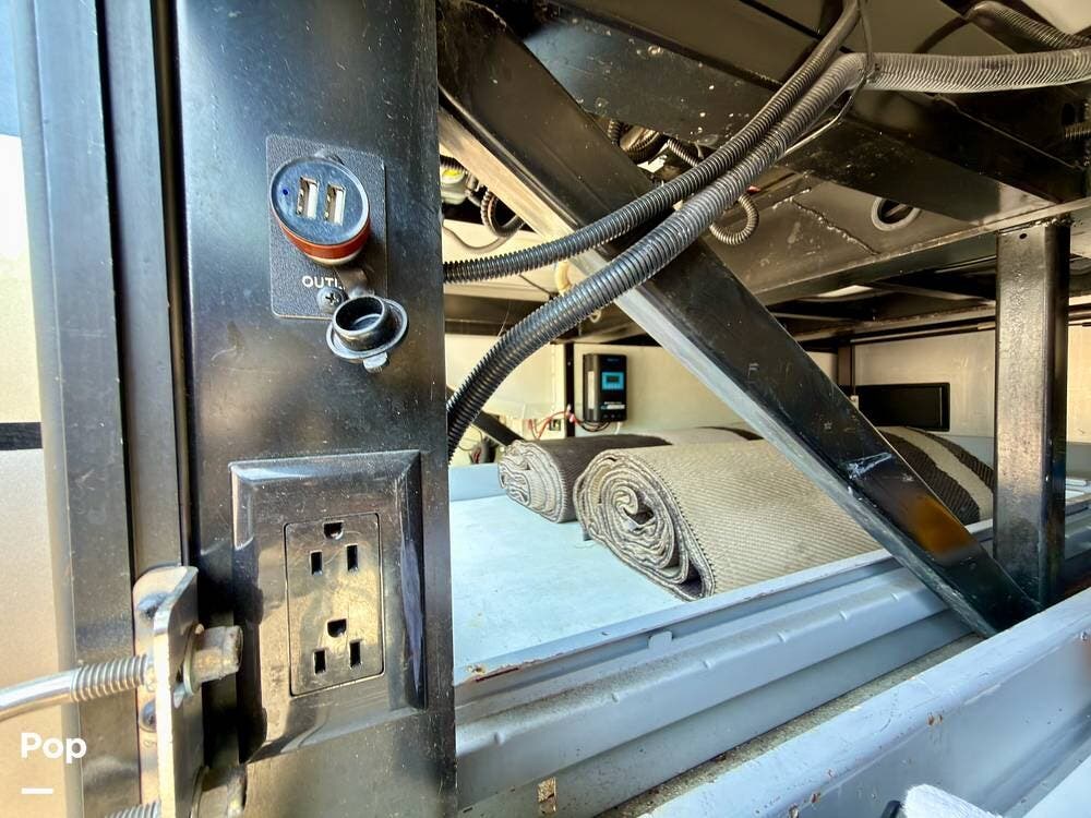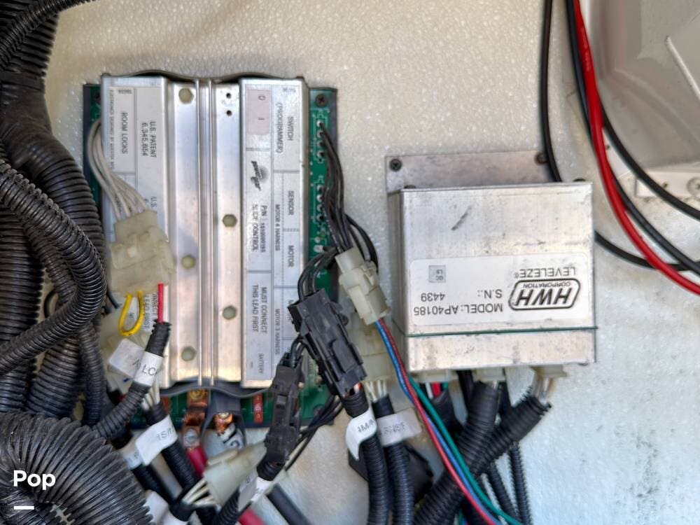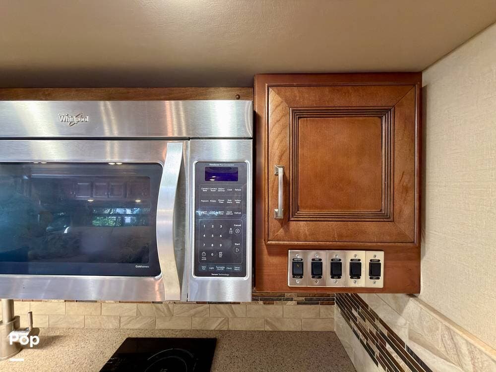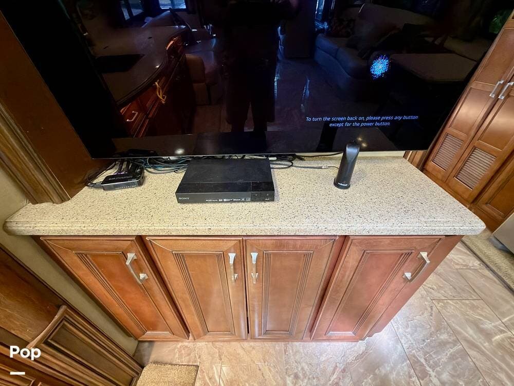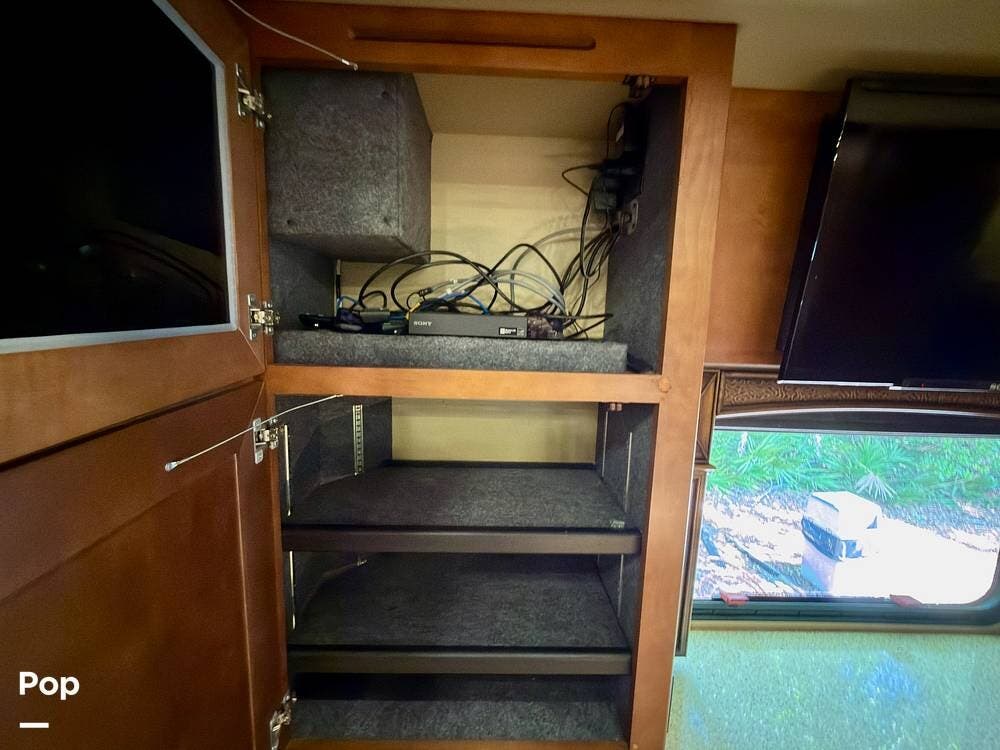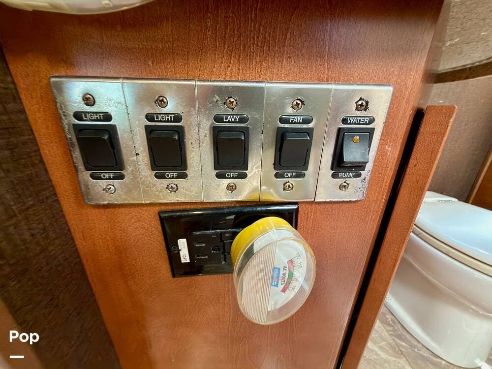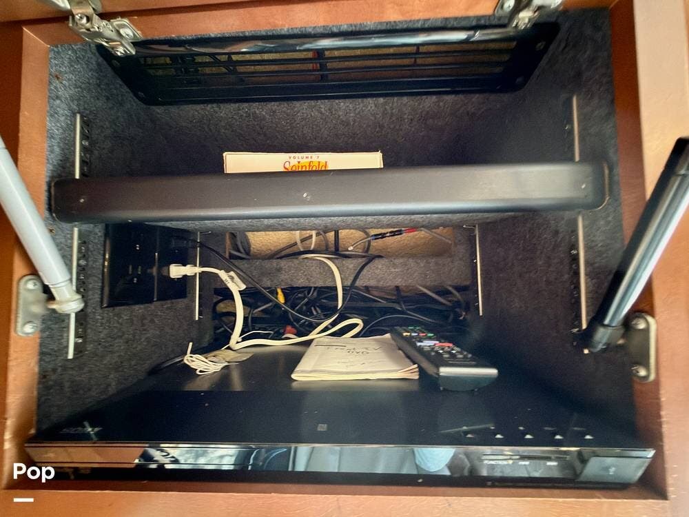 One of the standout aspects of this coach is the upgraded all-electric power system. It is equipped with a solar array, lithium (LiFePO4) battery bank, and a Magnum inverter/charger replaced in 2024, along with a Surge Guard automatic transfer switch for added protection. This setup provides strong off-grid capability and modern energy efficiency. A WeBoost cell signal booster system is also installed and fully functional, improving connectivity while traveling or working remotely.
