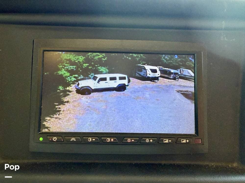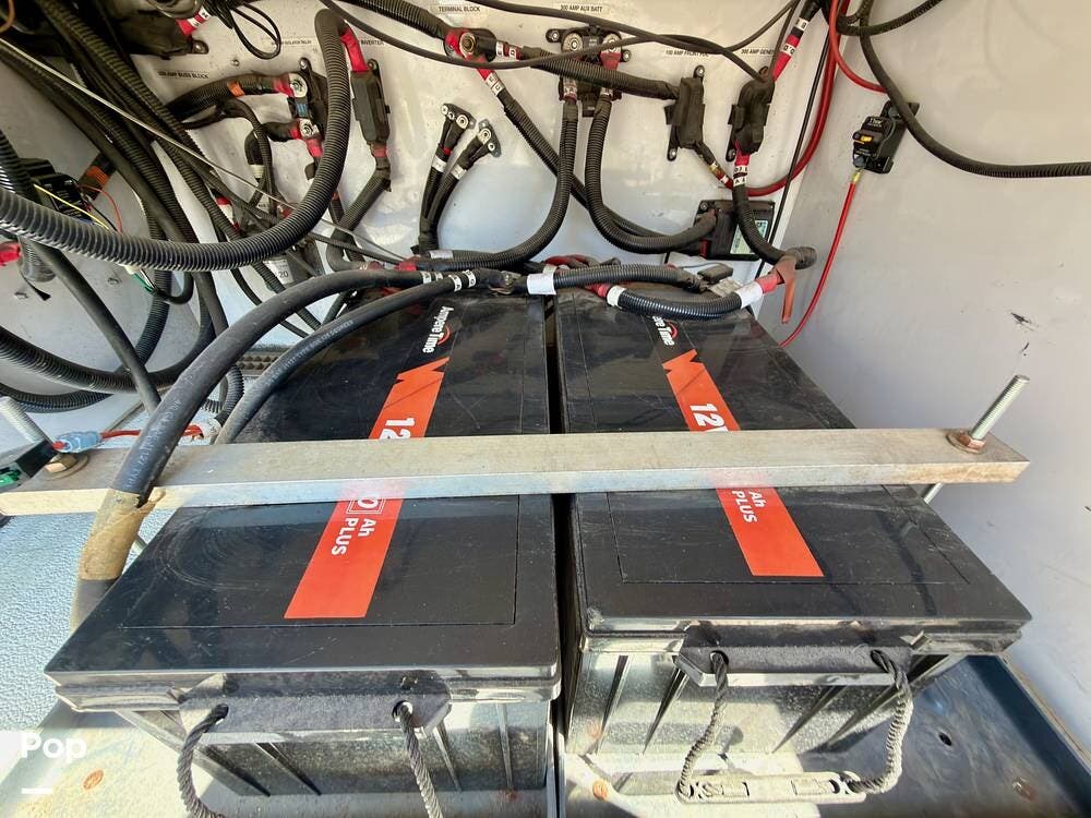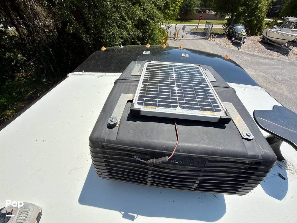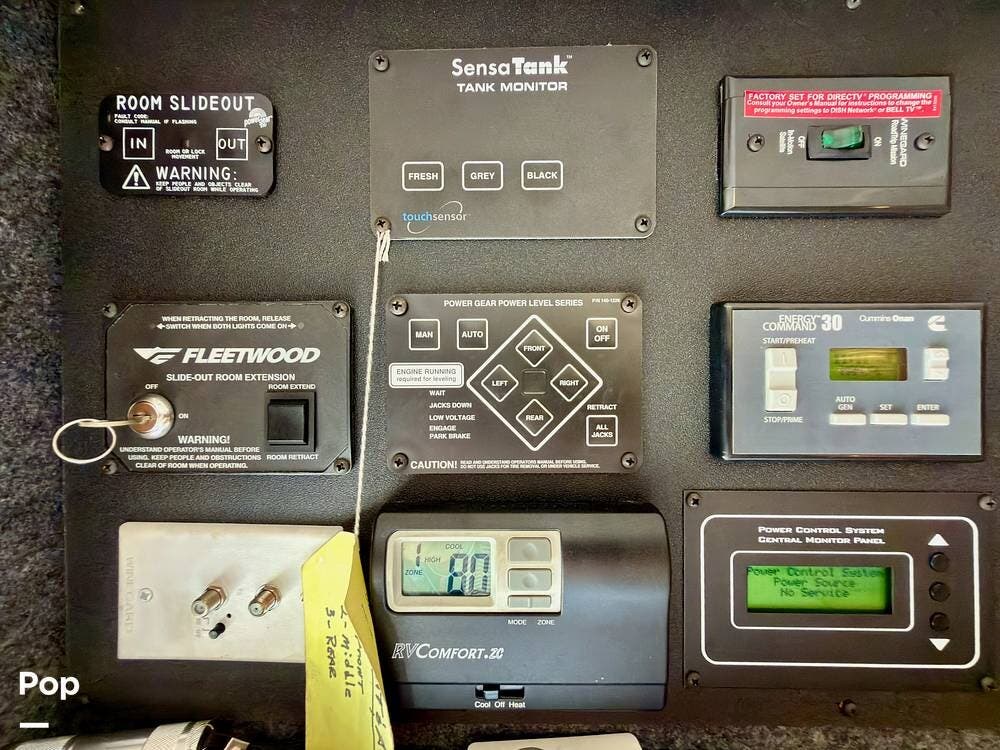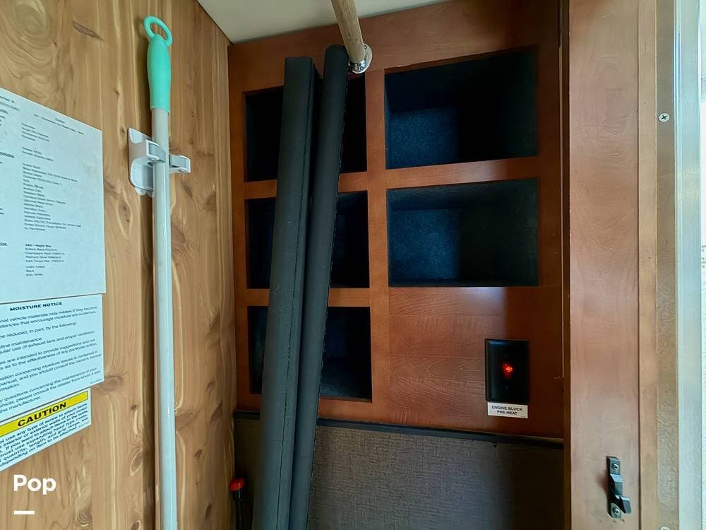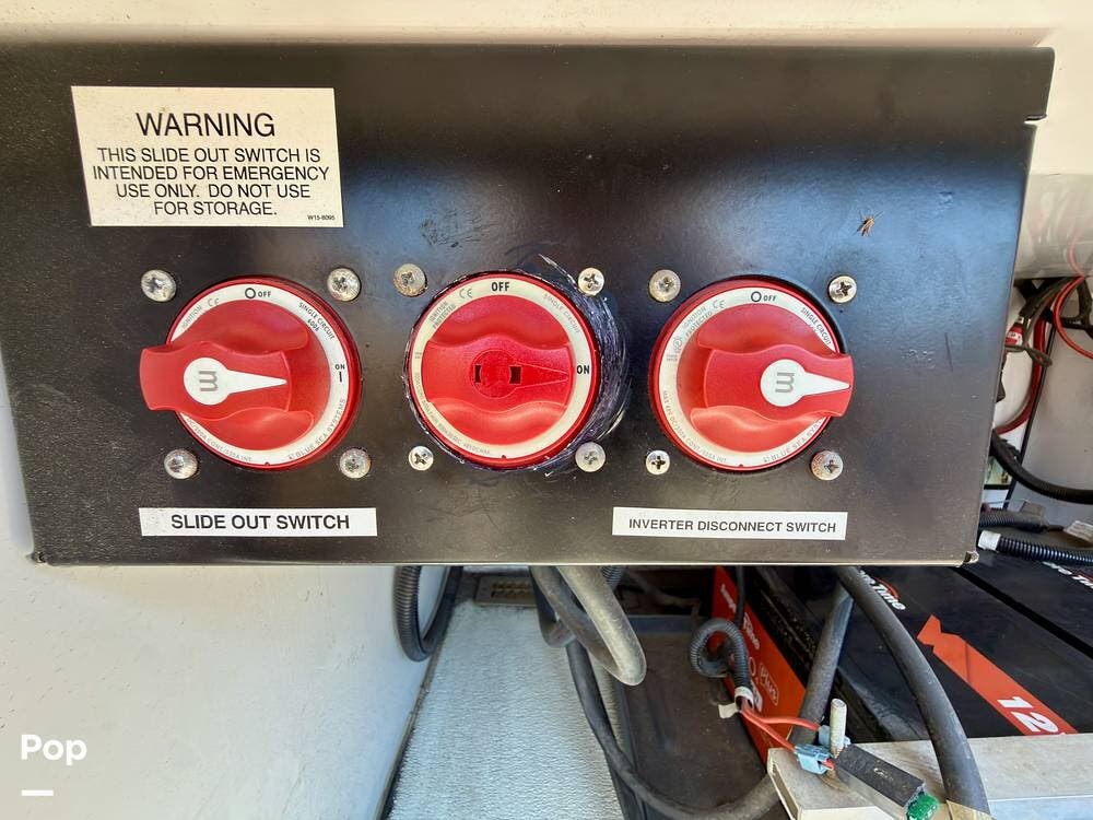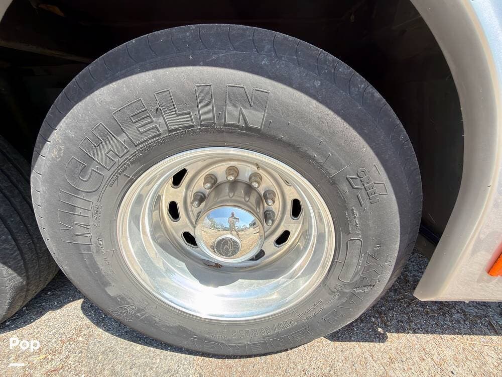 One of the standout aspects of this coach is the upgraded all-electric power system. It is equipped with a solar array, lithium (LiFePO4) battery bank, and a Magnum inverter/charger replaced in 2024, along with a Surge Guard automatic transfer switch for added protection. This setup provides strong off-grid capability and modern energy efficiency. A WeBoost cell signal booster system is also installed and fully functional, improving connectivity while traveling or working remotely.