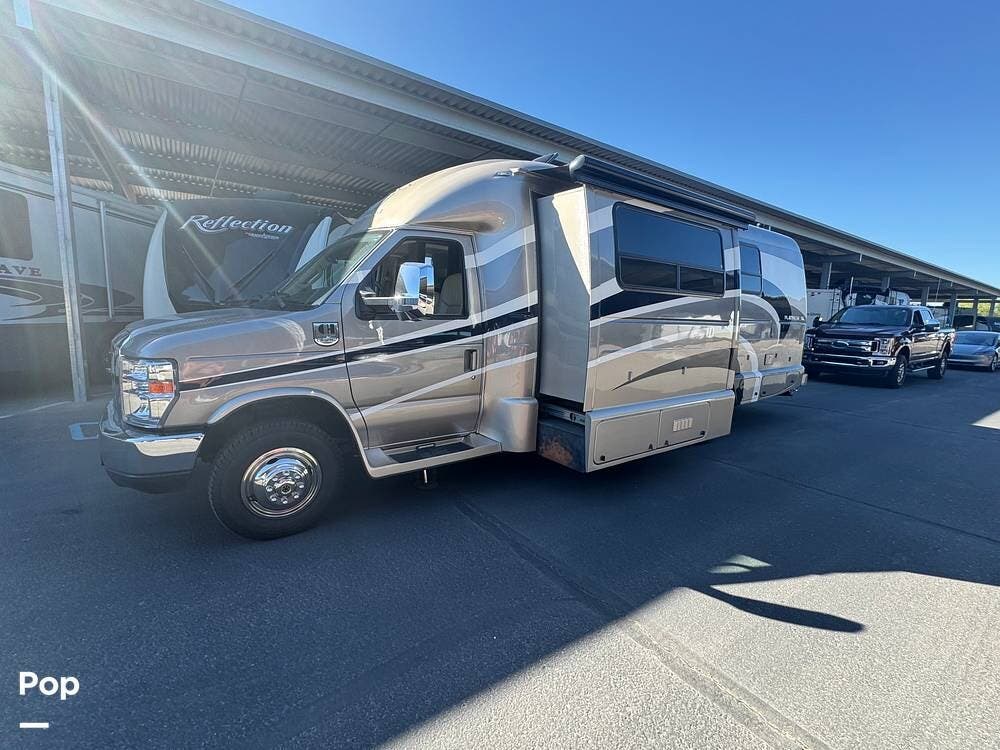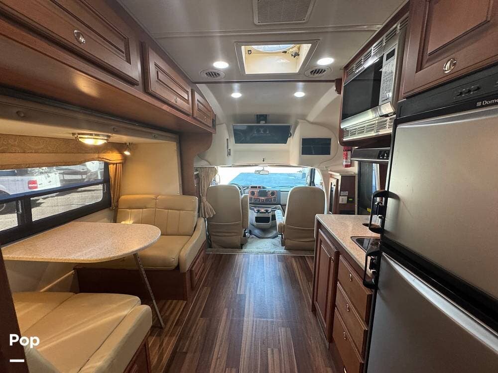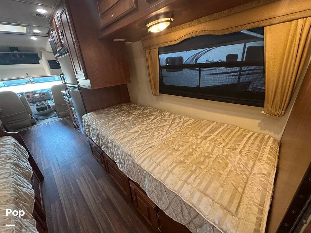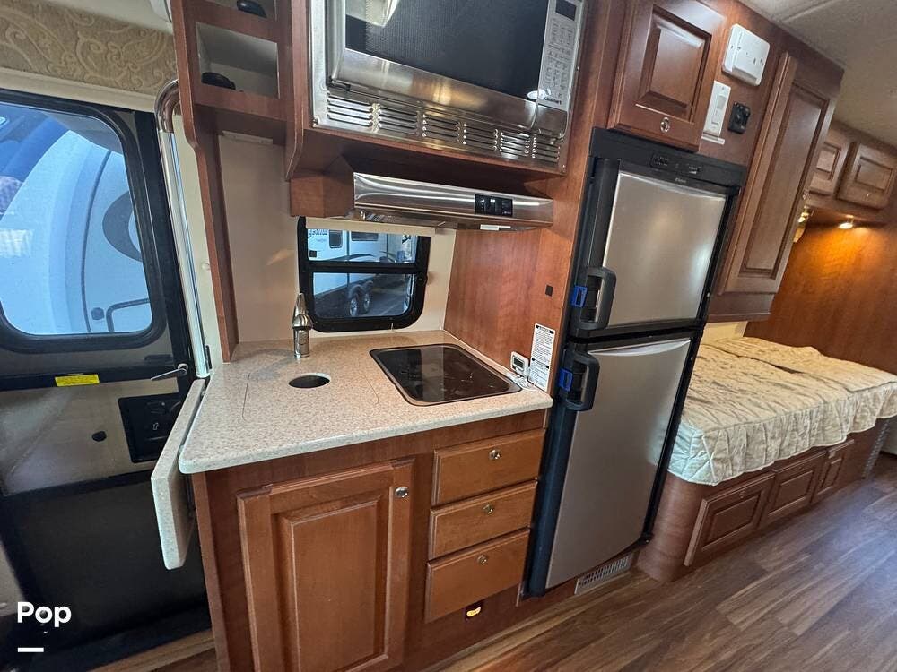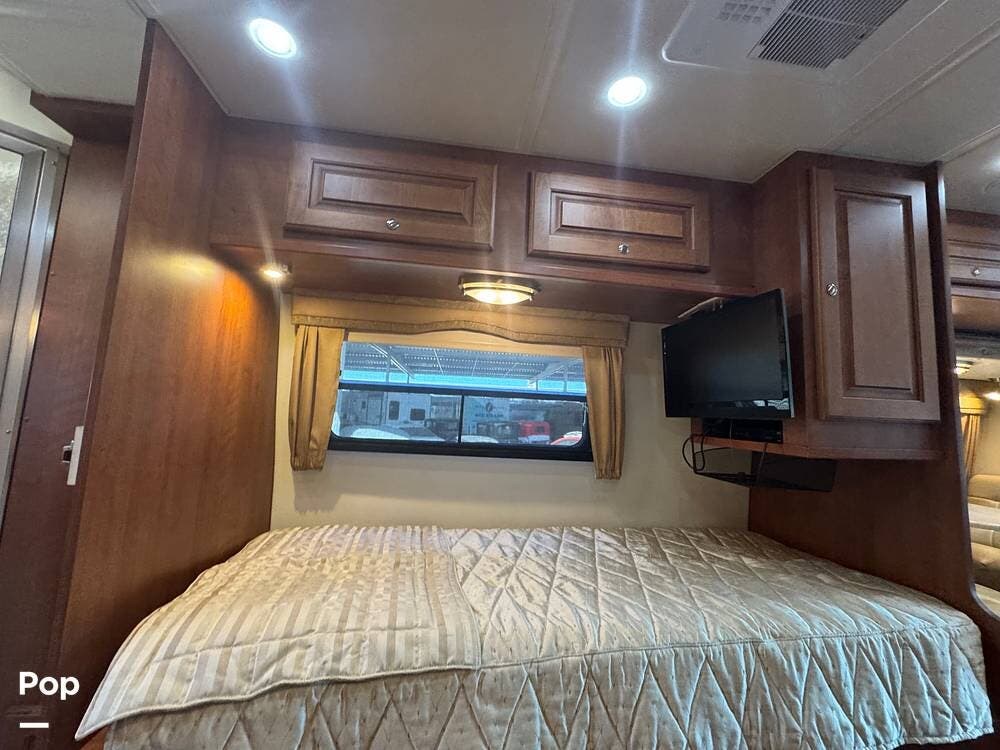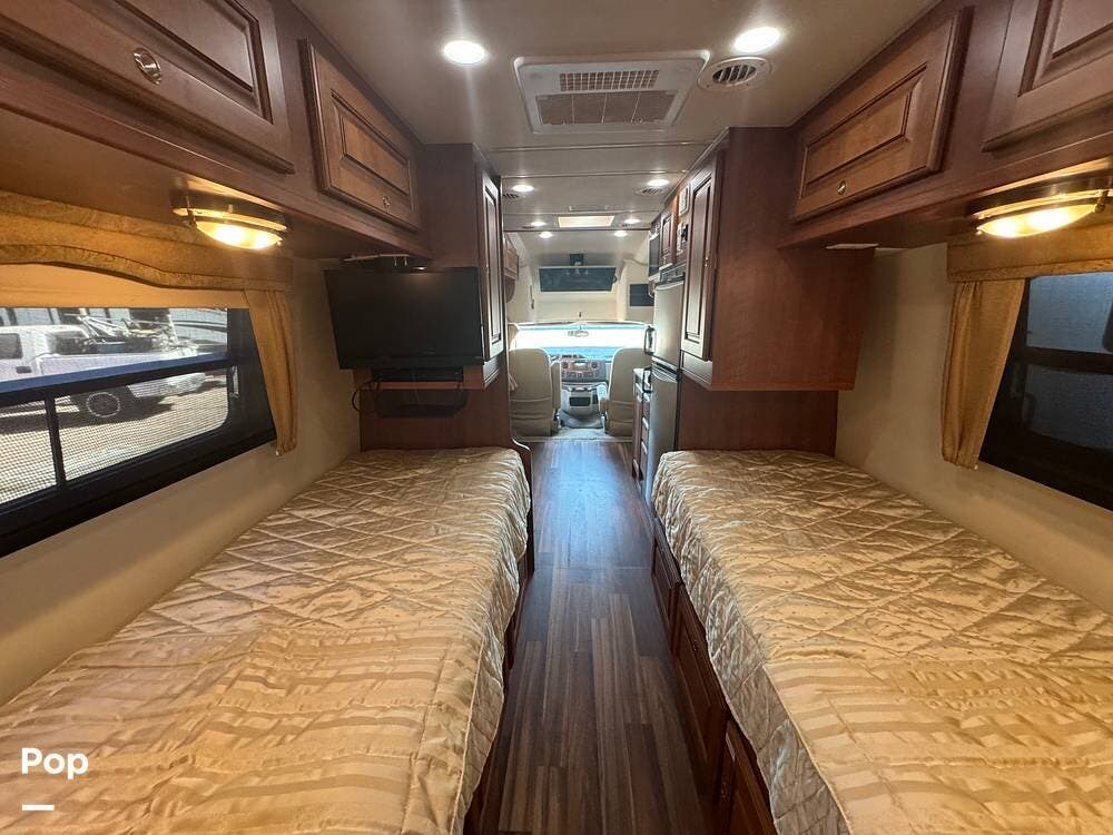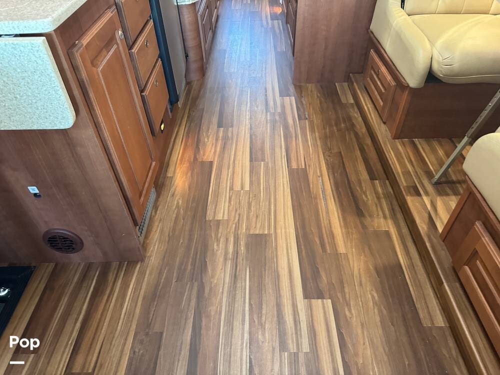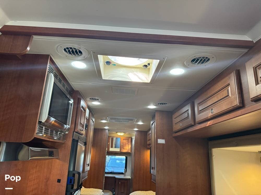 Inside, expect upscale touches such as solid-surface countertops, premium floors, MCD day/night shades, flat-panel HD TV on a swing arm, and ample overhead & wardrobe storage.