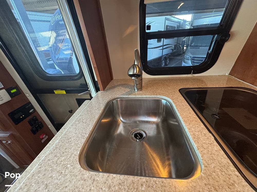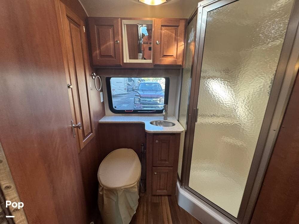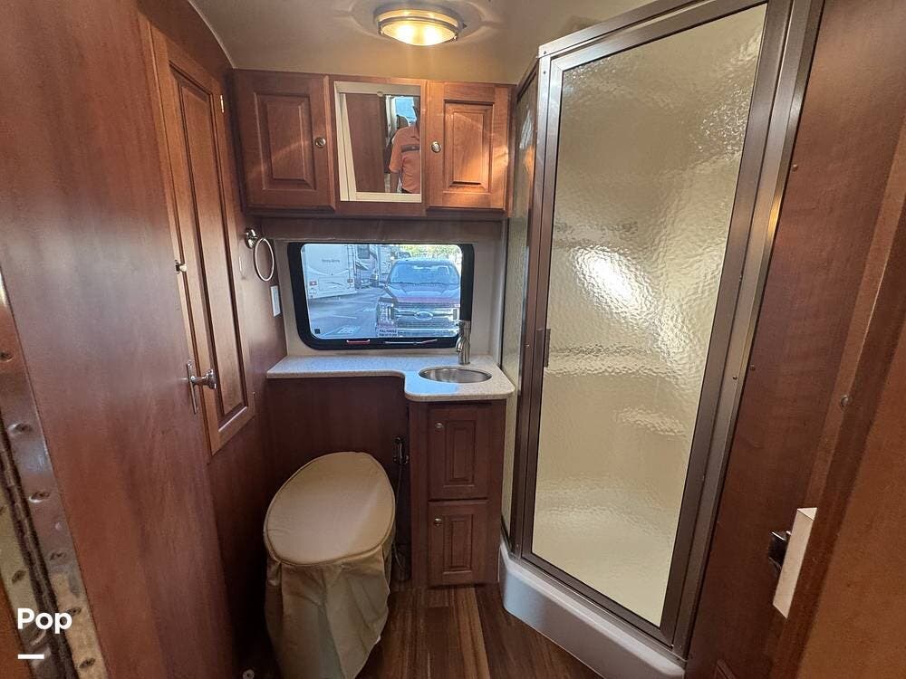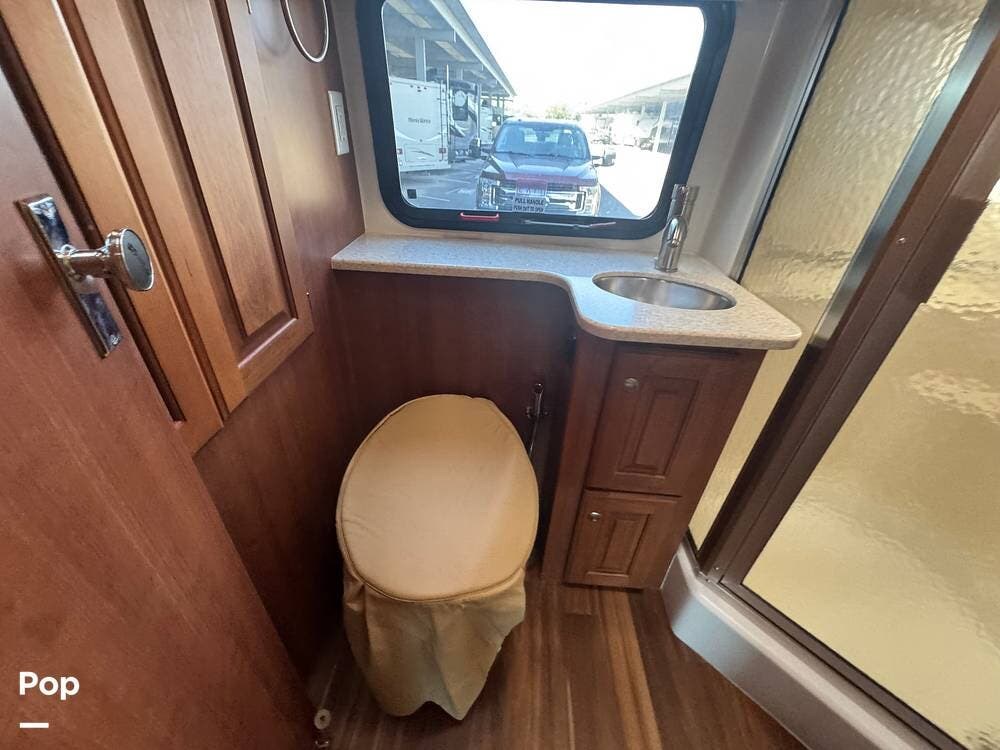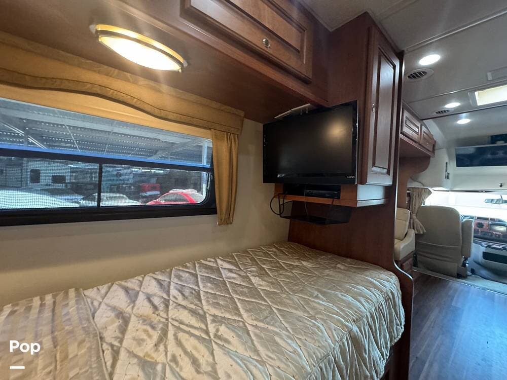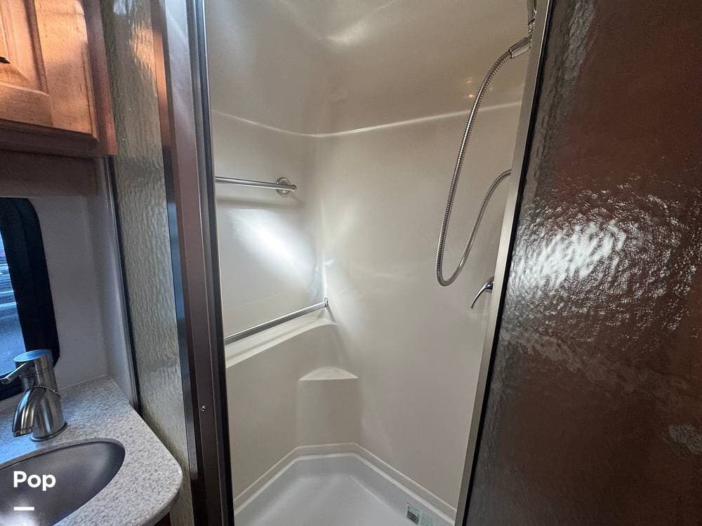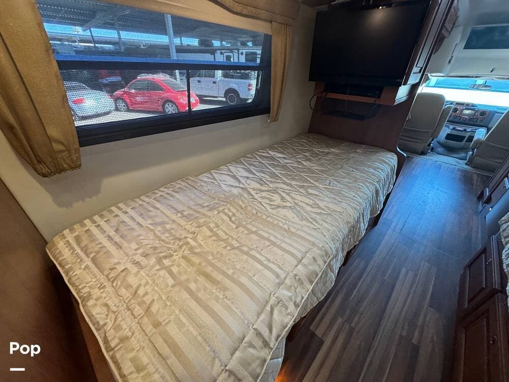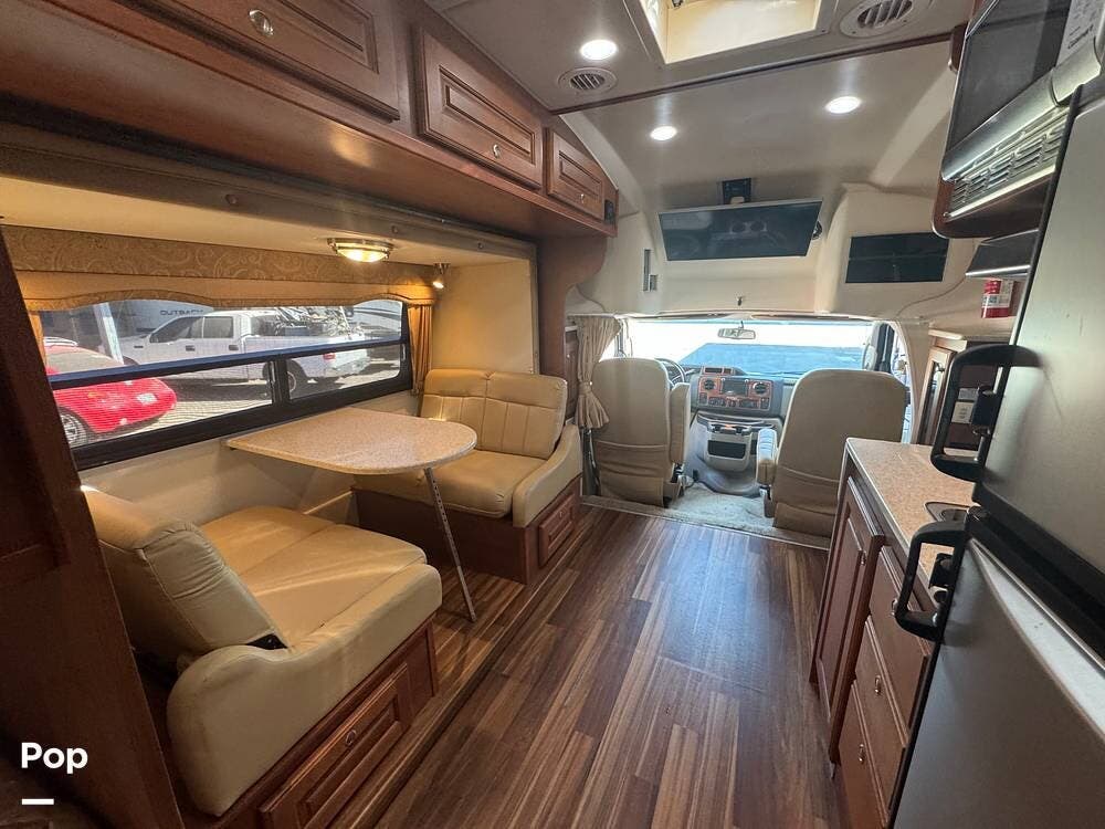 Inside, expect upscale touches such as solid-surface countertops, premium floors, MCD day/night shades, flat-panel HD TV on a swing arm, and ample overhead & wardrobe storage.