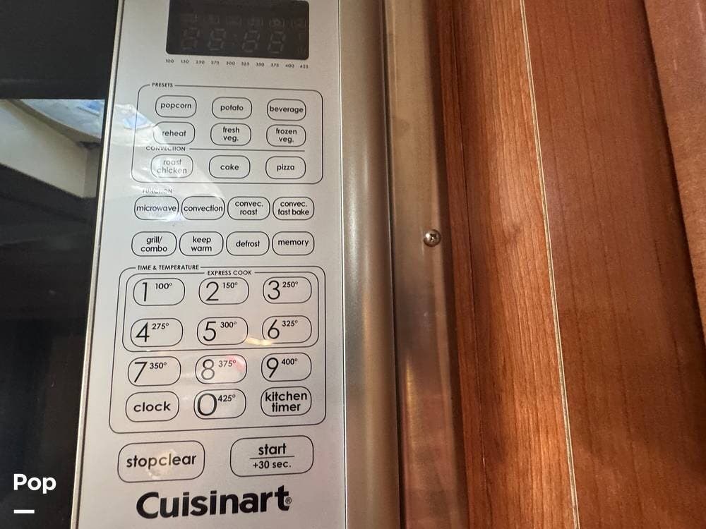 The galley is well-equipped with a recessed stainless sink with cover, a two- or three-burner LP range, and a microwave/convection oven.