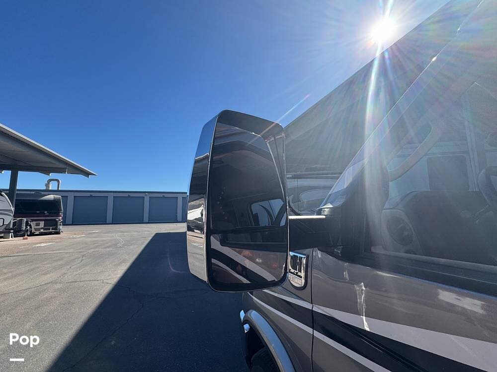 The exterior size is compact enough for a "23-26′ class C feel," yet offers room and luxury. For example, specs show an overall width of 8′-0″ and a height of around 10′ 5."