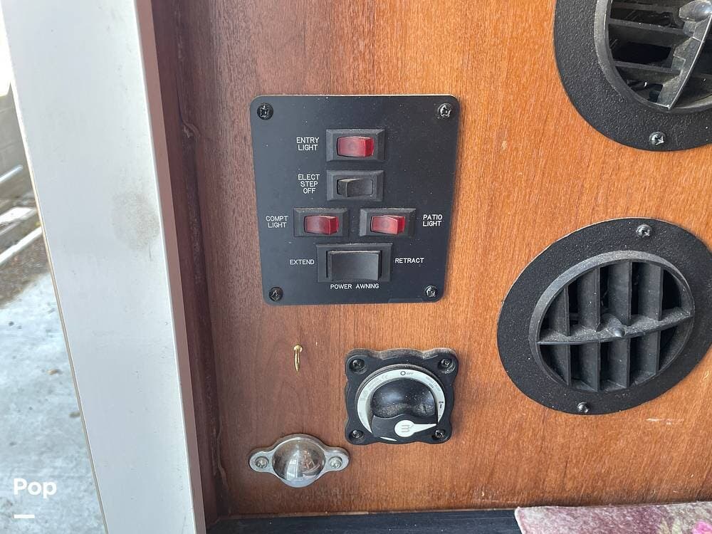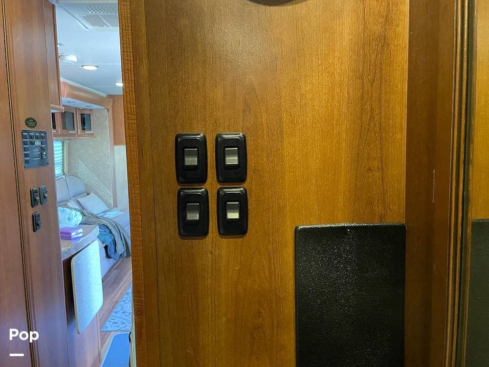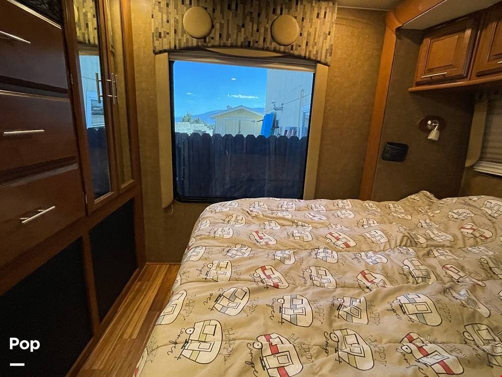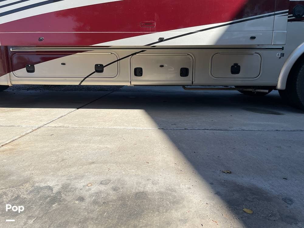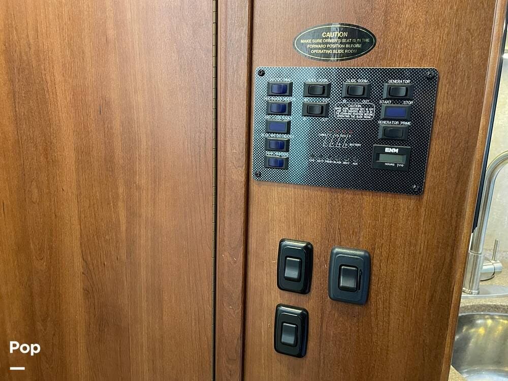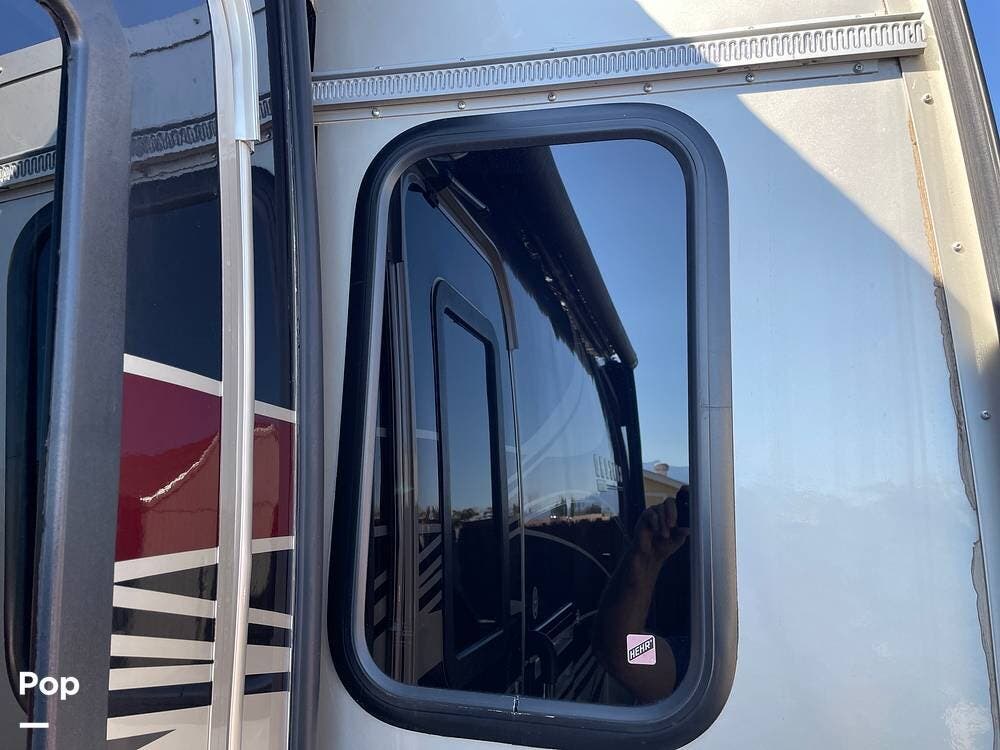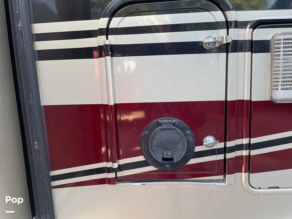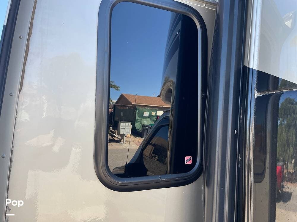 On the exterior, you'll find a full entertainment system with a flat screen TV and a stereo speaker system. The full body paint gives the exterior a sleek, upscale look, complemented by a power awning, rearview camera, Onan 4.0kW generator, and plenty of basement storage.