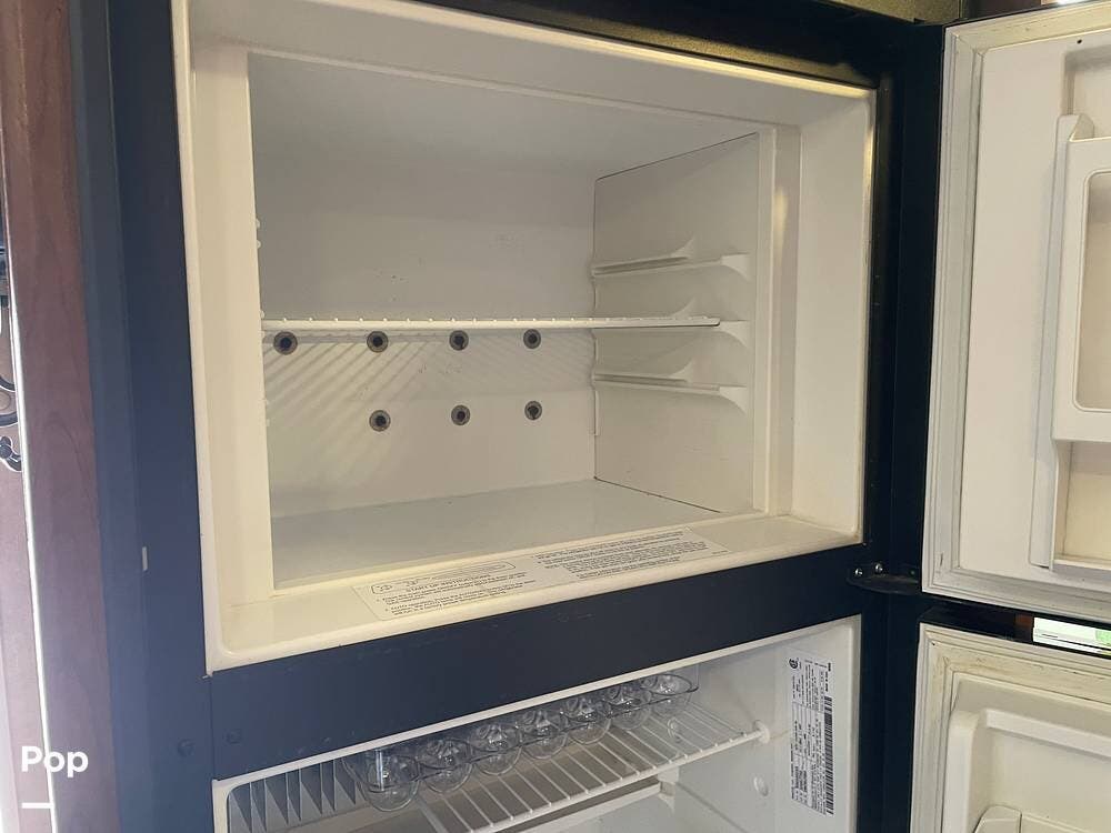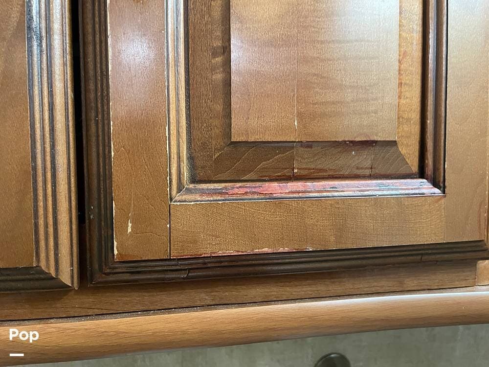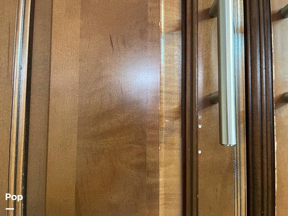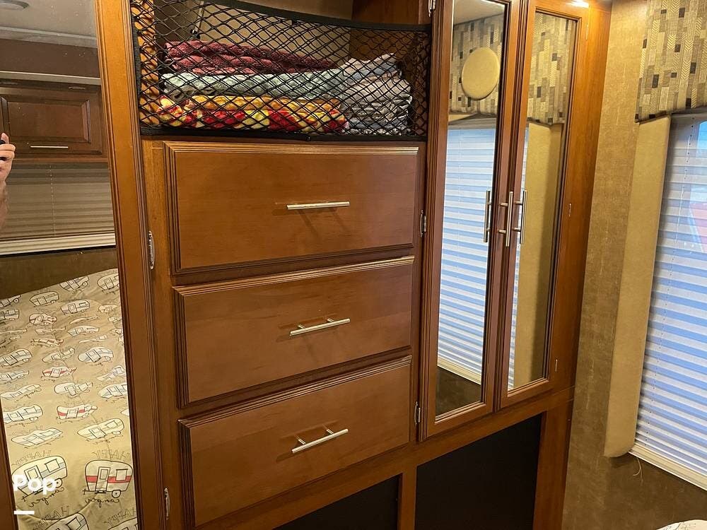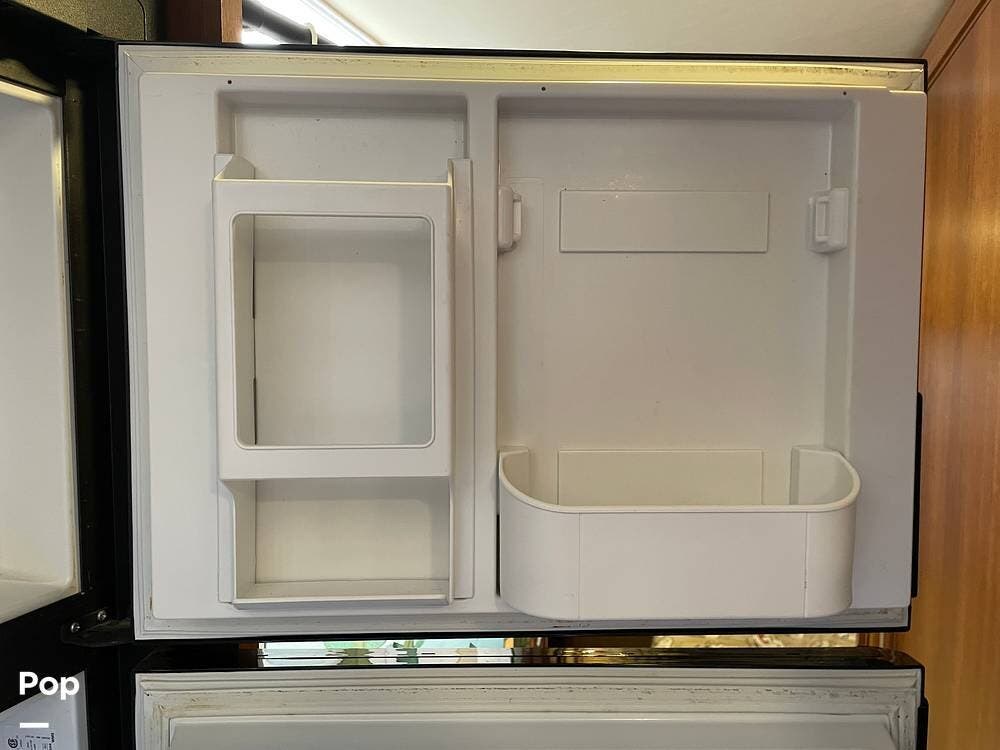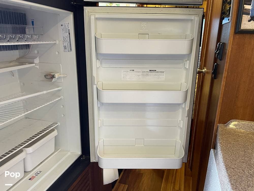 You'll also find leatherette seating, a convertible dinette, a flat-screen TV, a DVD player, and a surround sound system. The kitchen features a three-burner stove, convection microwave, and double-door refrigerator -- perfect for preparing meals on the go.