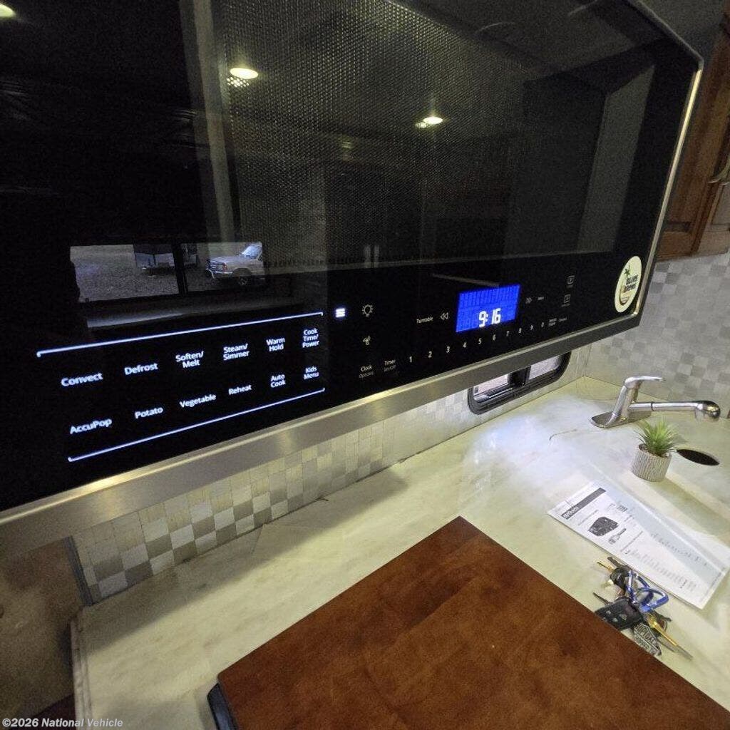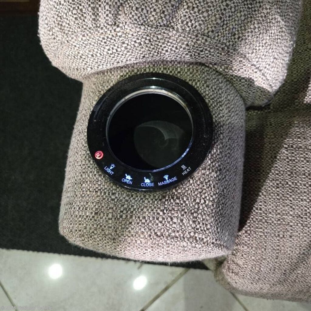 Step inside to a spacious interior that features a large living area with multiple slide-outs, creating generous room for relaxing or entertaining. The main lounge offers comfortable seating, and large panoramic windows that fill the space with natural light.