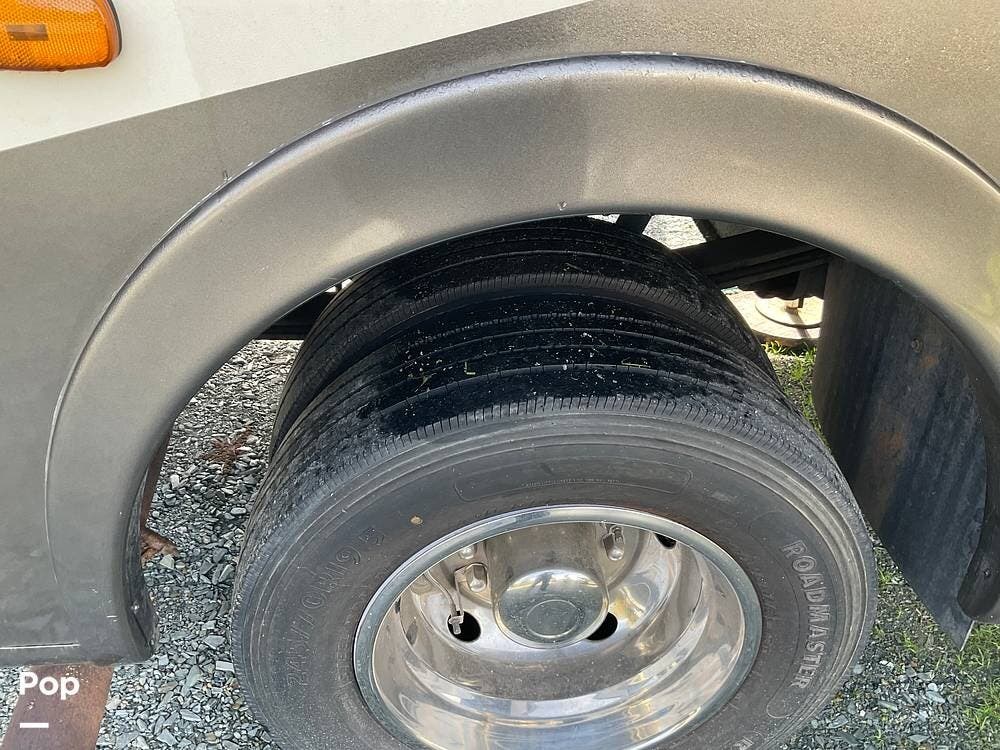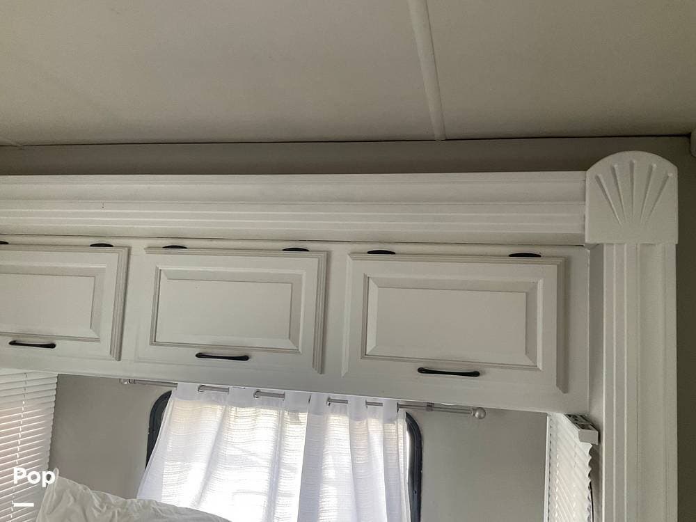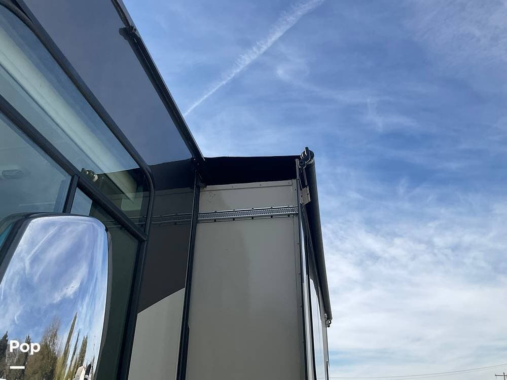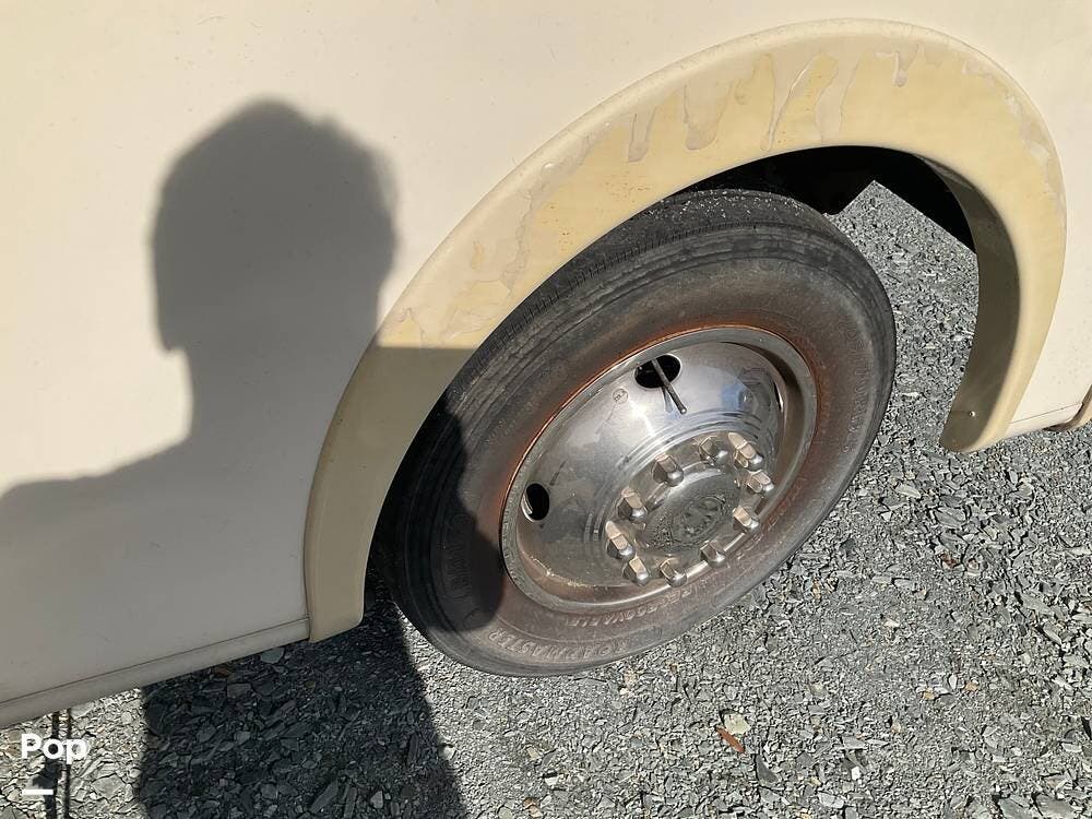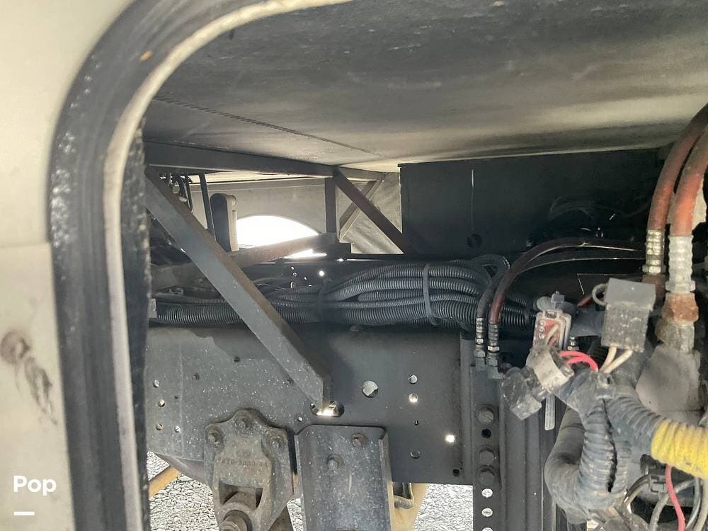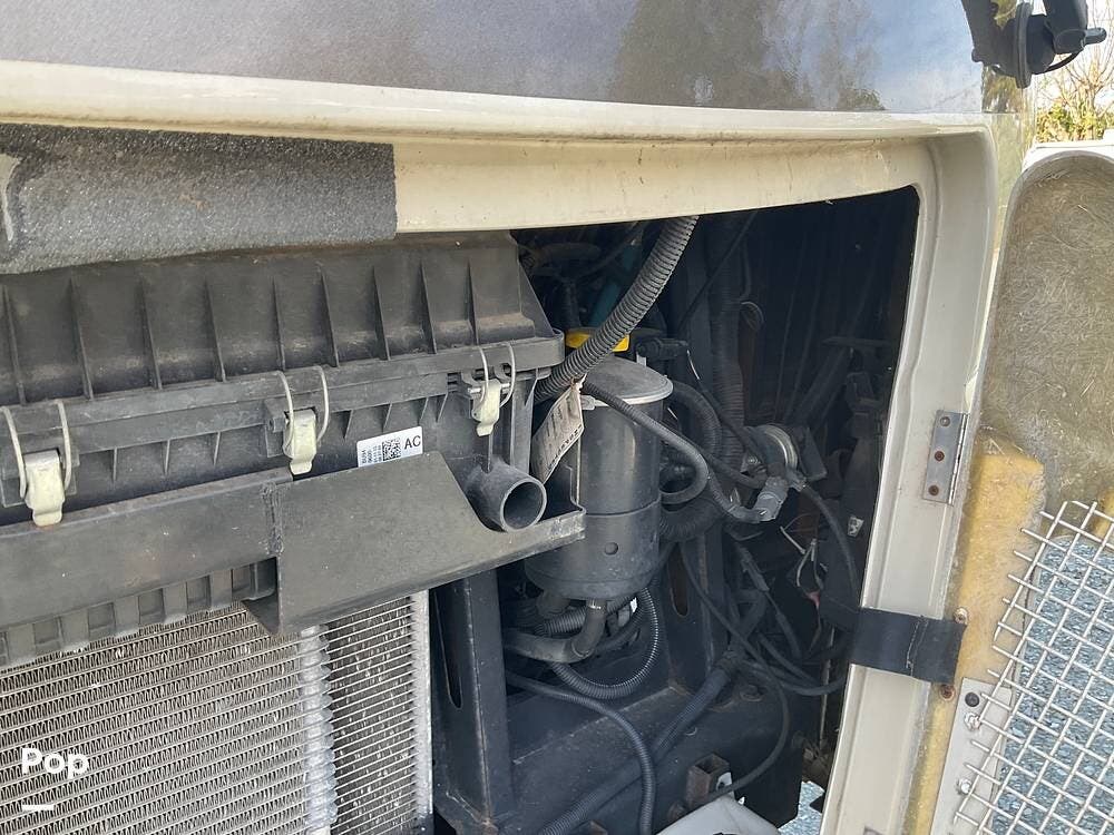 Walking around the RV, you will see the cockpit with dual captain chairs, cruise control, intermittent wipers, and dash A/C.