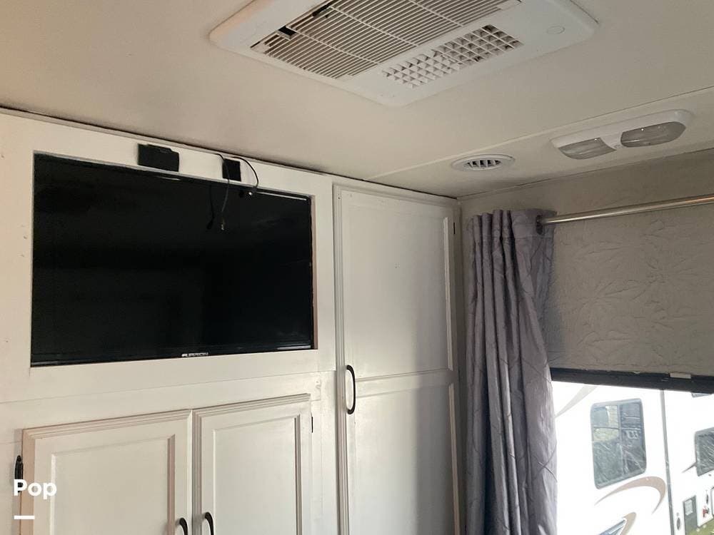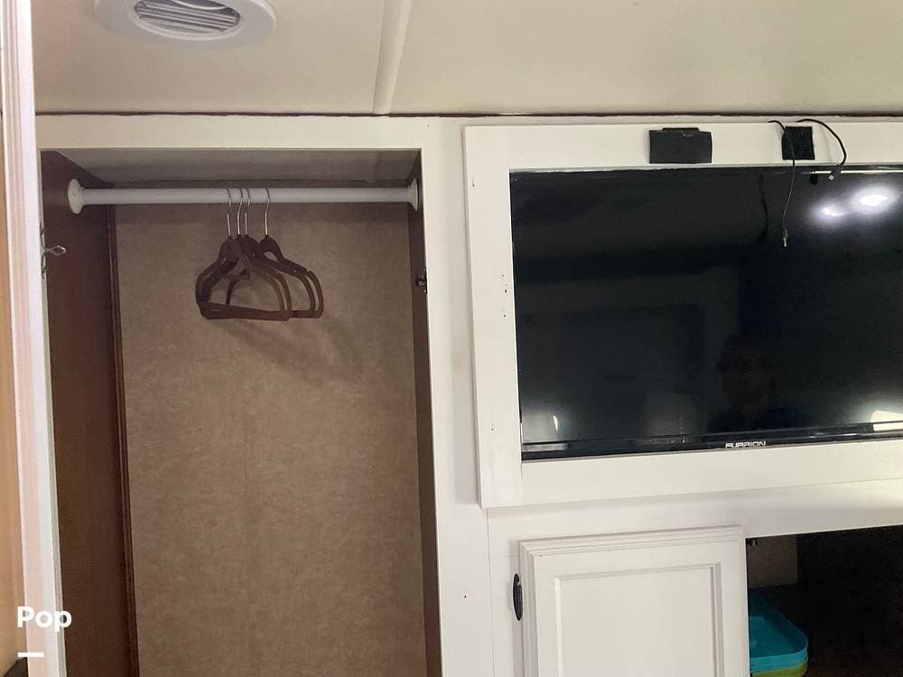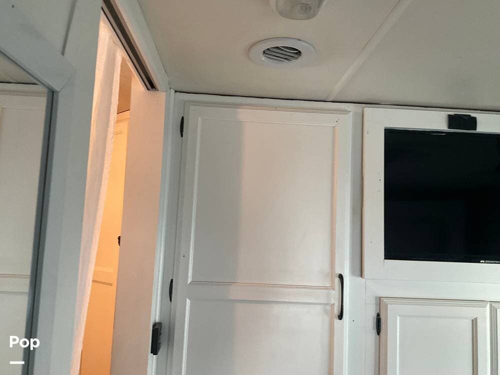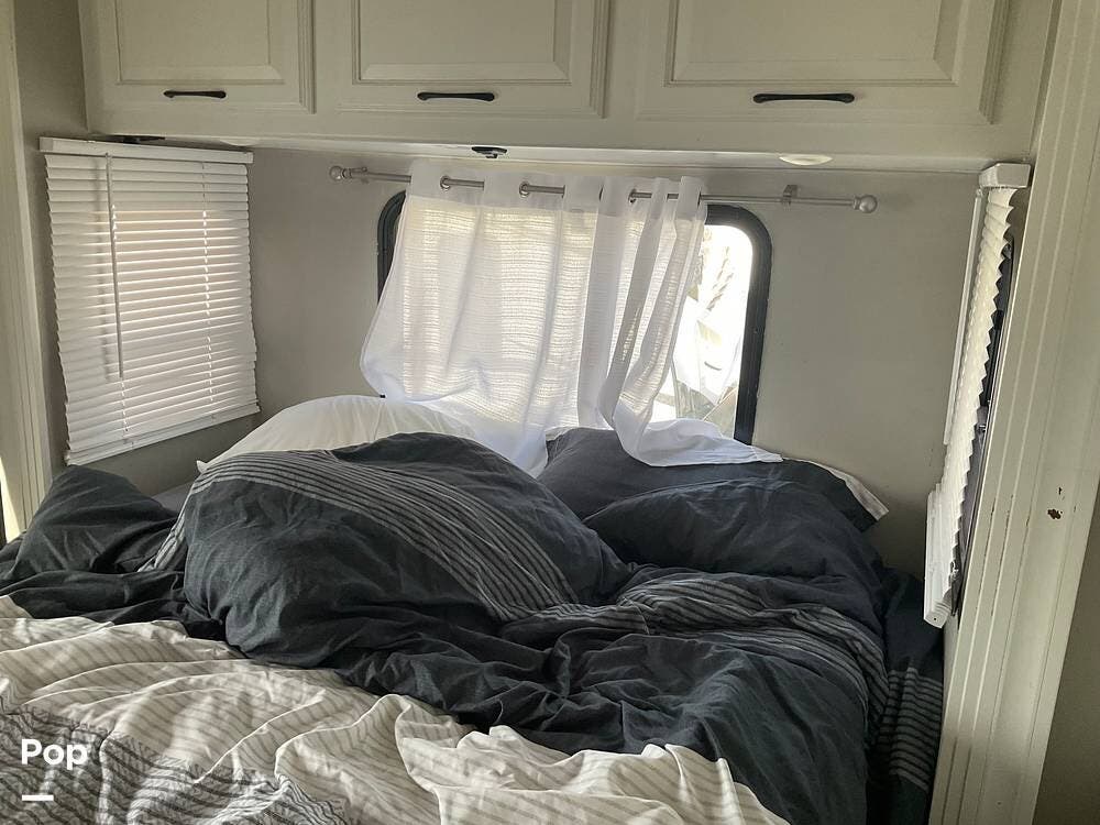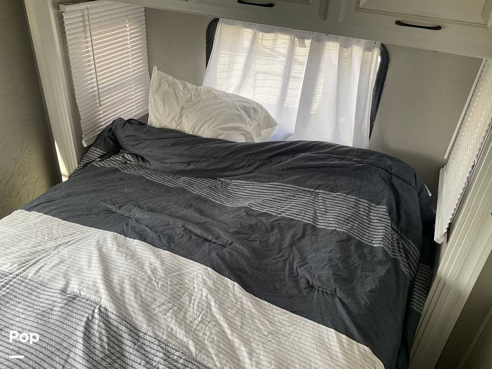 At the rear of the RV is the main bedroom with a queen bed and plenty of storage.