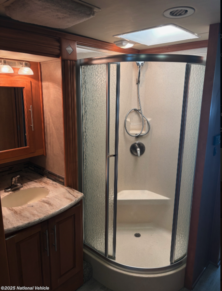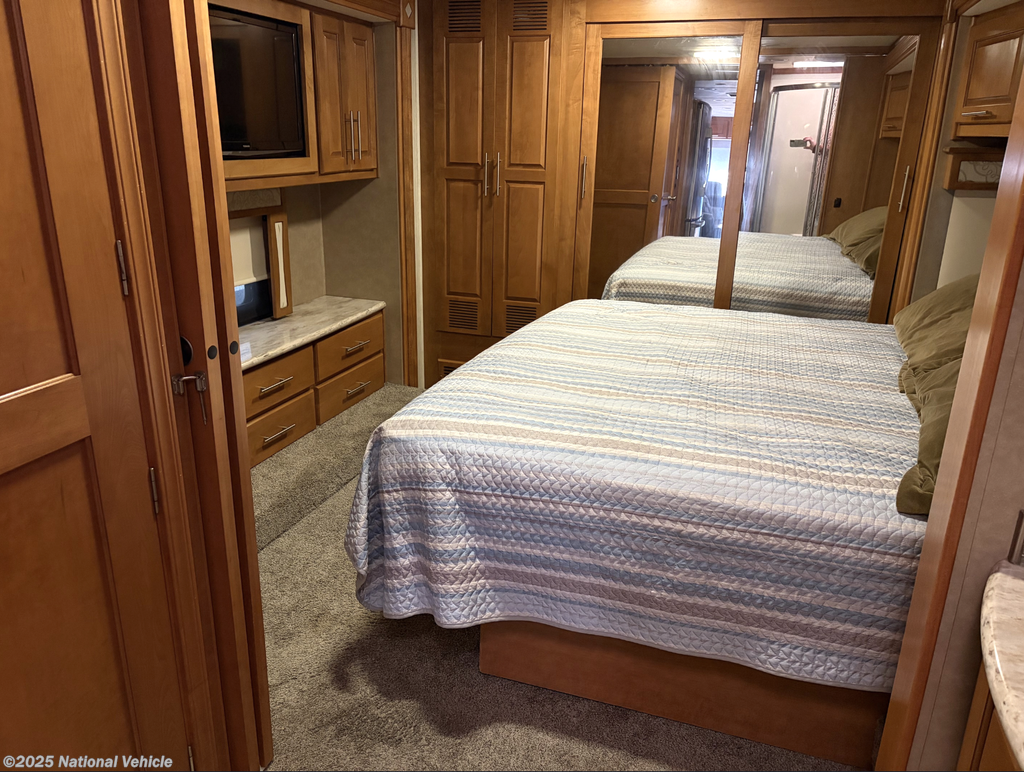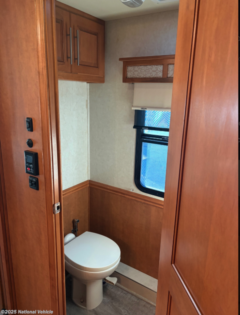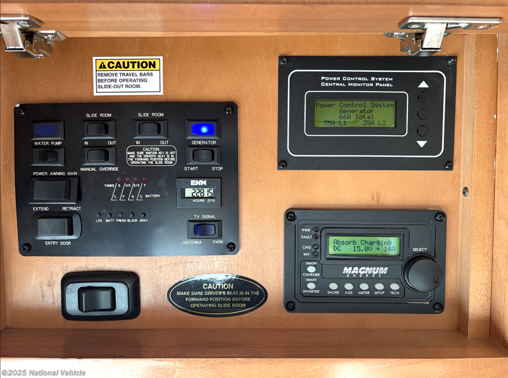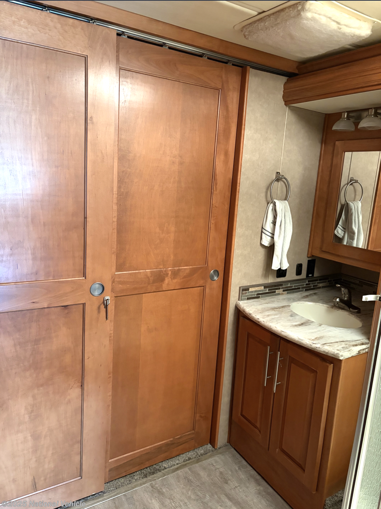 Outside, the Pathfinder shines with full-body paint, an automatic leveling system, generous basement storage, a power awning, and an Onan diesel generator?everything needed for comfortable camping on or off the grid.