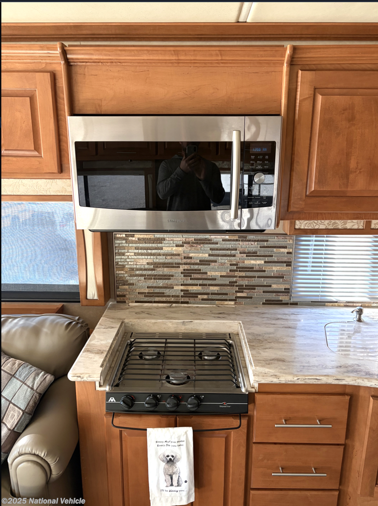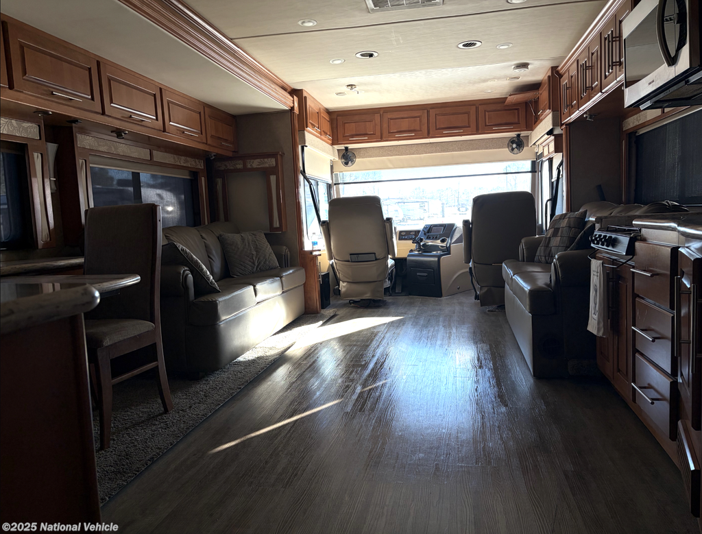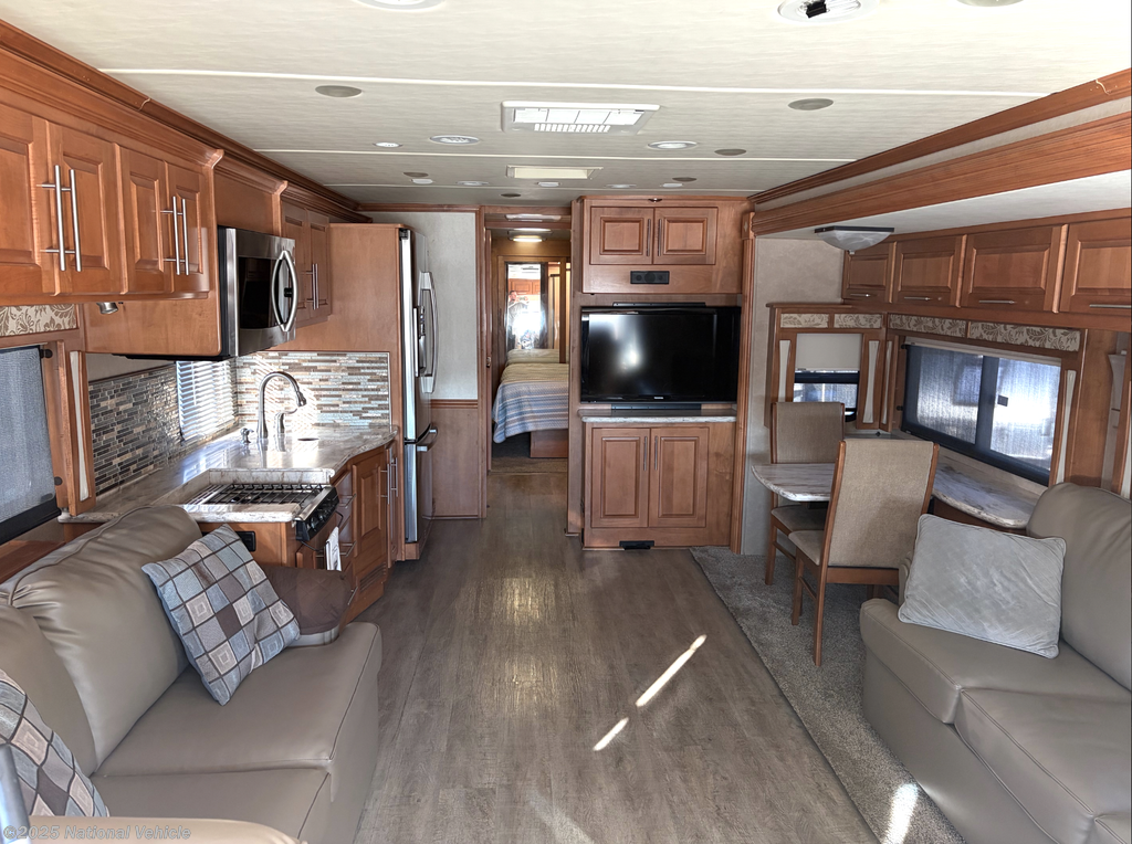 Step inside and enjoy a spacious, residential-style interior enhanced by four full slide-outs, creating an exceptionally open living area. Rich cabinetry, solid-surface countertops, and high-end finishes give the coach a warm, upscale feel. The main living space features comfortable seating, an entertainment center, and a cozy dinette?perfect for relaxing, hosting guests, or enjoying evenings inside after a day of adventure.