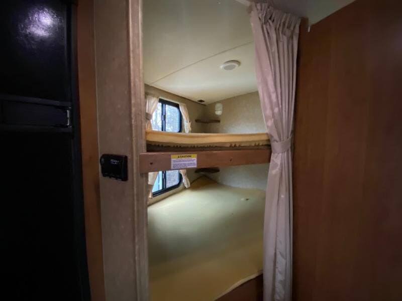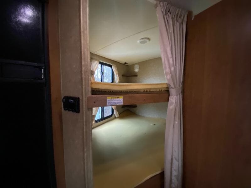 The Sunset Trail Super Lite ST240BH travel trailer by CrossRoads RV offers a single slide and a rear bunk house.