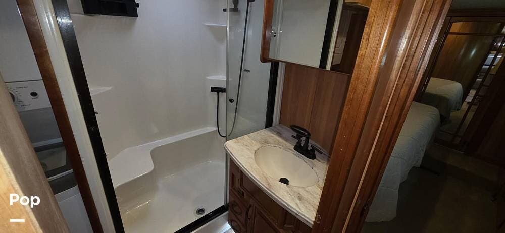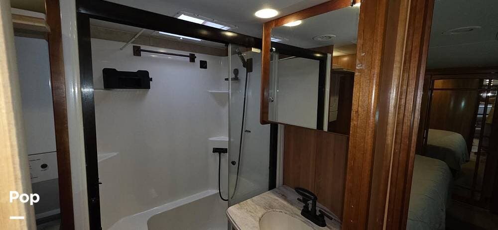 The bathroom continues the high-end feel with quality fixtures, a spacious shower, and thoughtful storage. Every space in this Mobile Suites is designed for comfort and extended stays, making it ideal for full-time living, seasonal travel, or long road trips.
