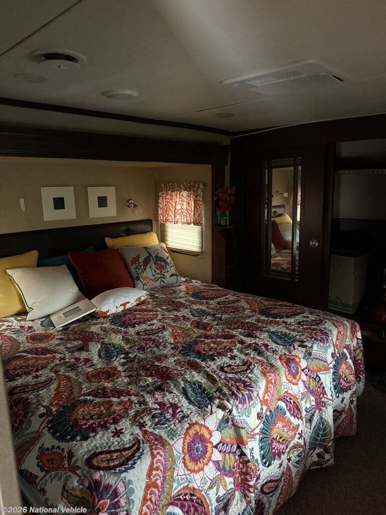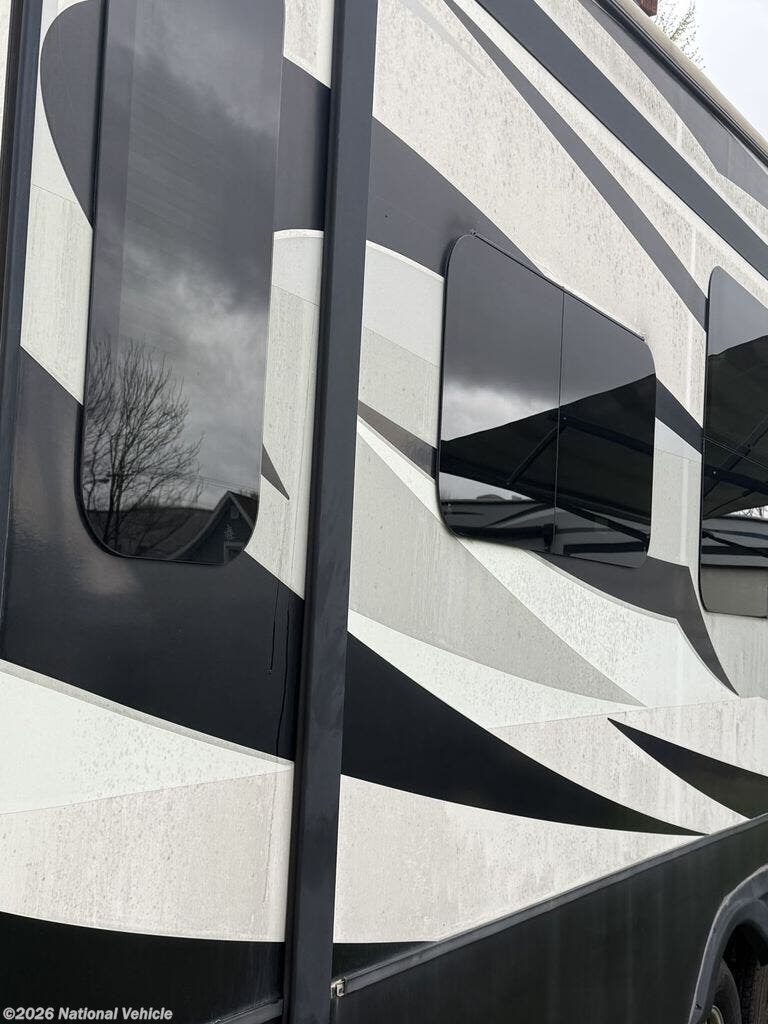 Step inside and you?re welcomed by a wide-open living and kitchen area with opposing slides that create an expansive gathering space. The rear wall is dedicated to a full entertainment center featuring a lift TV, abundant cabinetry, and a cozy electric fireplace?perfect for unwinding after a day of travel. Plush seating, including a 58? sofa, makes this the ideal place to relax or entertain.